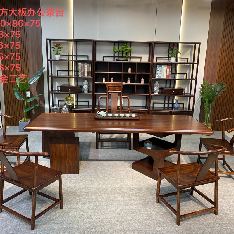 福瑞呈祥大板茶台(新款) 【规格】200/220/240*90*74CM长宽高 【材质】非洲檀木 【颜色】北美黑胡桃 全实木大板,宋氏美学风, 甄选品质,质量过硬,总裁首选