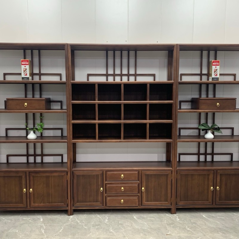 高品致尚➕二抽屉博古架 【尺寸】316×33×196CM(三组合)126×33×196CM(中柜) 190×33×196CM (两组合) 【材质】橡木 【颜色】北美胡/黑胡桃