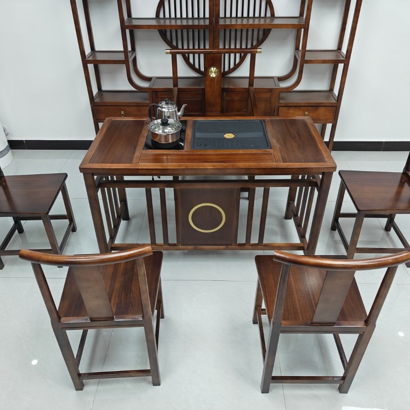 博雅茶台 【规格】180*80*73cm 【材质】橡木➕乌金木工艺 【颜色】黑胡桃