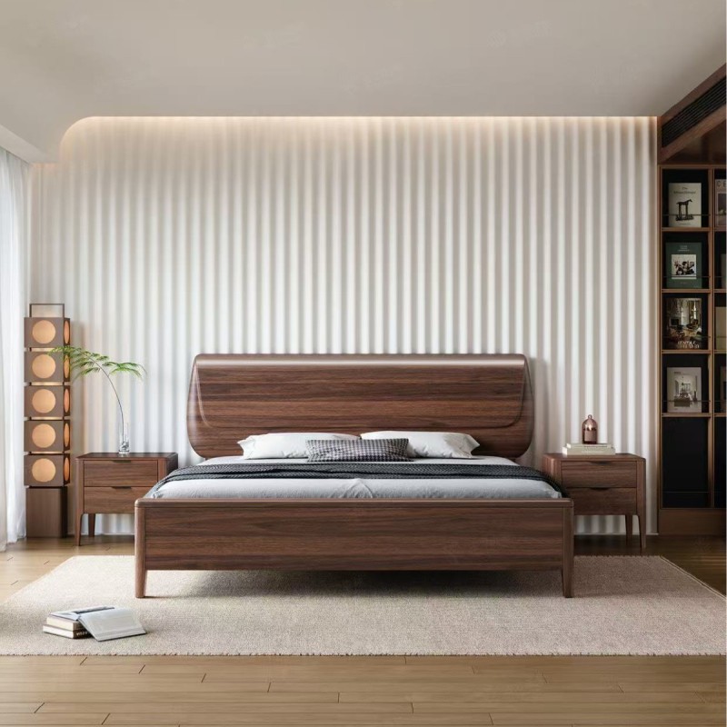臻实黑胡桃家具系列,黑胡桃床,黑胡桃实木床,黑胡桃套房家具