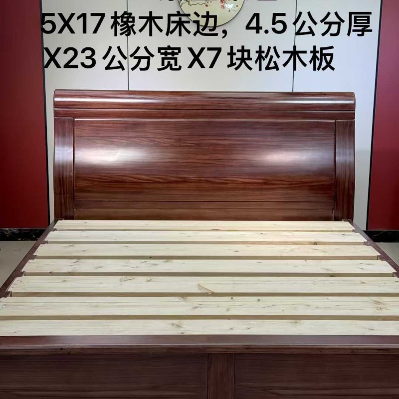 99系列#黑胡桃色软靠 材料:黑胡桃木 规格:1.5/1.8米 标配:3*20月牙桉木床边,3*6*7杉木床子 橡木卡槽:4*17橡木床边,卡槽床子 杉木高配:4*17杉木床边,2公分厚杉木满铺床板