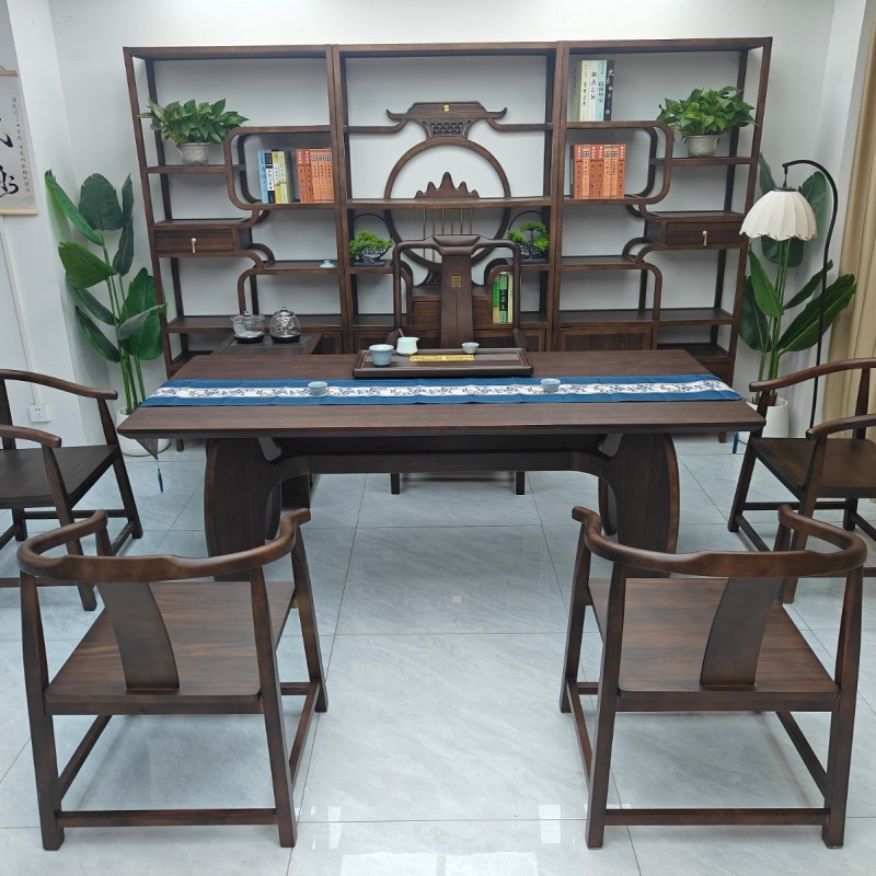 观山大板茶台 风格:宋式美学 颜色:宋式胡桃 尺寸:1.8米、2米、2.2米、2.4米、2.6米、2.8米