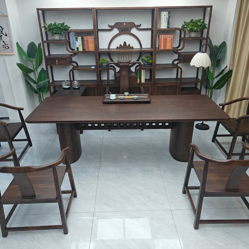 福瑞呈祥大板茶台(新款) 【规格】200/220/240*90*74CM长宽高 【材质】非洲檀木 【颜色】北美黑胡桃 全实木大板,宋氏美学风, 甄选品质,质量过硬,总裁首选