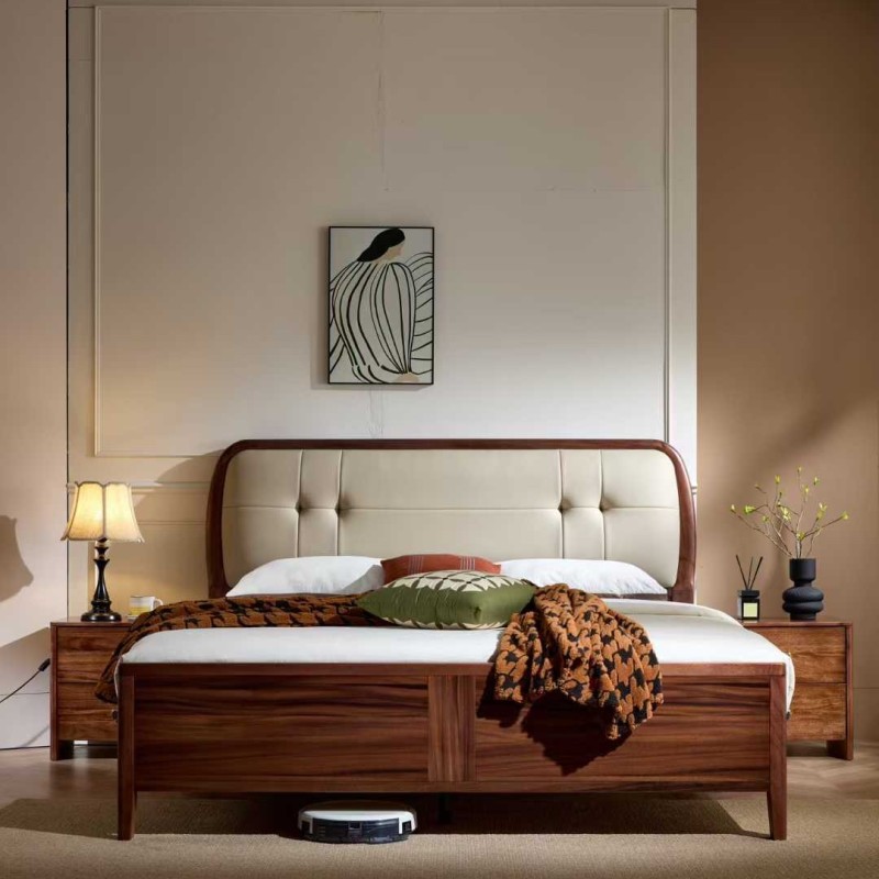 乌金木框架软包大床,真材实料,高端乌金木床系列