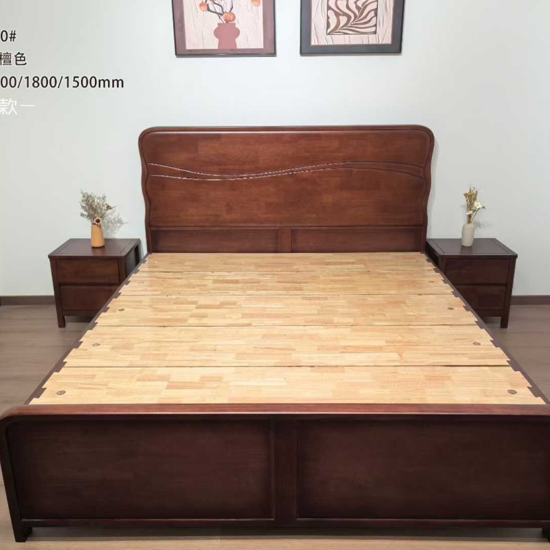 99系列#黑胡桃色软靠 材料:黑胡桃木 规格:1.5/1.8米 标配:3*20月牙桉木床边,3*6*7杉木床子 橡木卡槽:4*17橡木床边,卡槽床子 杉木高配:4*17杉木床边,2公分厚杉木满铺床板