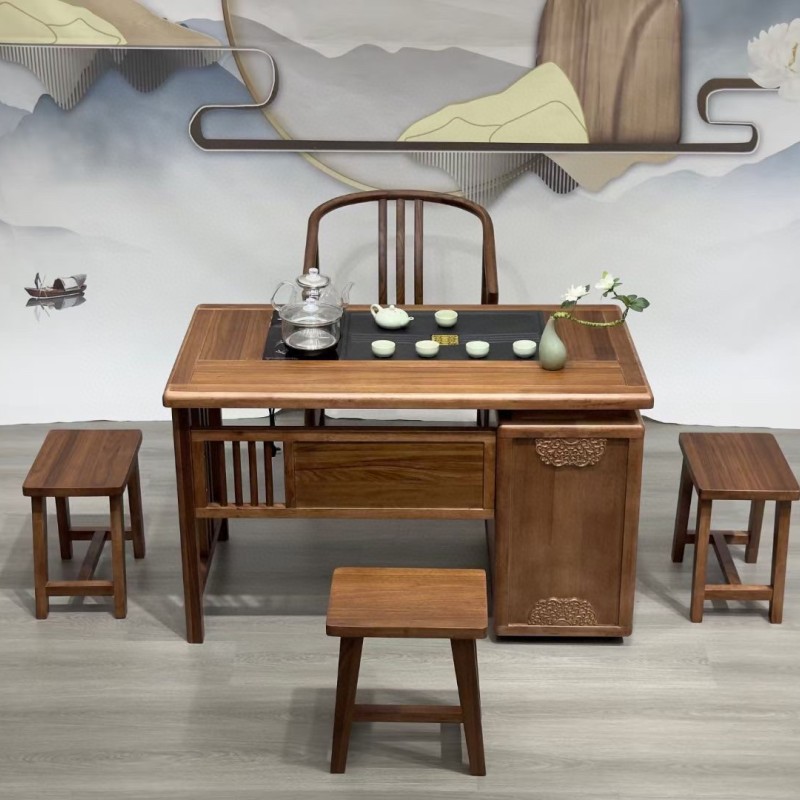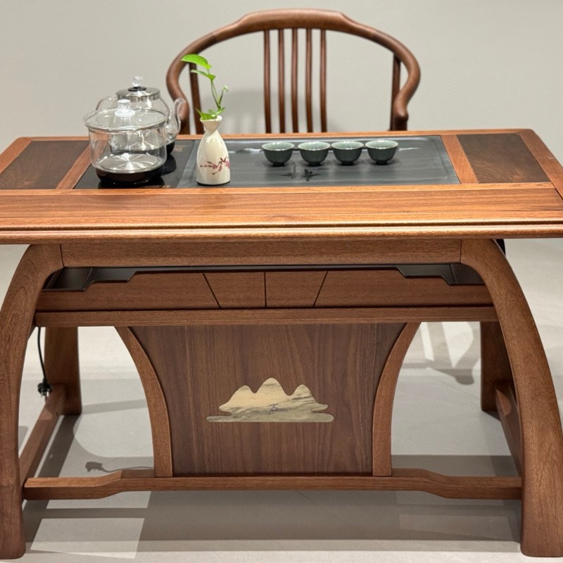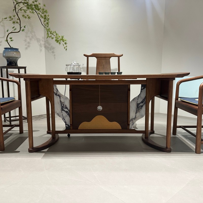 星启茶台 材质:金秋檀材质 颜色:北美胡桃色 尺寸:1.6米、1.8米
