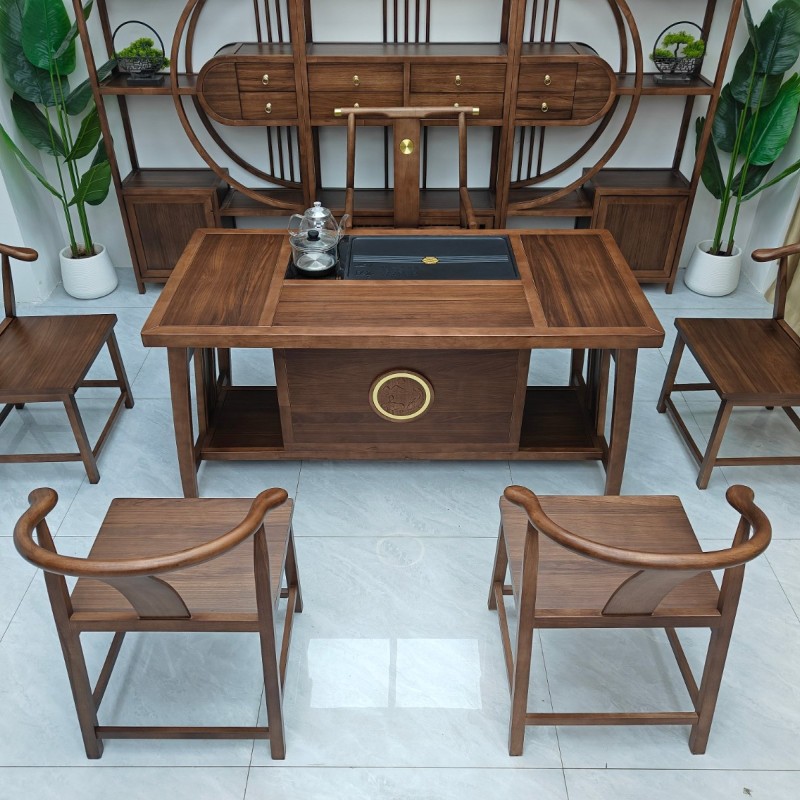 博雅茶台 【规格】180*80*73cm 【材质】橡木➕乌金木工艺 【颜色】黑胡桃