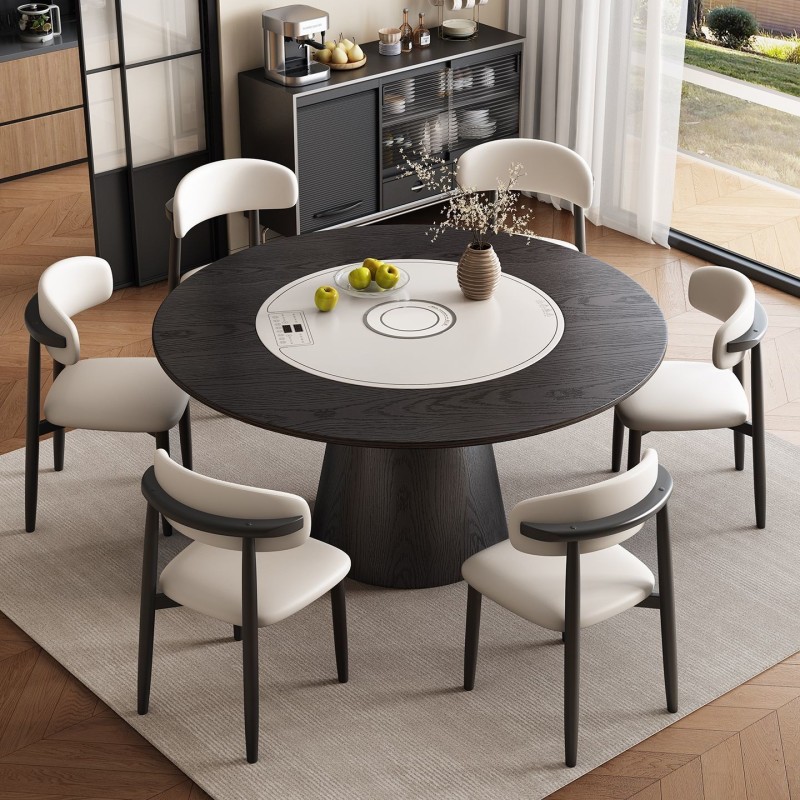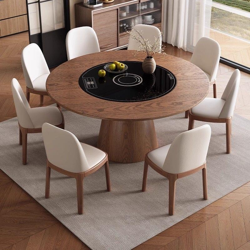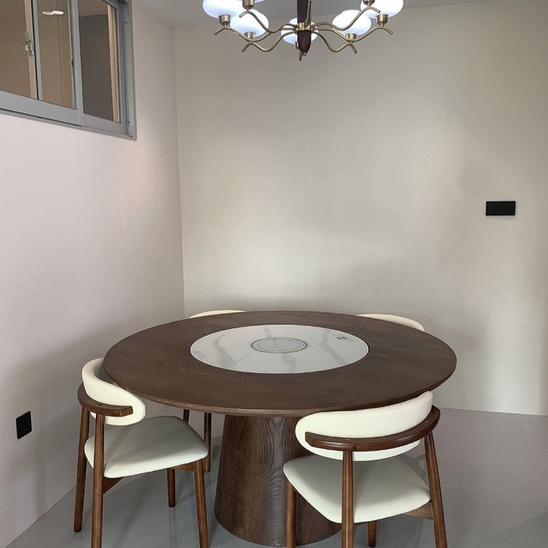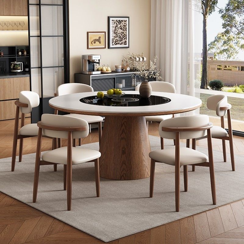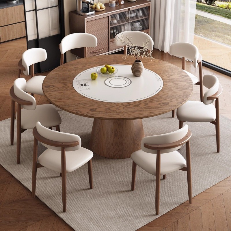 S10#圆桌,配岩板,实木面板 中间内嵌式语音智能暖菜板,电磁炉,电动转盘