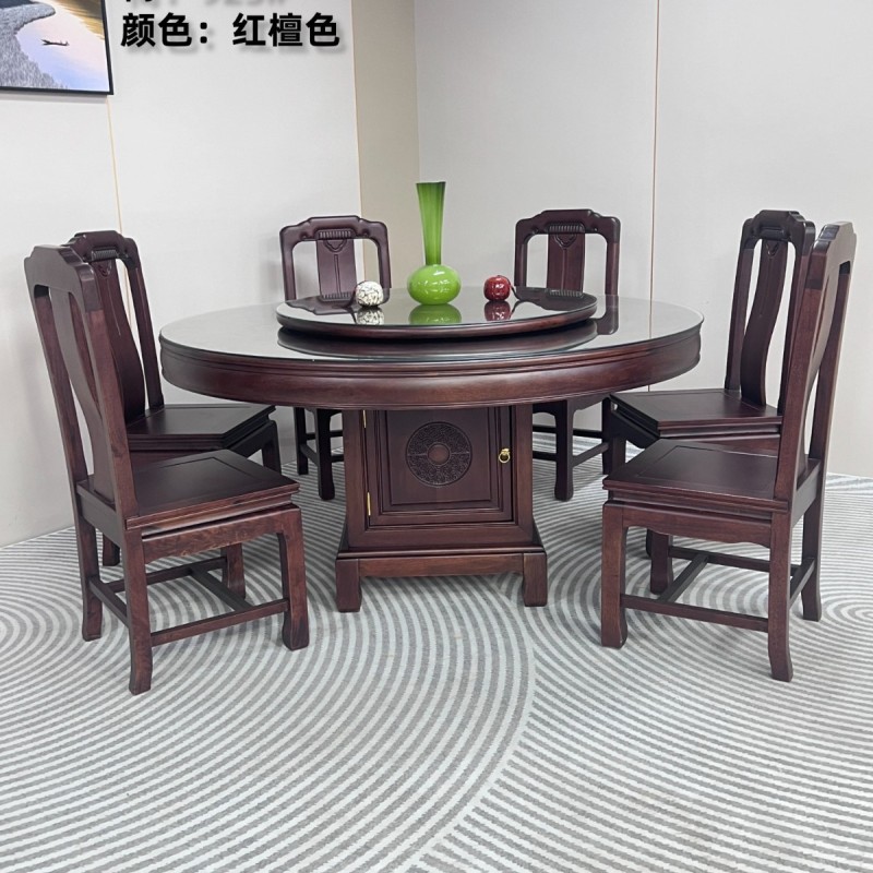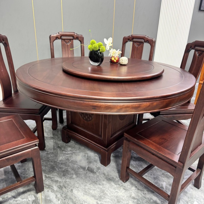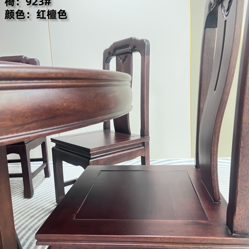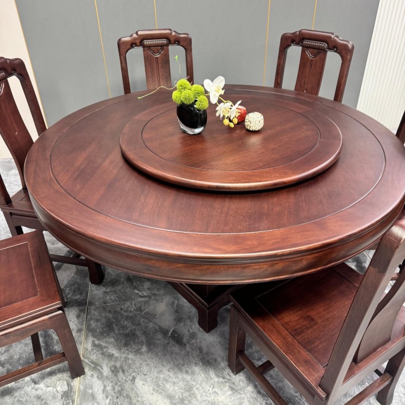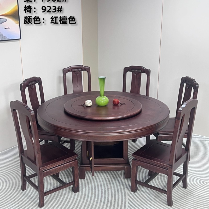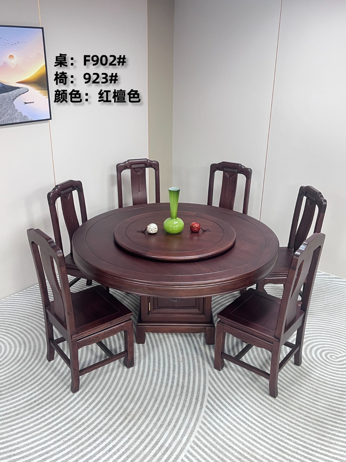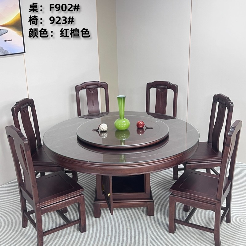 新品爆款上新 F902# 红檀色 格木大圆桌!加厚桌面,加厚椅子 尺寸:1.3米,1.5米,1.6米(带转盘带玻璃) (可定制1.8米2米)