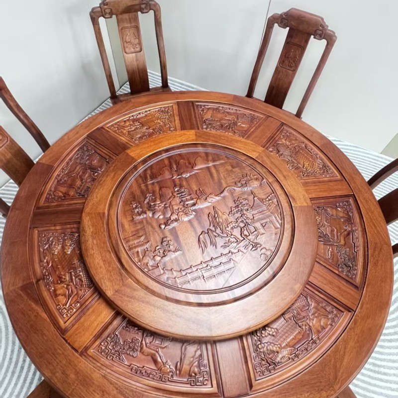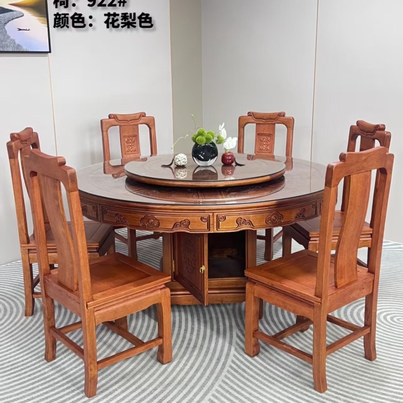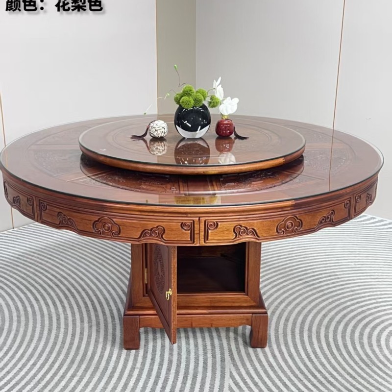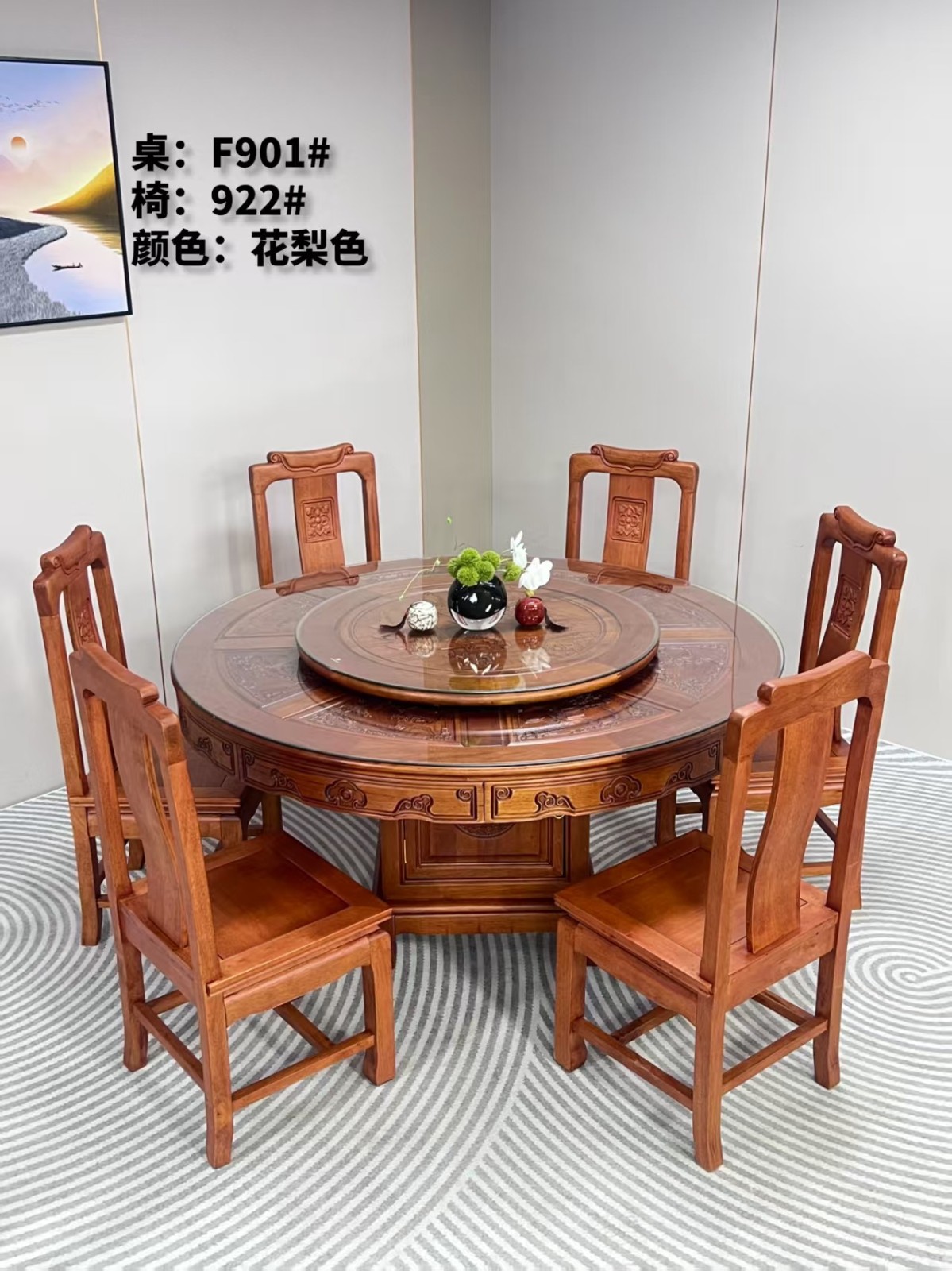新品爆款上新 F901# 花梨色 格木大圆桌!加厚桌面,加厚椅子 尺寸:1.3米,1.5米,1.6米(带转盘带玻璃) (可定制1.8米2米)