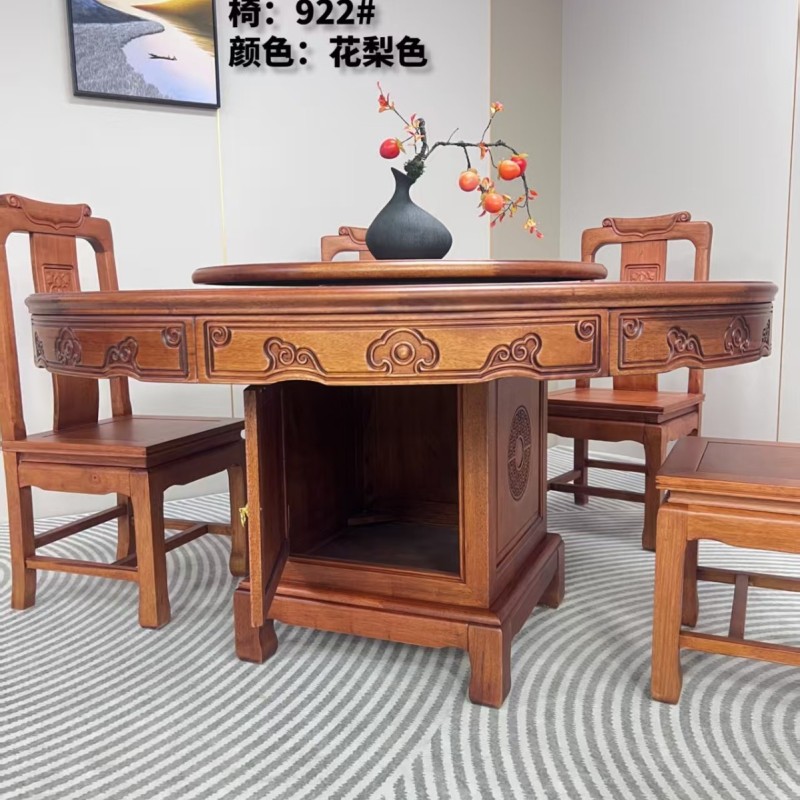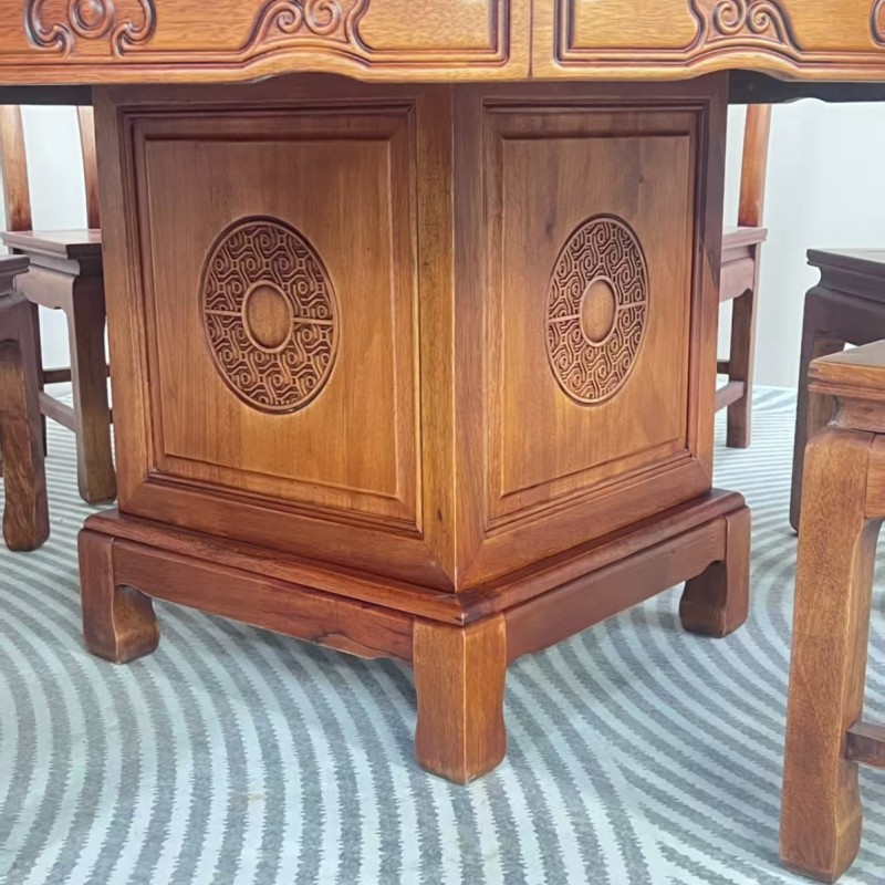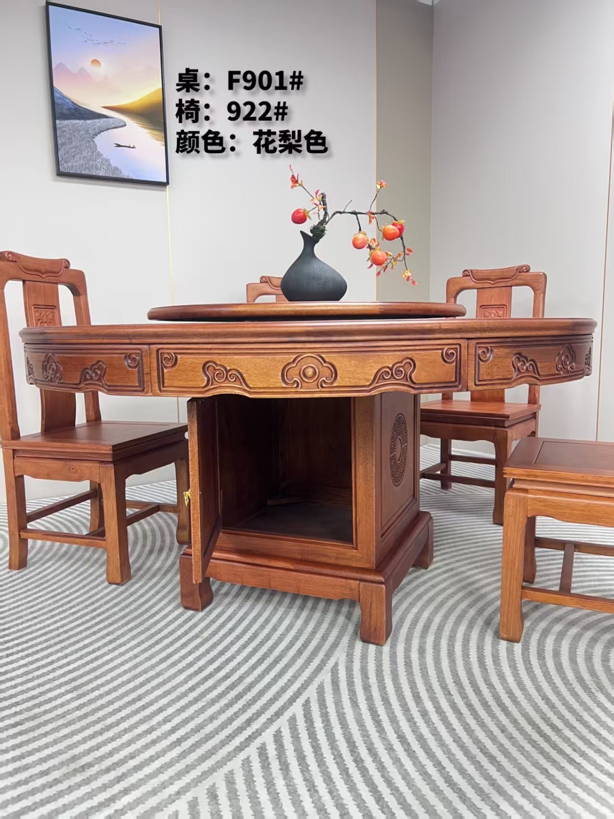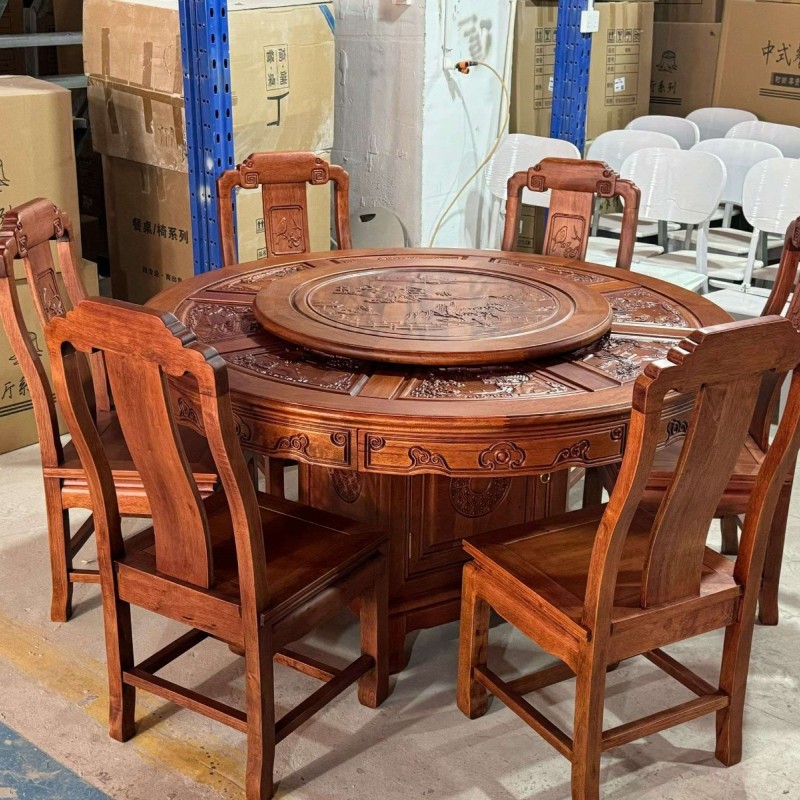 新品爆款上新 F901# 花梨色 格木大圆桌!加厚桌面,加厚椅子 尺寸:1.3米,1.5米,1.6米(带转盘带玻璃) (可定制1.8米2米)