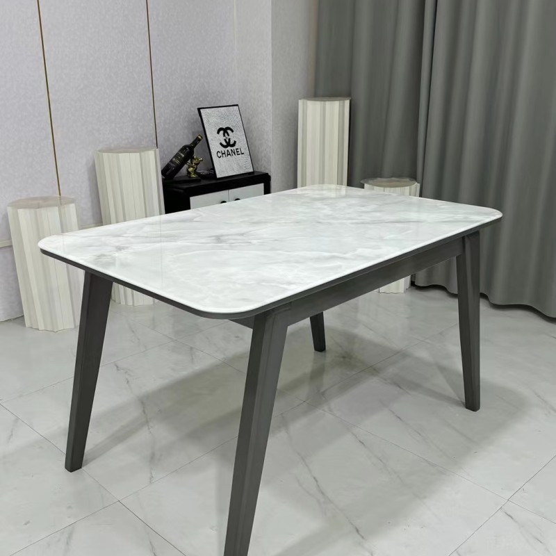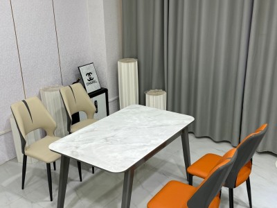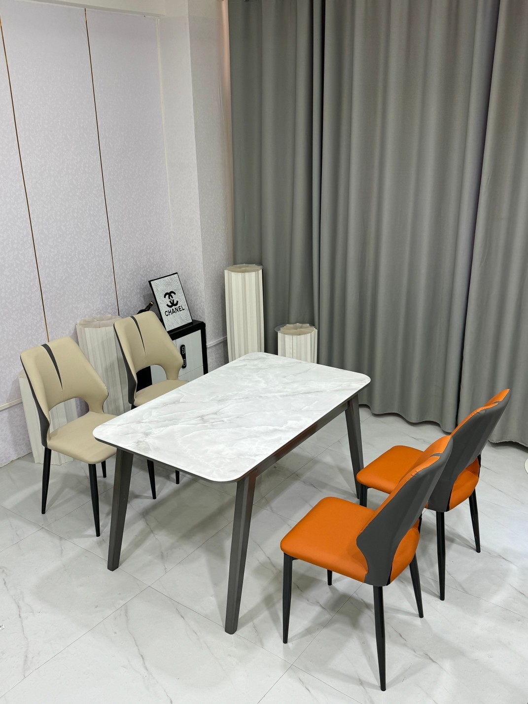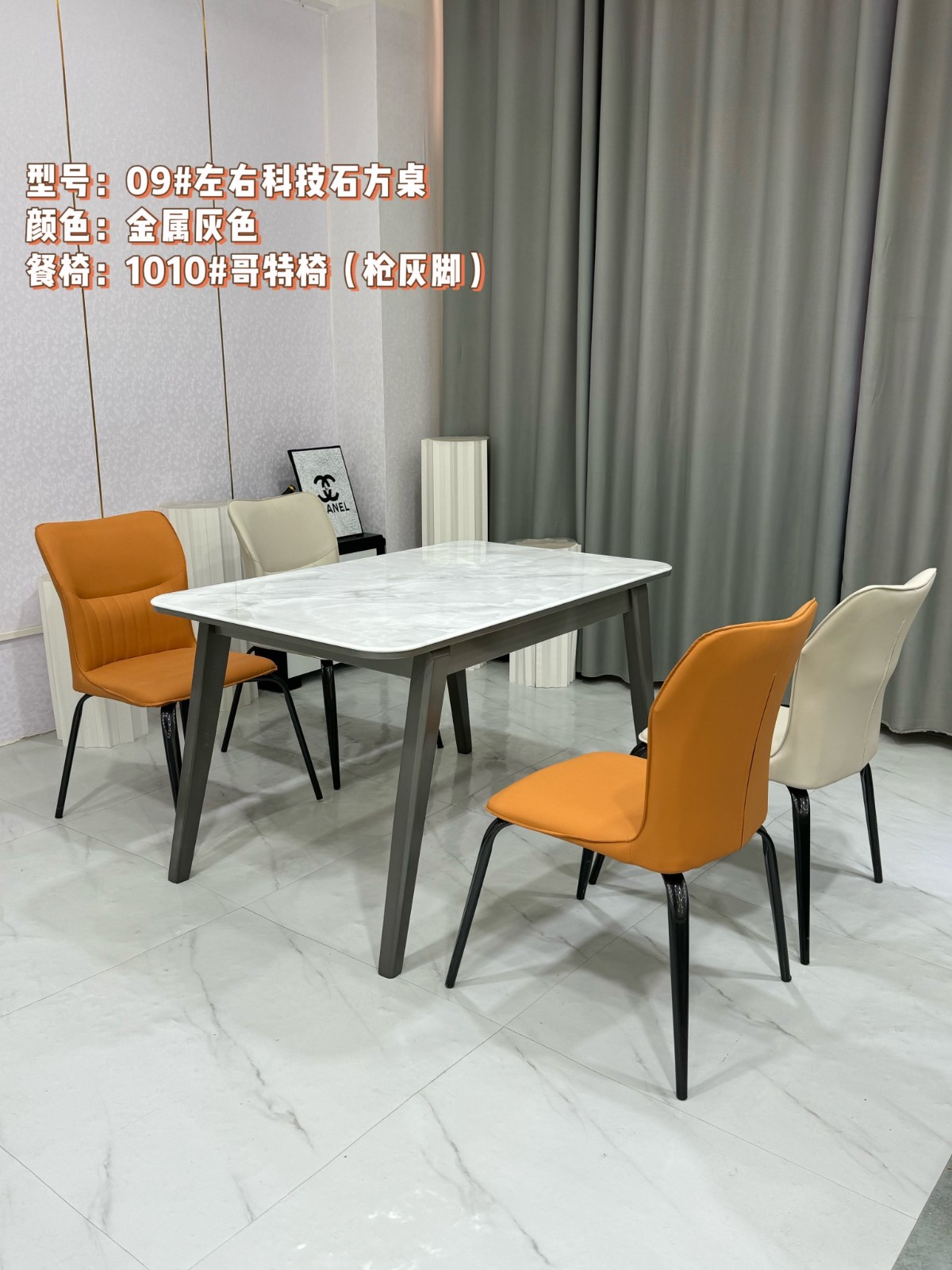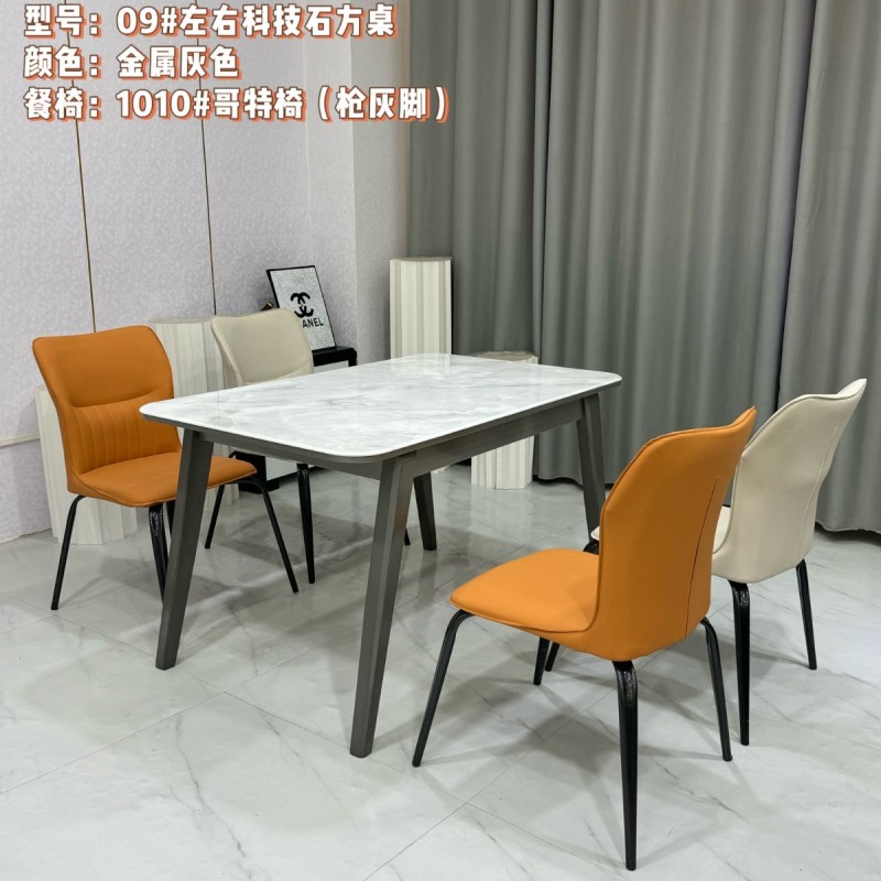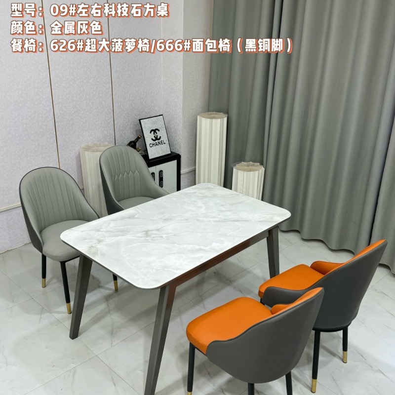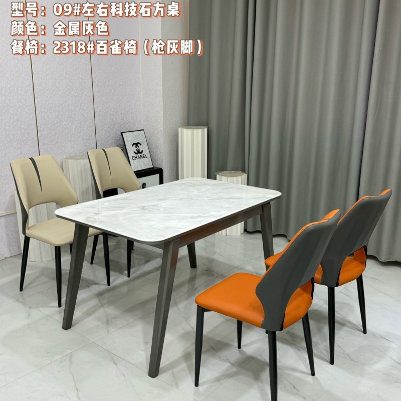爆款09# 轻奢风科技石西餐桌 颜色:金属灰色 椅子:多款可选