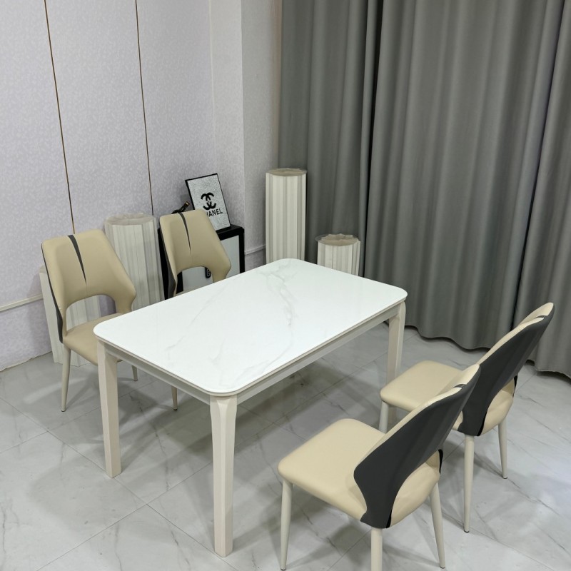 爆款08# 科技石方桌 颜色:亚米色 椅子:2318# 百雀椅 备注:是真的科技石哦!!!