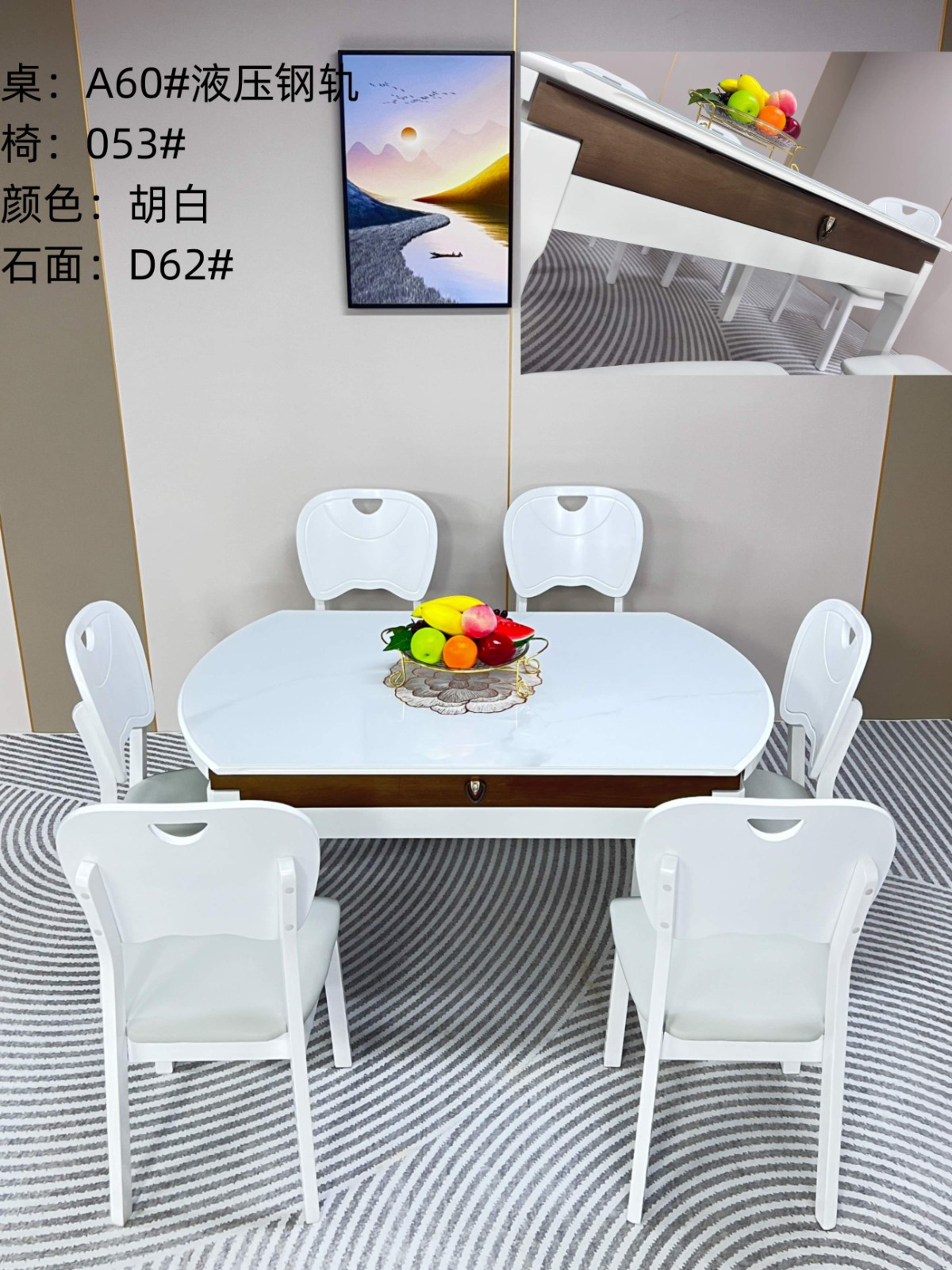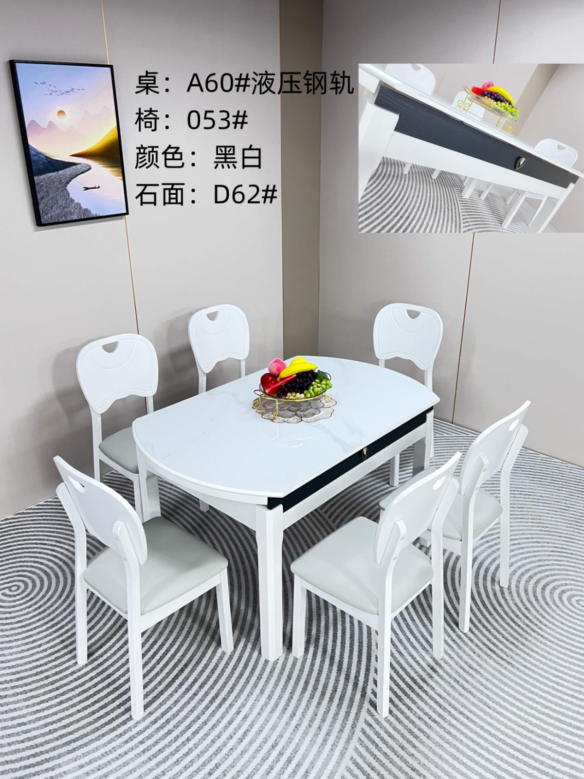 A60# 超级性价比餐桌 颜色:黑白,胡白 椅子:多款可选