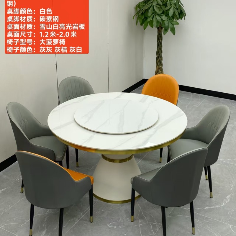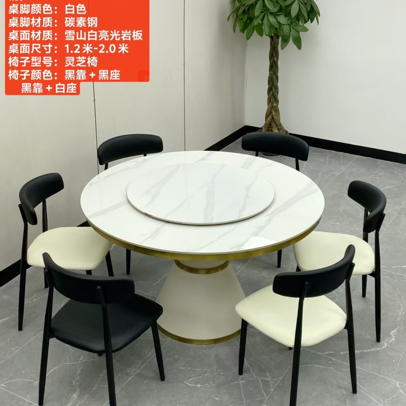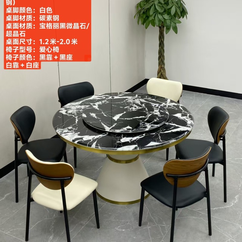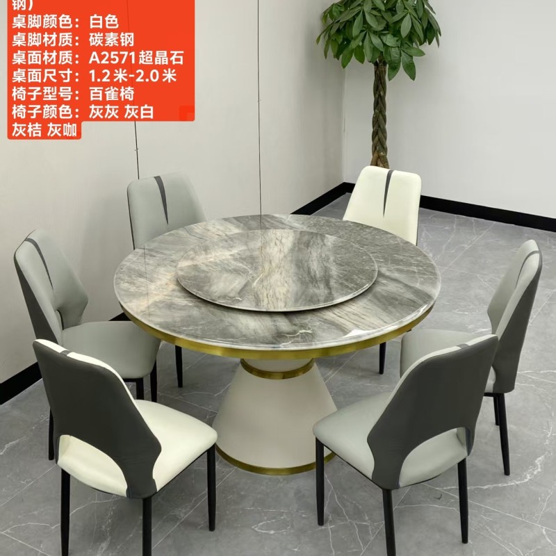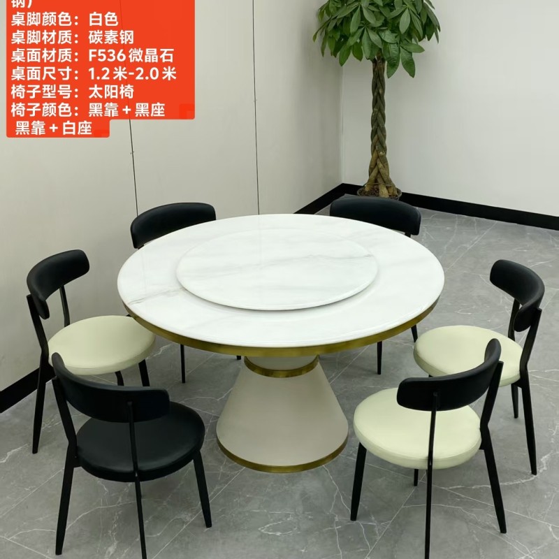型号:216# 不锈钢款 圆桌配配台圈 材质:碳素钢底架(金色部分不锈钢) 搭配岩板/微晶石/超晶石 尺寸:1.2米-2.0米 搭配熊猫椅,环抱椅,百雀椅, 大菠萝,贝勒椅,刀片椅,蝴蝶椅 羊角椅 太阳椅 爱心椅 随意搭配