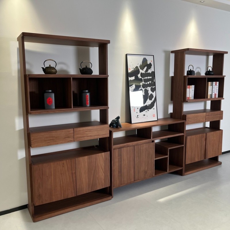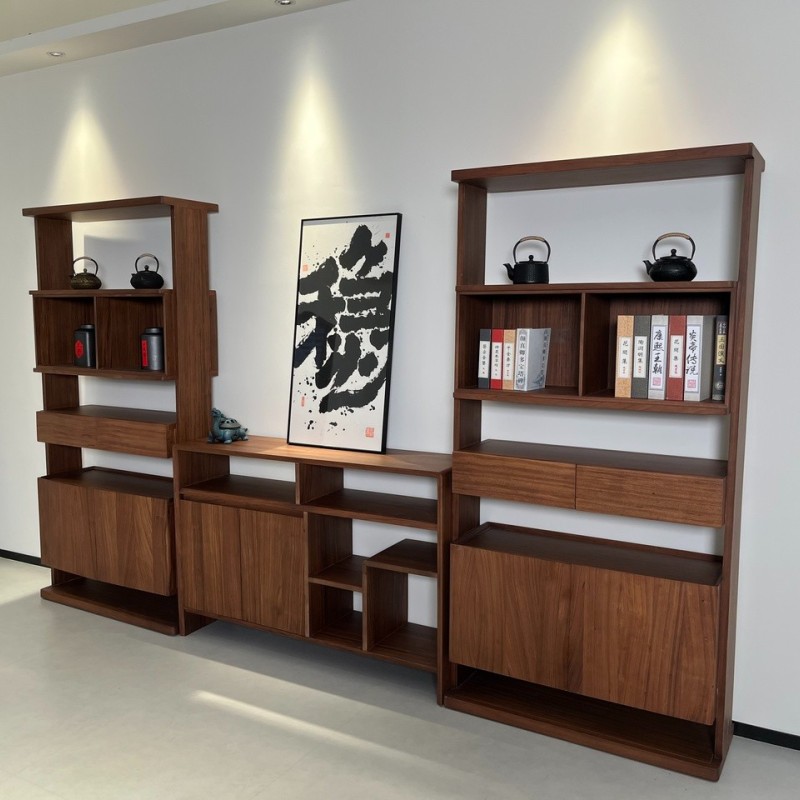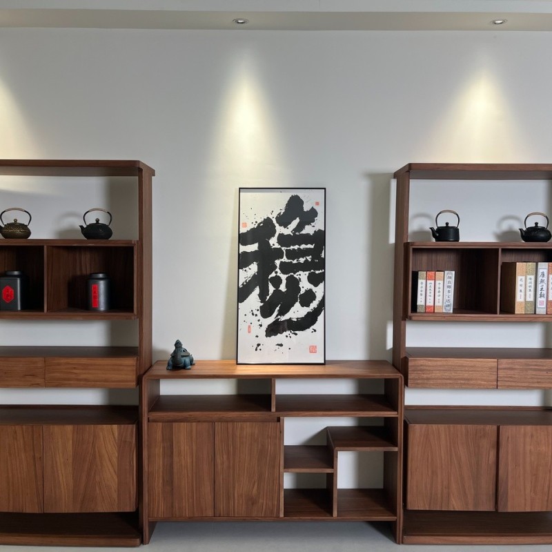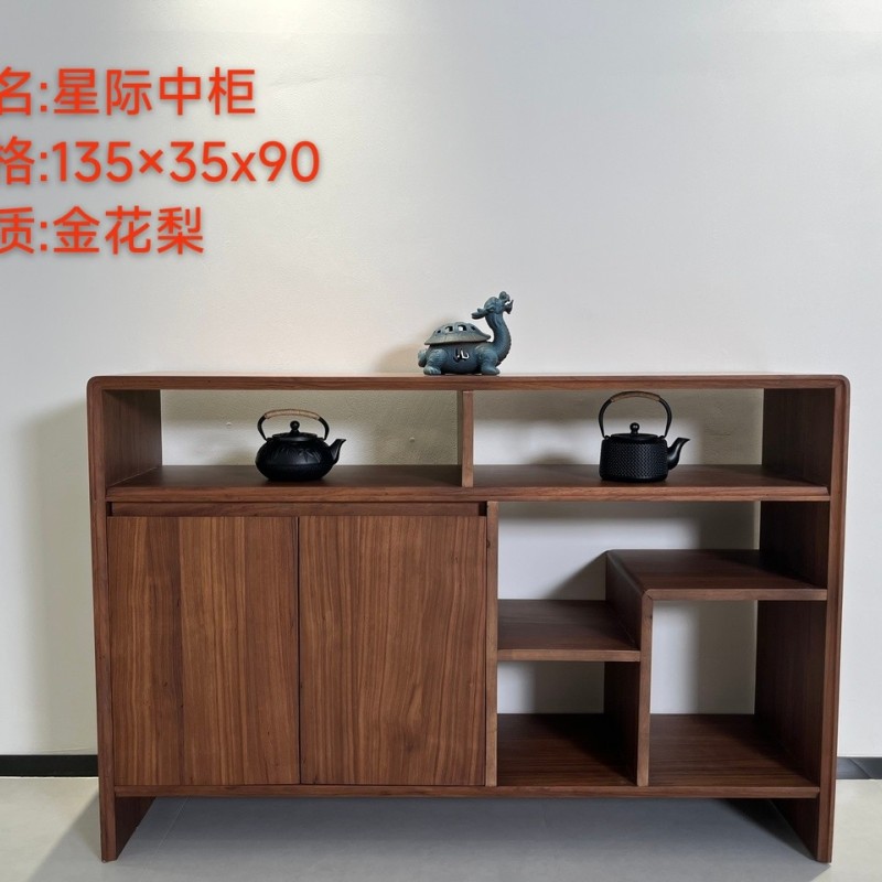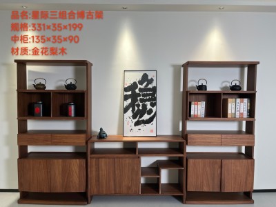 星际三组合博古架 规格:331x35x199cm 中柜:135x35x90cm 材质:金花梨木