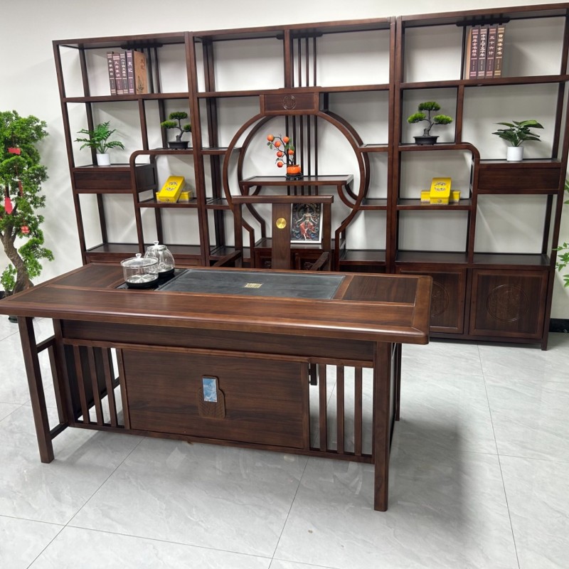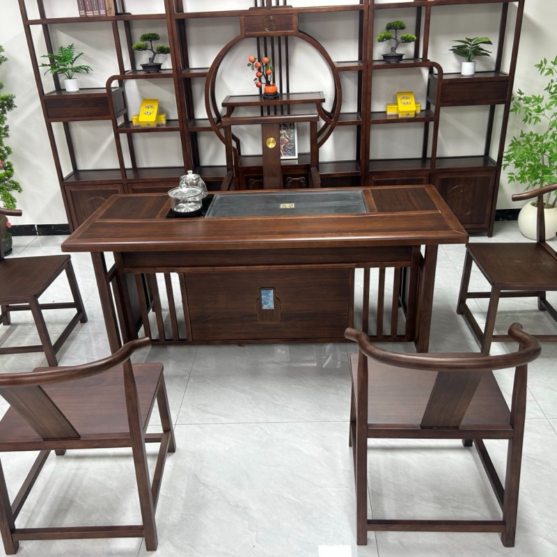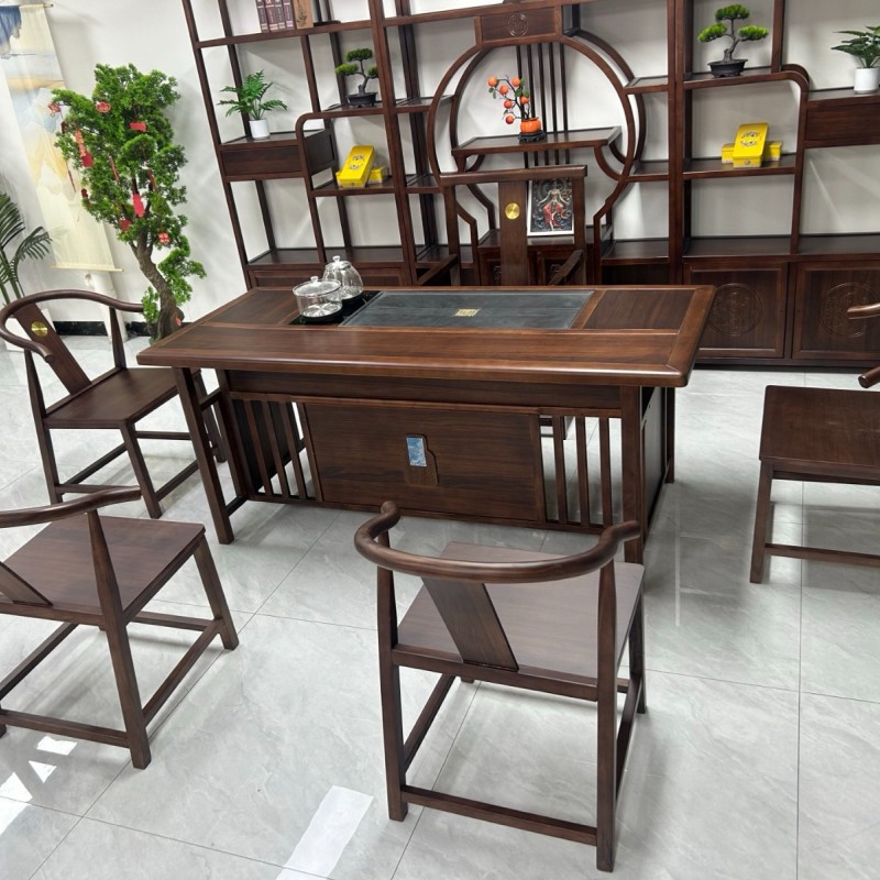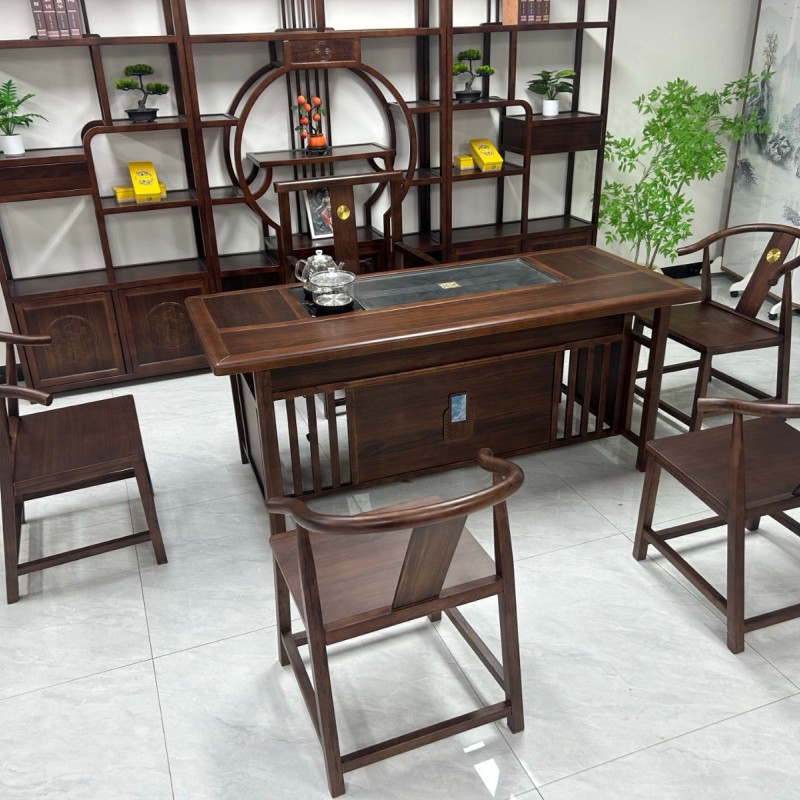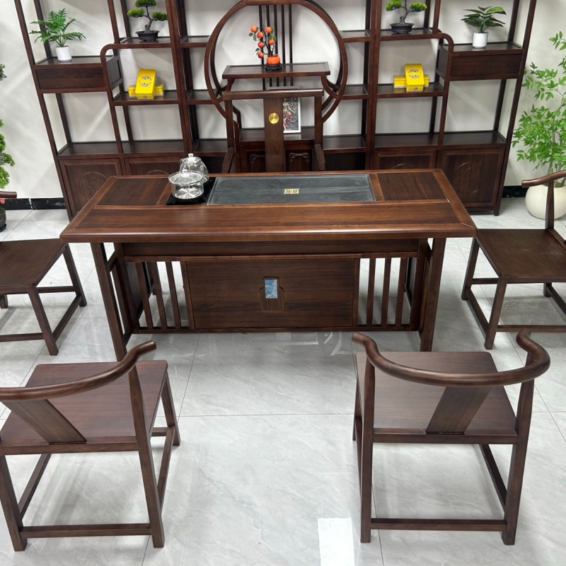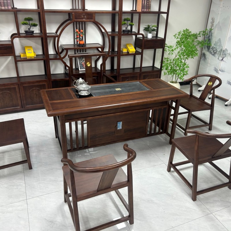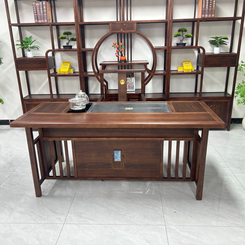 博雅茶台 【规格】180*80*73cm 【材质】橡木➕乌金木工艺 【颜色】黑胡桃