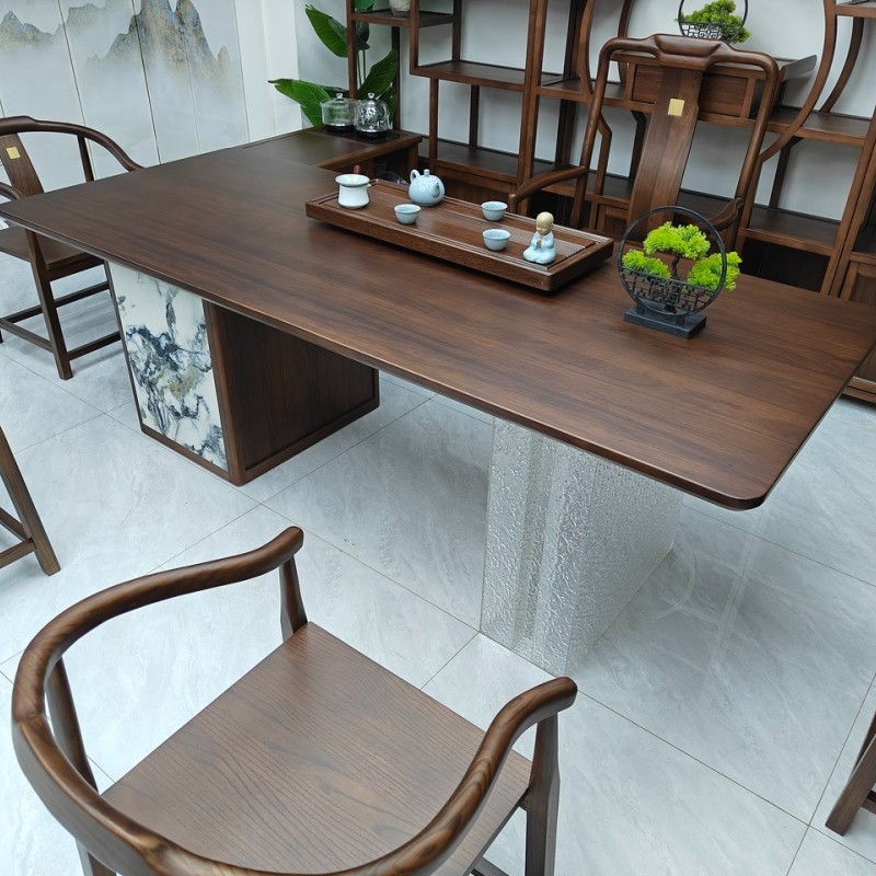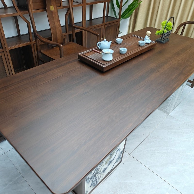 锦绣山河大板茶台 【尺寸】200/220/240*88*75cm 【材质】非洲檀木(乌金木工艺) 【颜色】黑胡桃