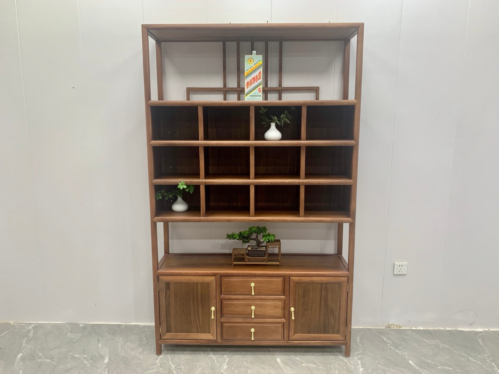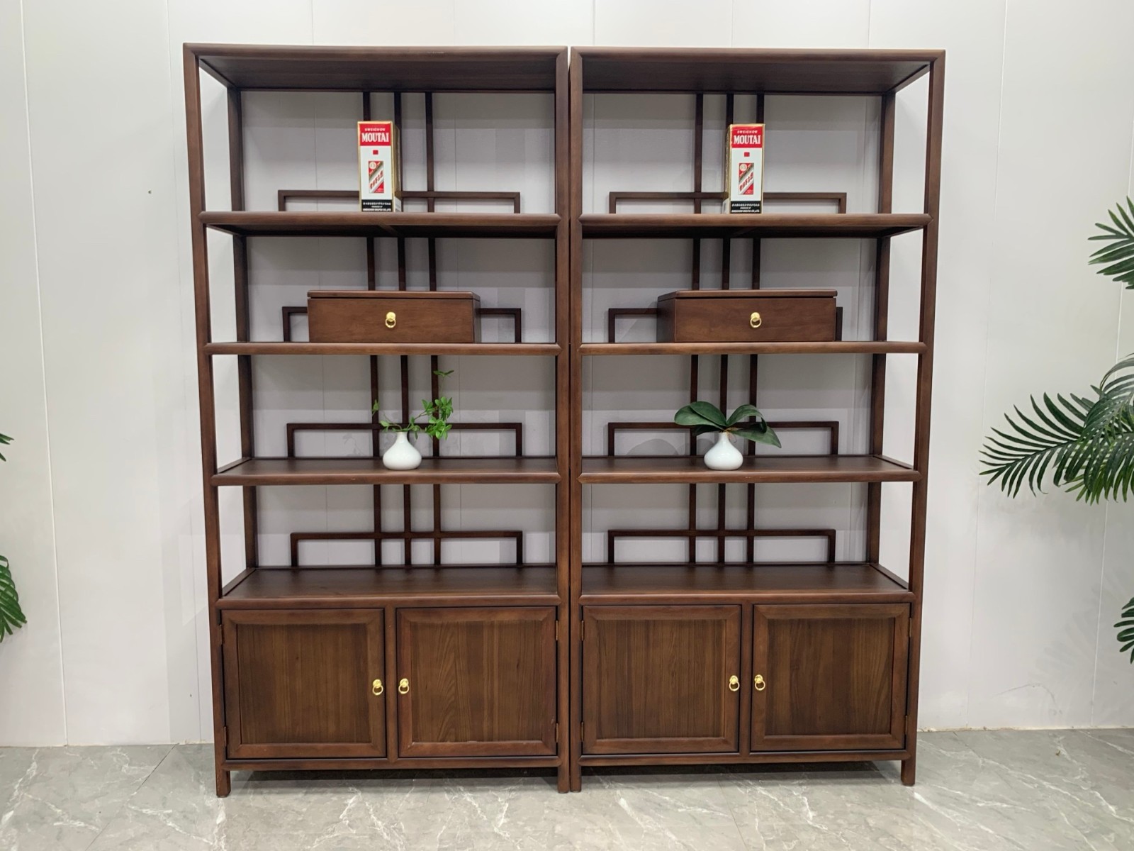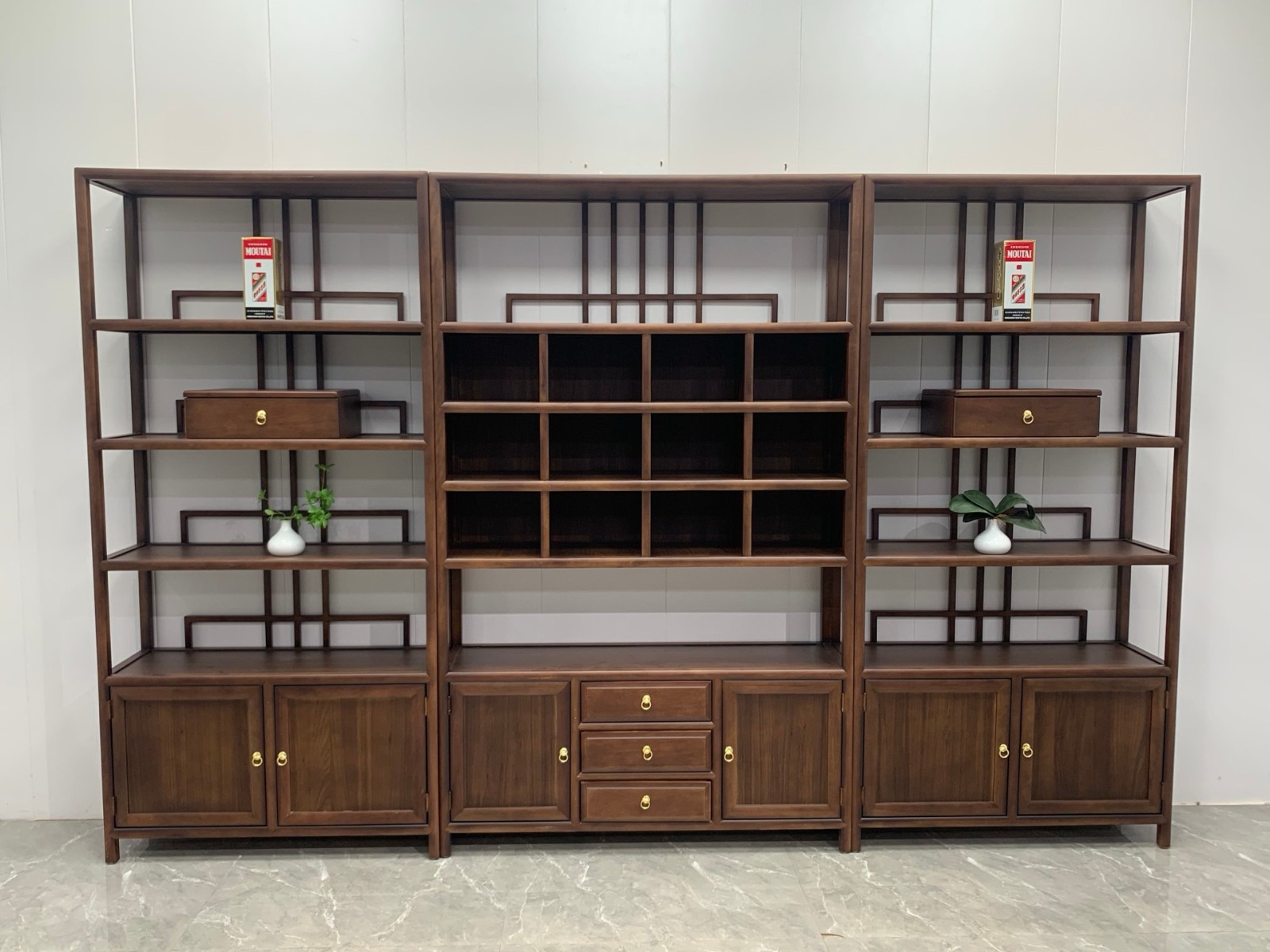 高品致尚➕二抽屉博古架 【尺寸】316×33×196CM(三组合)126×33×196CM(中柜) 190×33×196CM (两组合) 【材质】橡木 【颜色】北美胡/黑胡桃