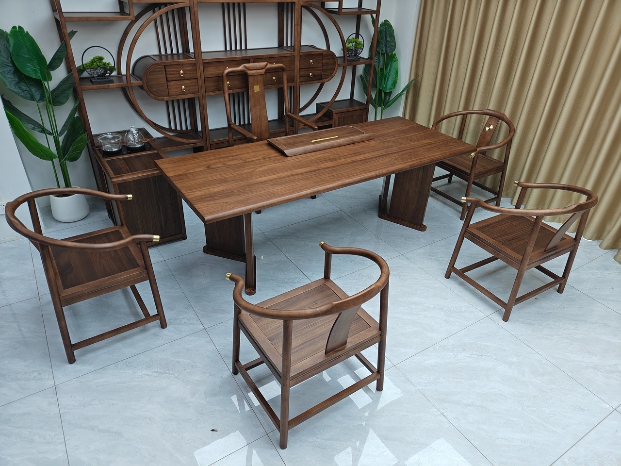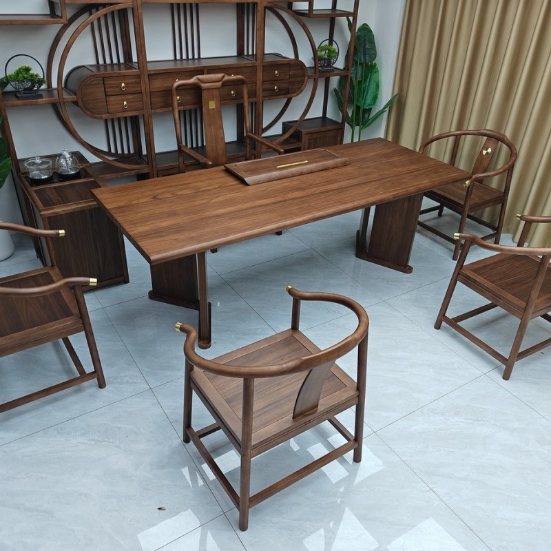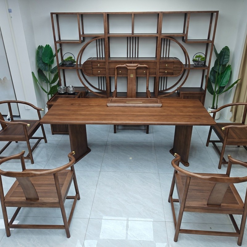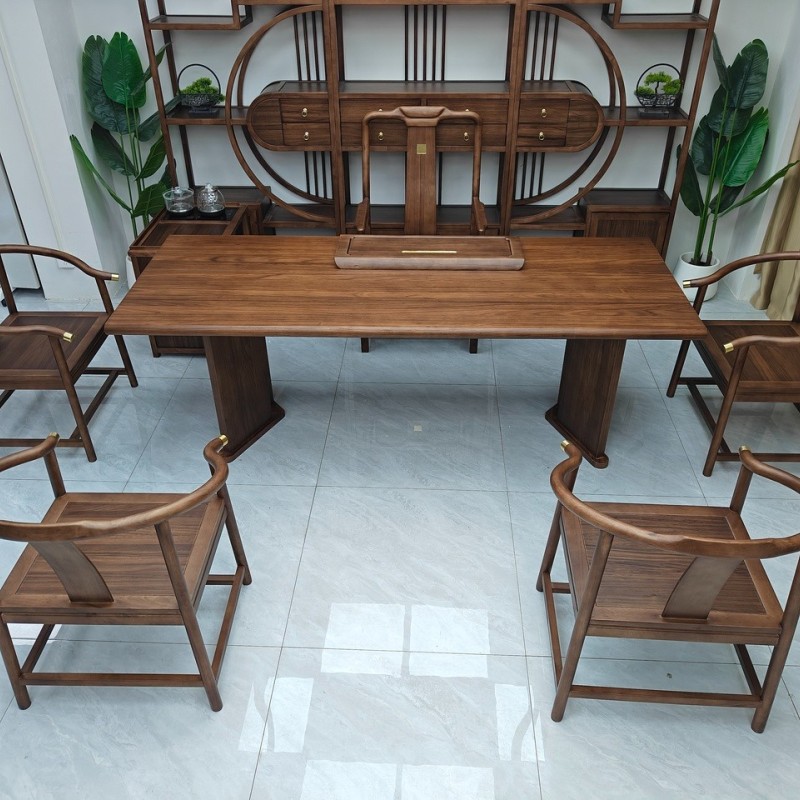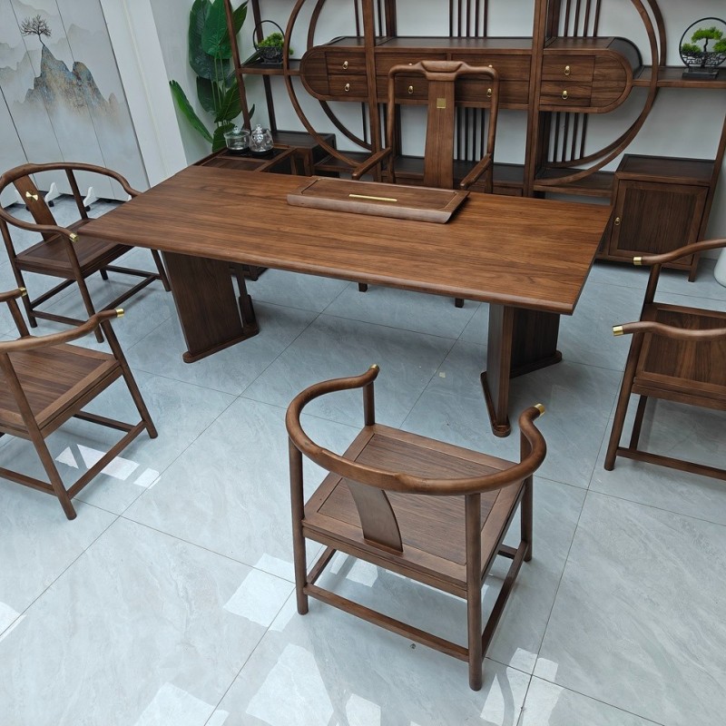 国泰大板茶台 【尺寸】200/220/240*88*75CM 【材质】非洲檀木(乌金木工艺) 【颜色】黑胡桃