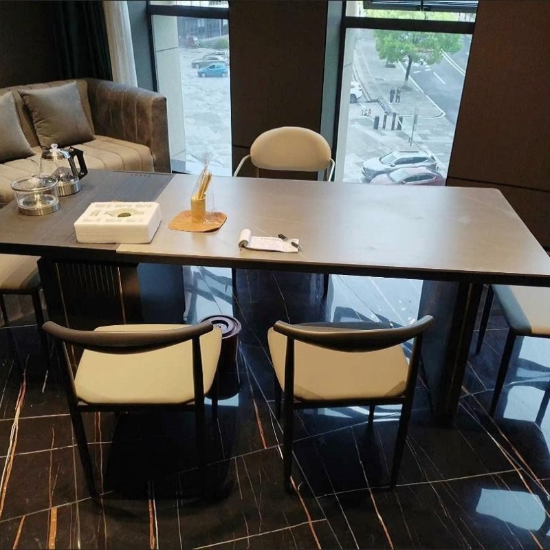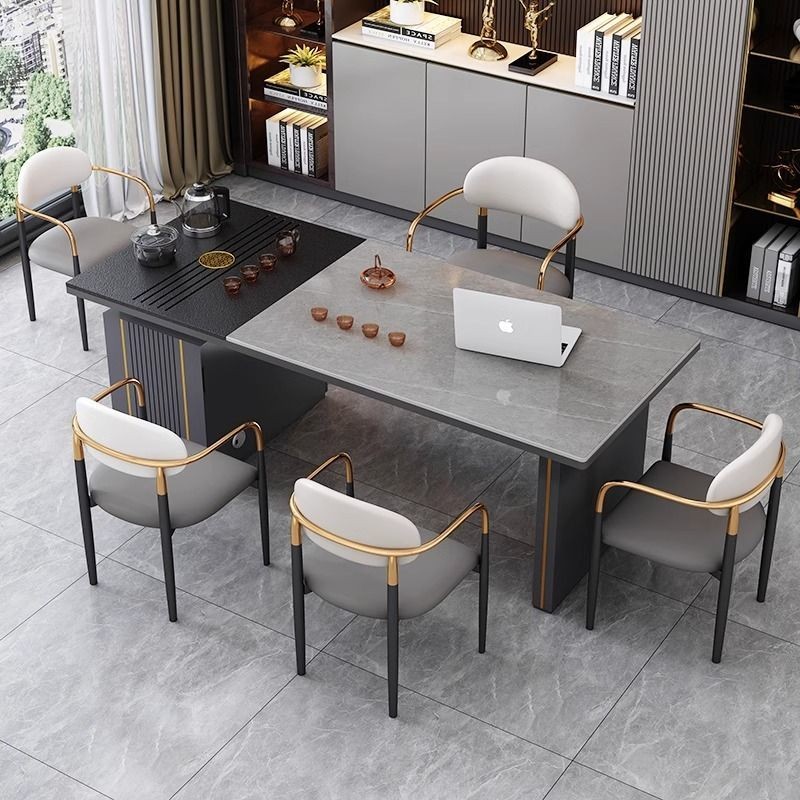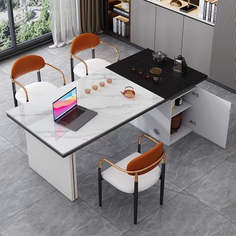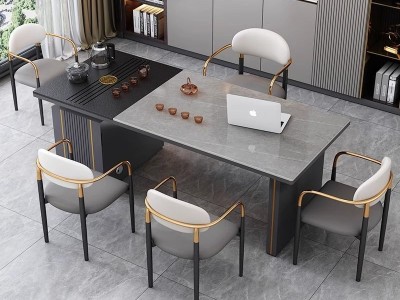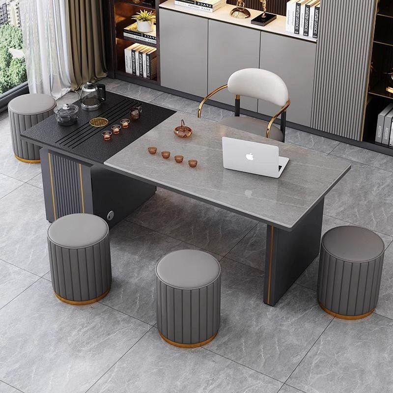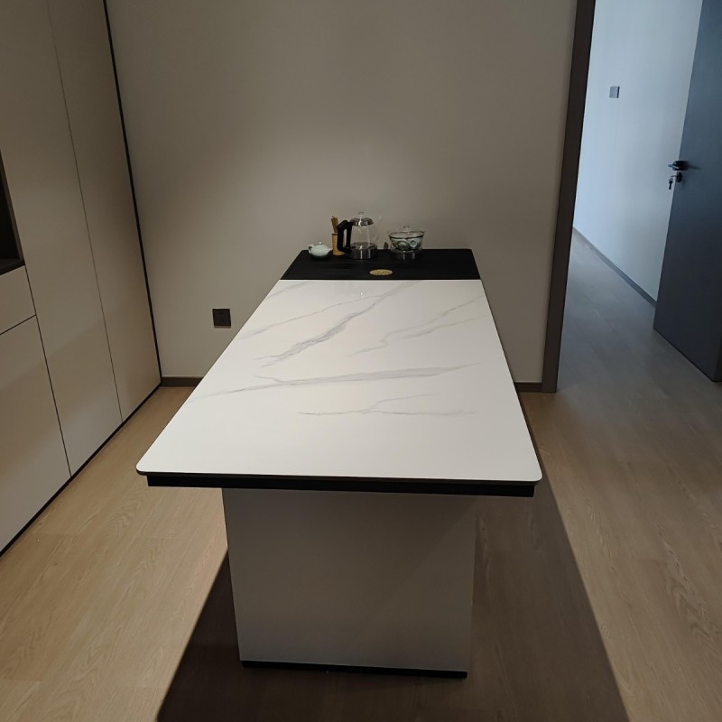 现代岩板茶台 材质:中纤板柜体 岩板面 颜色:灰色 / 白色 备注:单桌配双孔炉
