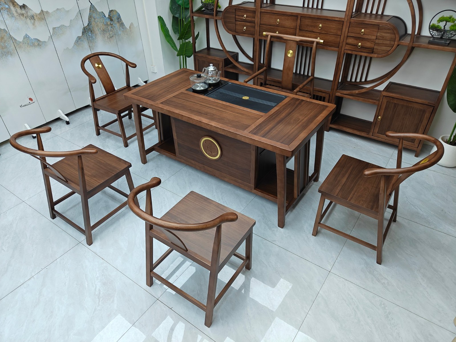 如鱼得水茶台 【规格】160/180*78*73CM 【材质】橡木 【颜色】北美胡 高品擦色工艺,返单爆款 质量保证,售后无忧!