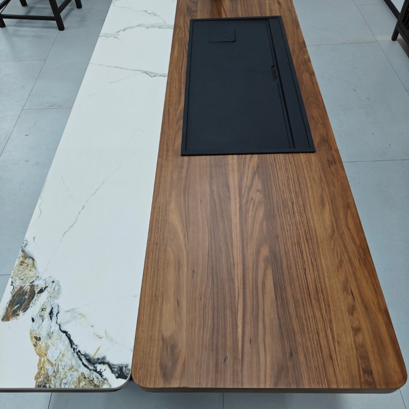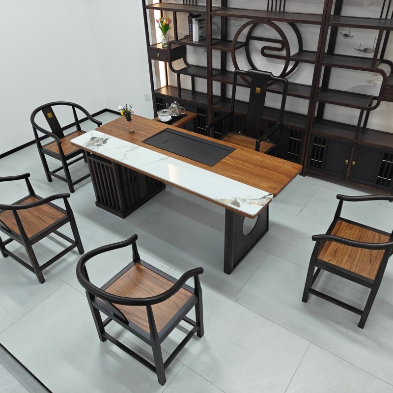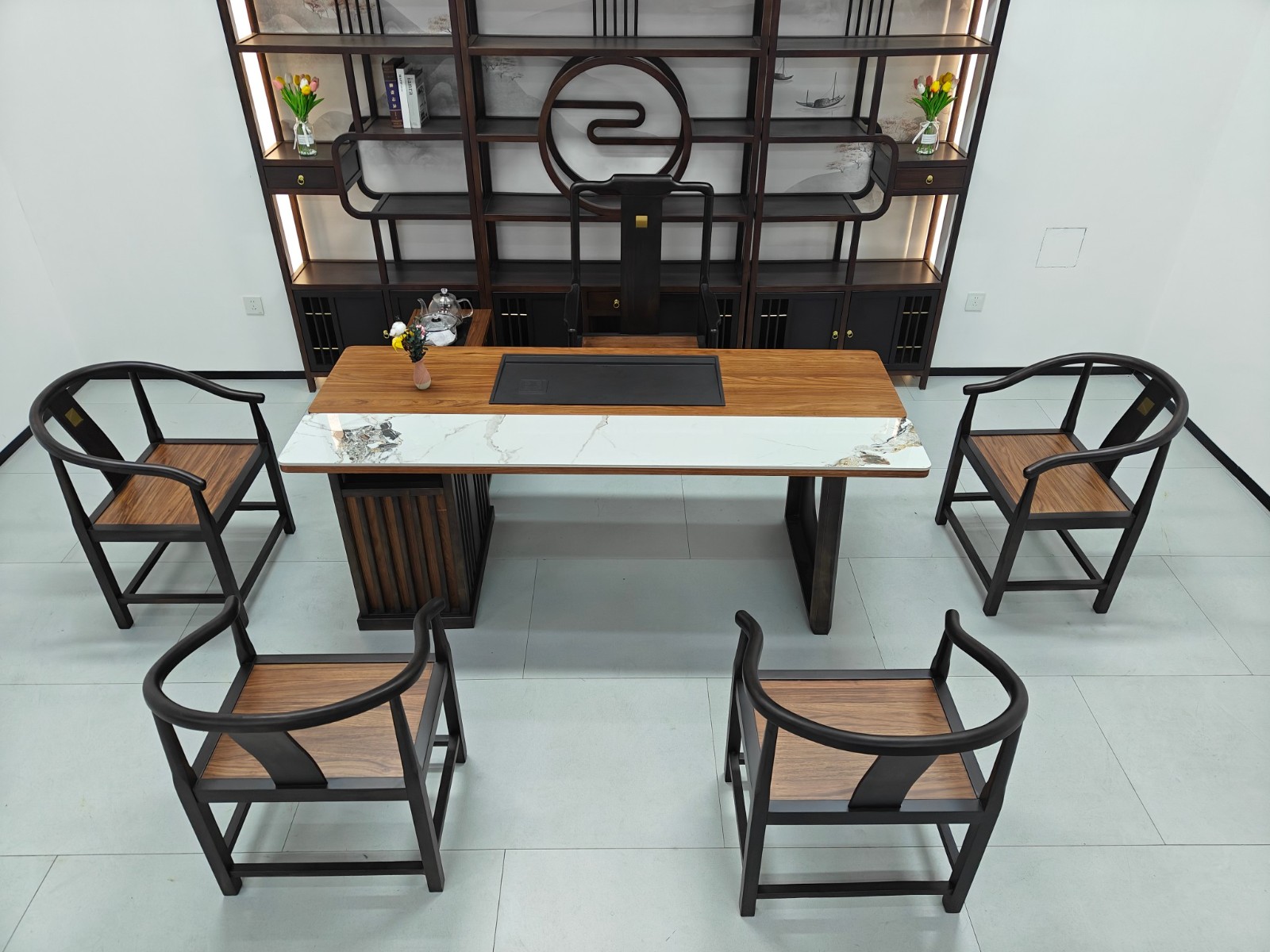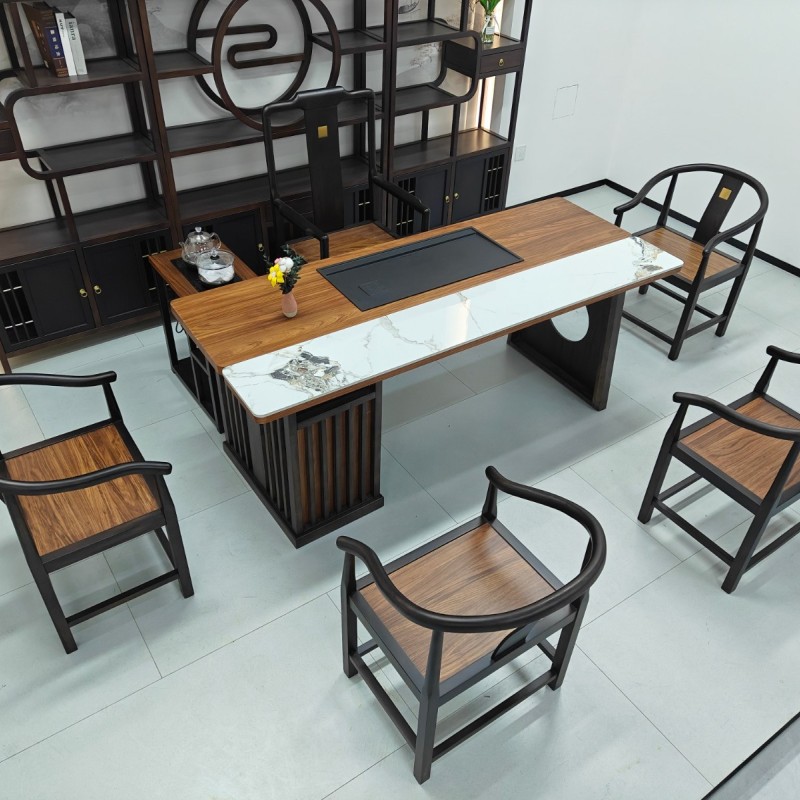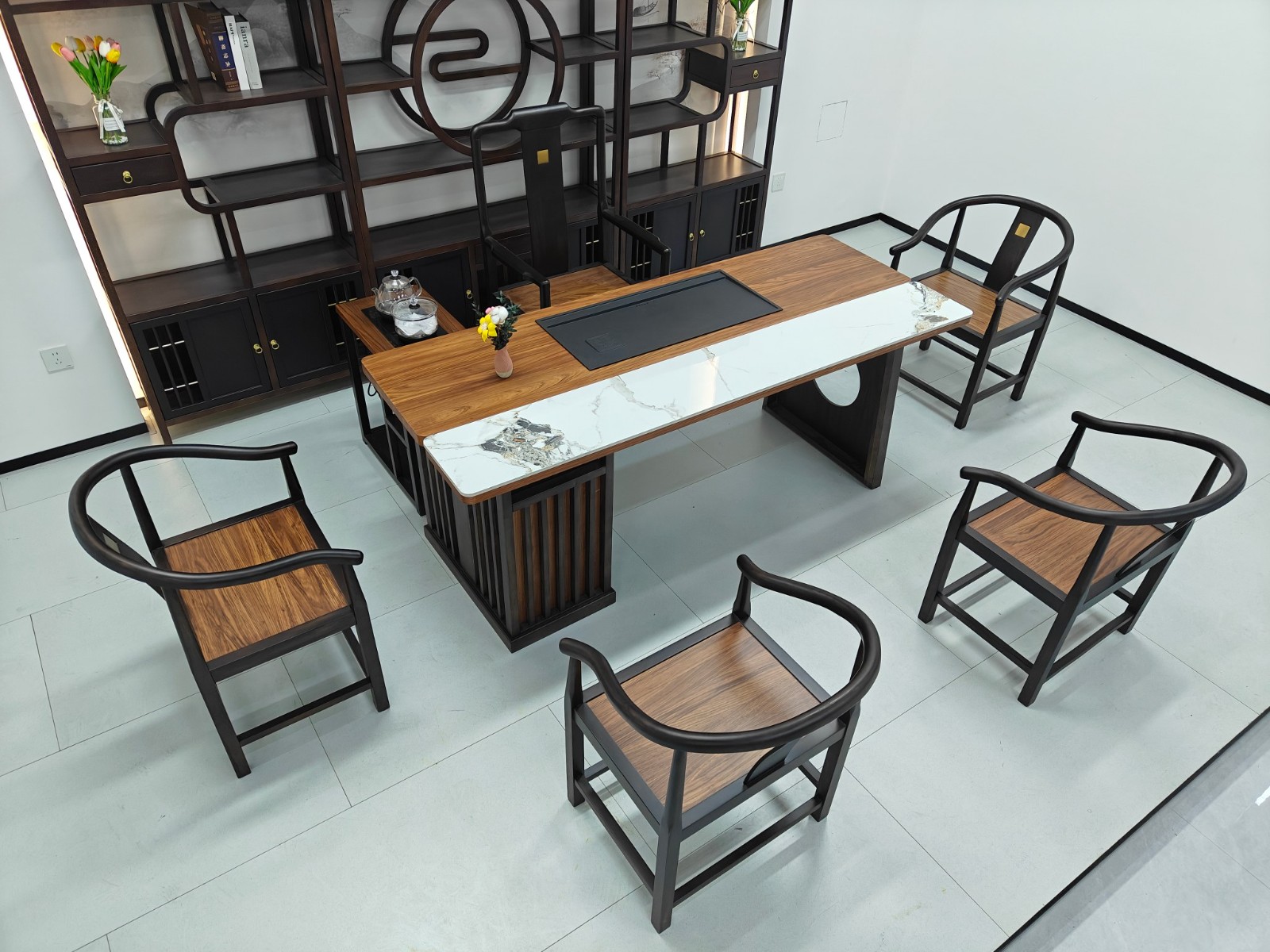 云尚茶台 【规格】180/200*80*73CM 【材质】乌金木工艺 【颜色】双拼色 甄选品质,中式与现代结合