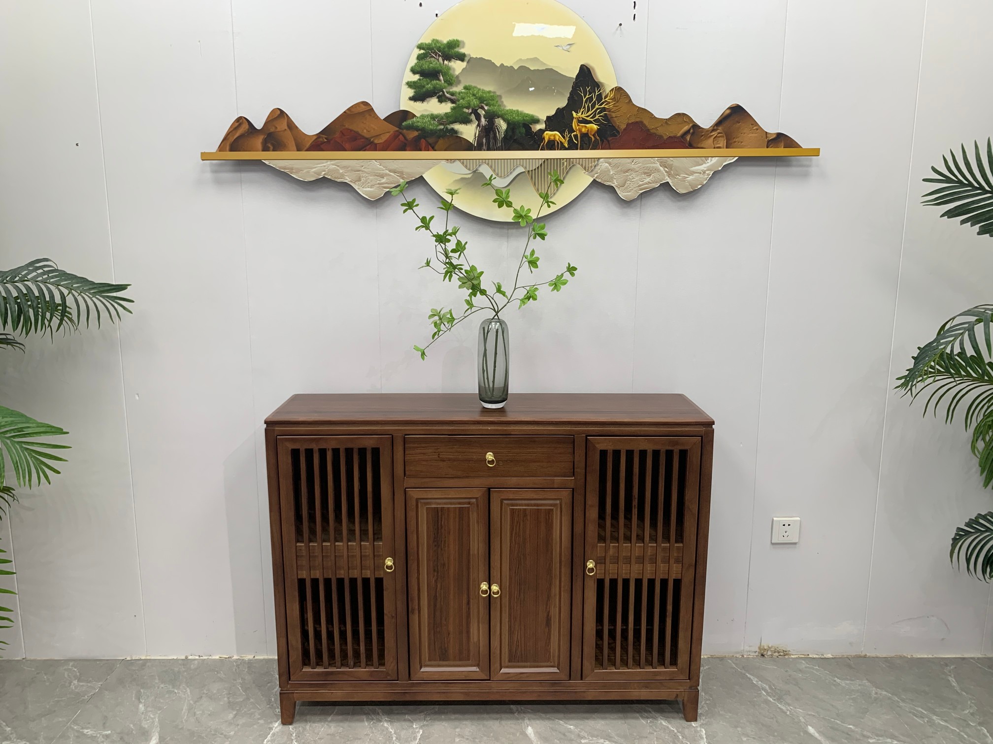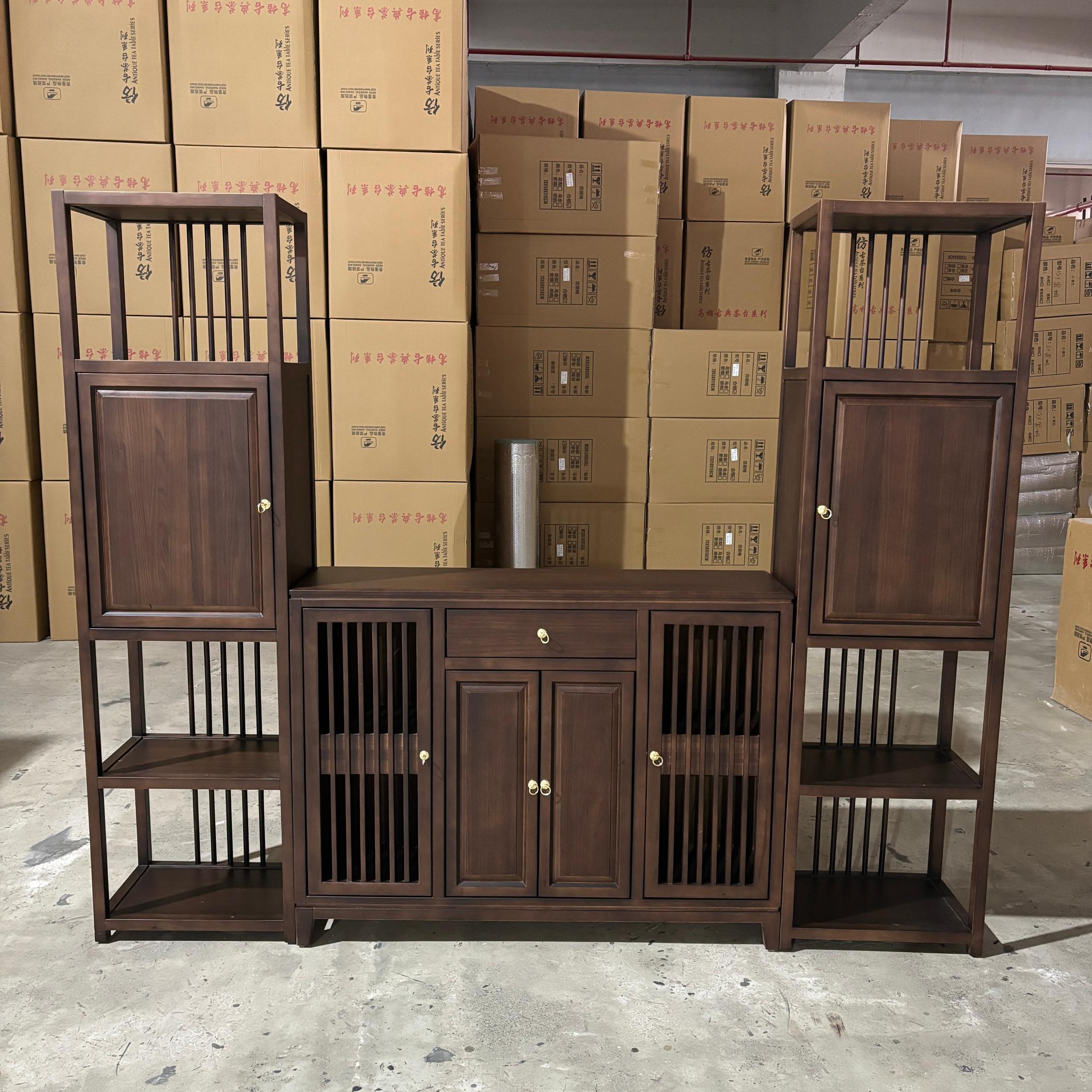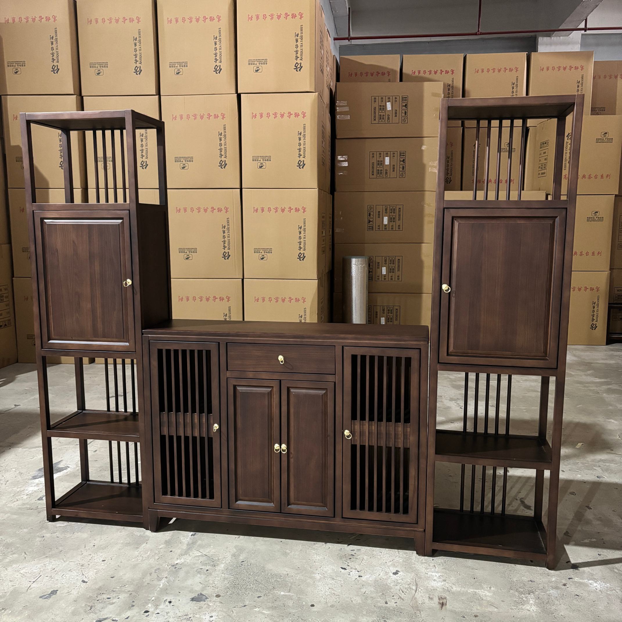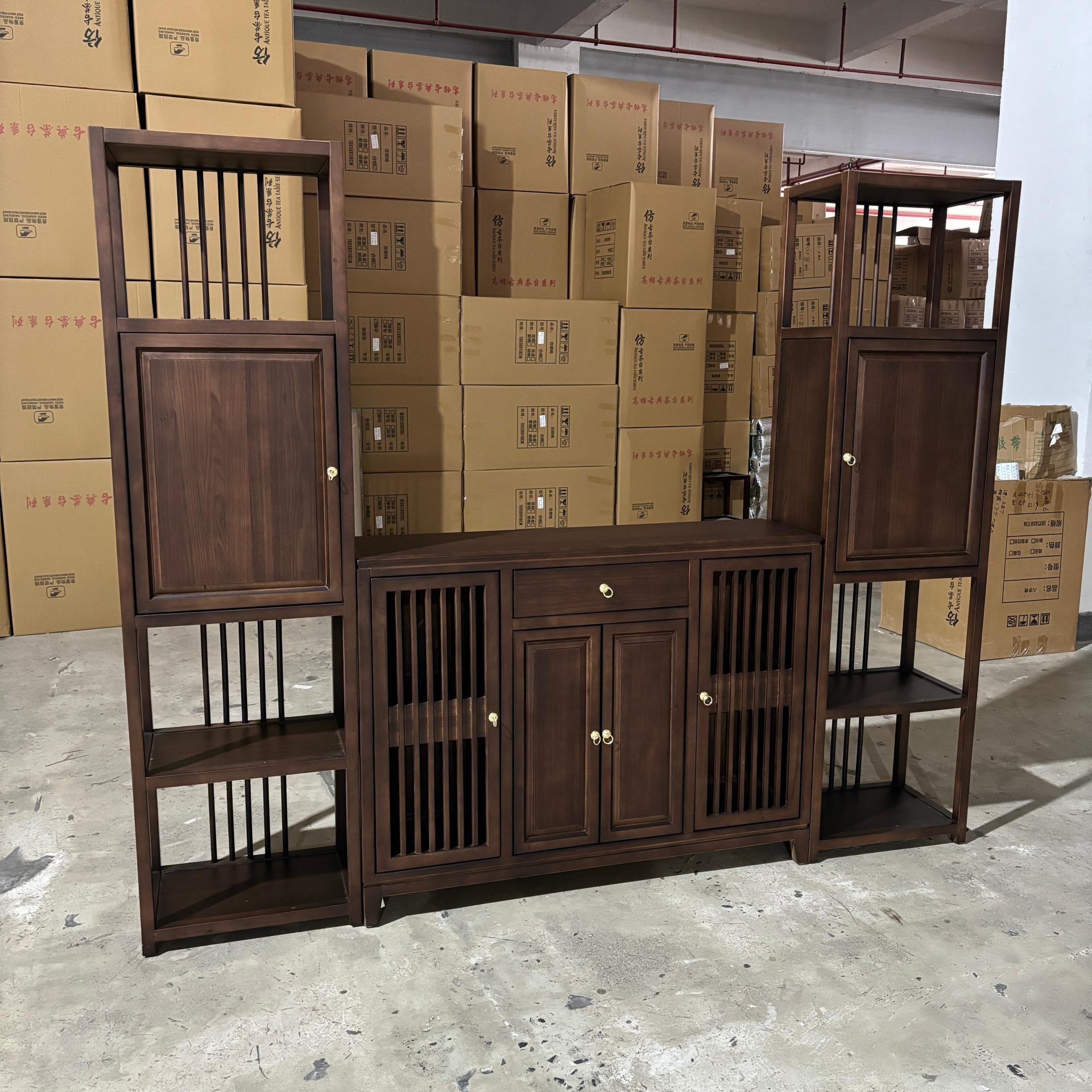 江南小镇 【尺寸】 中柜:120*33*90CM 边柜:50*33*180CM 三组合:220*33*180CM 【材质】橡木 【颜色】北美胡/黑胡桃