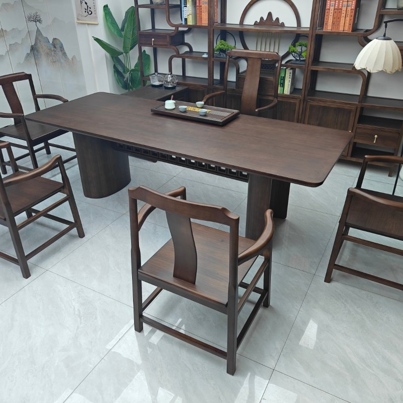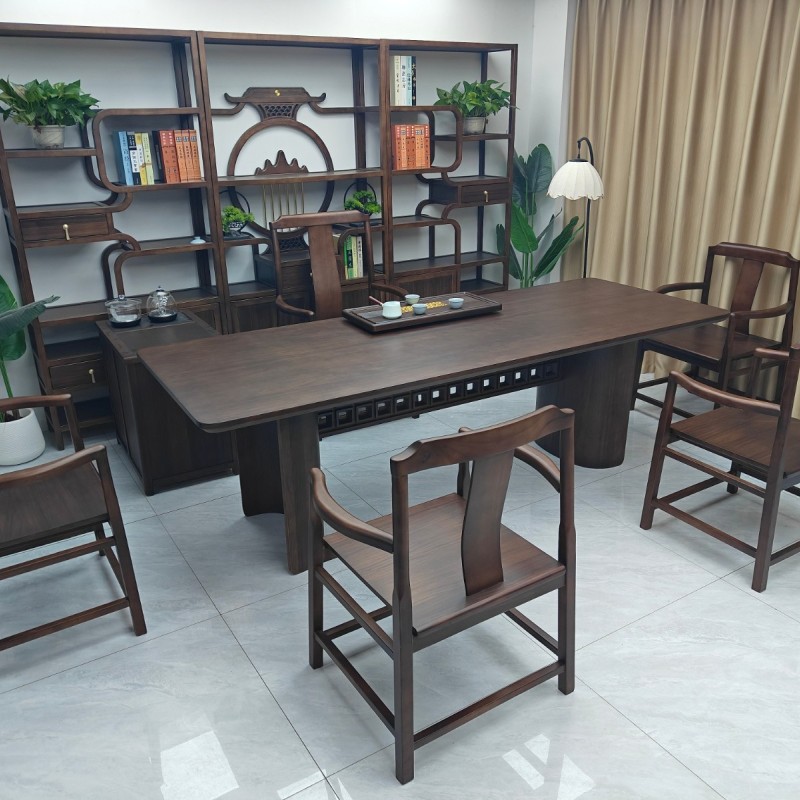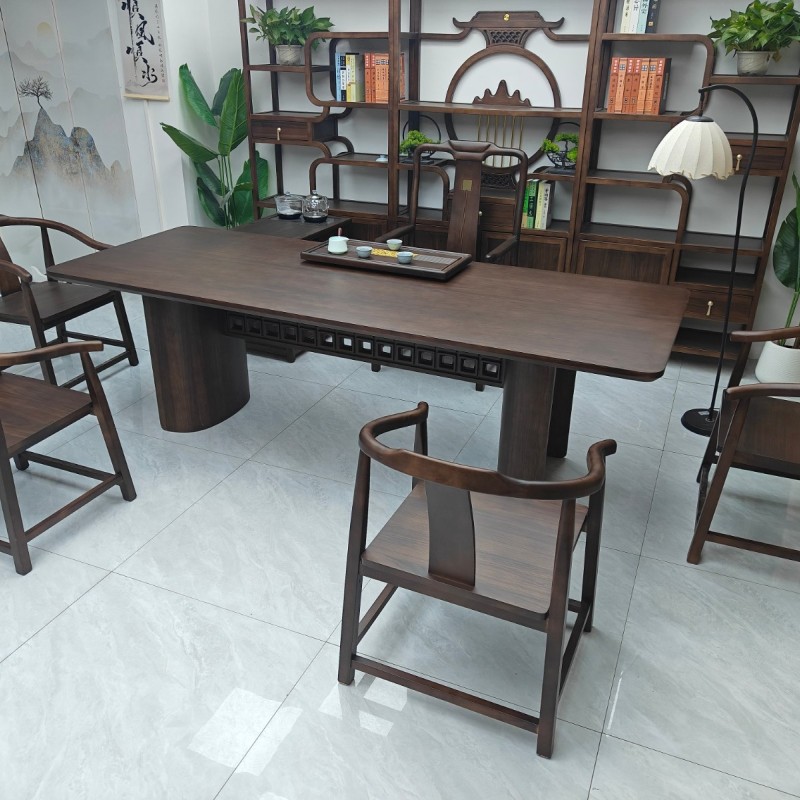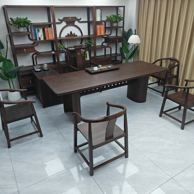 鹏程万里大板茶台(新款) 【规格】200/220/240*90*74CM长宽高 【材质】非洲檀木 【颜色】北美黑胡桃 全实木大板,宋氏美学风, 甄选品质,质量过硬,总裁首选