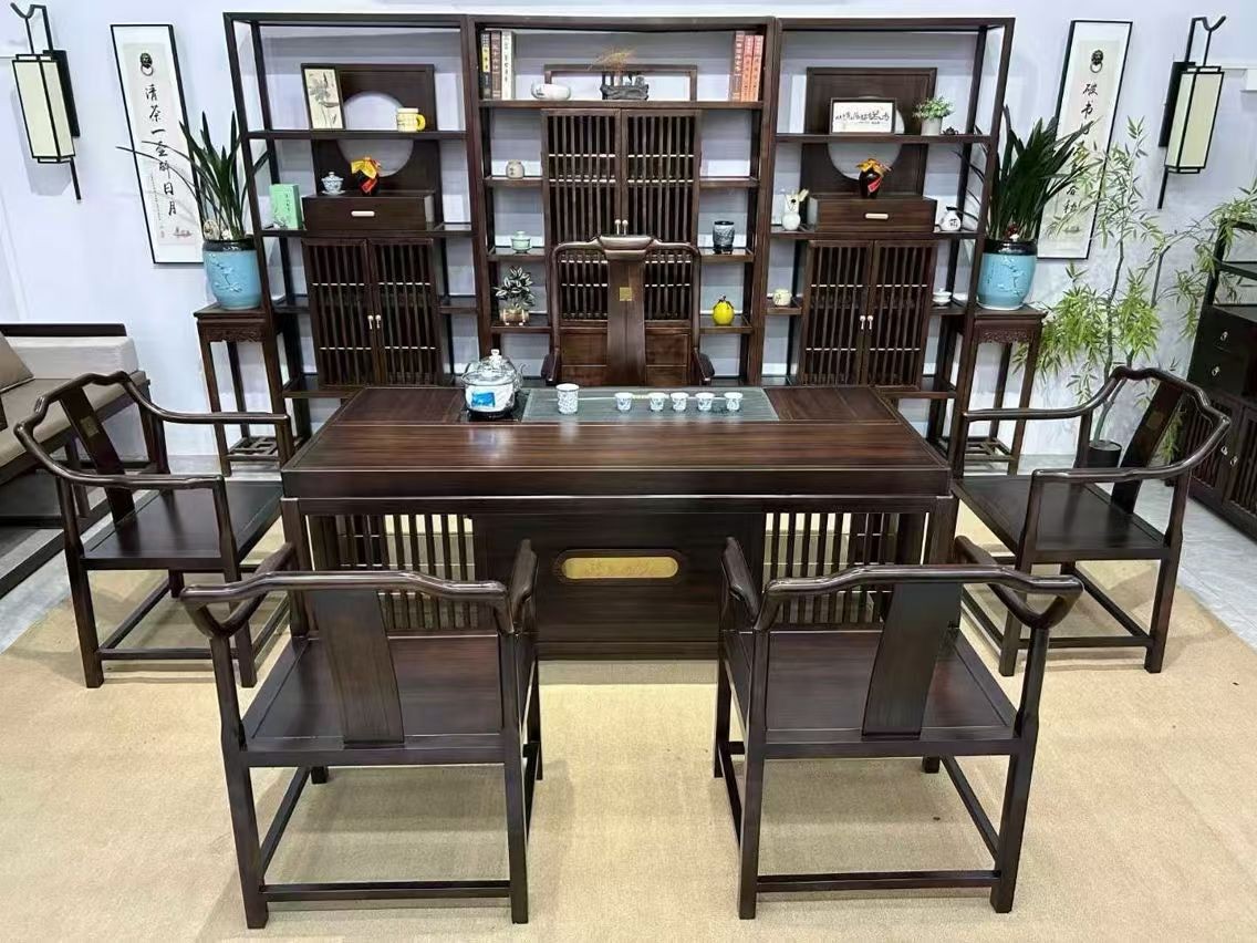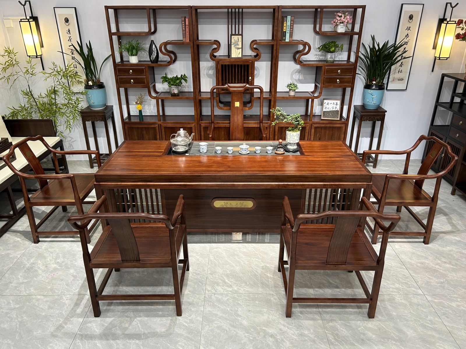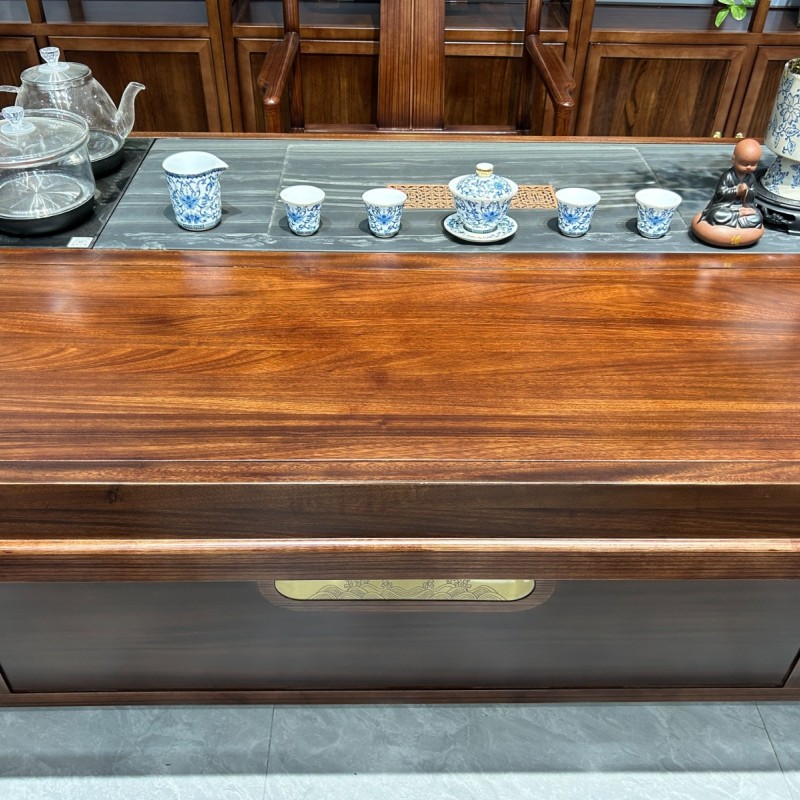 人和致远茶台 材质:乌金木工艺 颜色:红胡桃色、黑胡桃 尺寸:1.6、1.8、2、2.1米。宽82,高73
