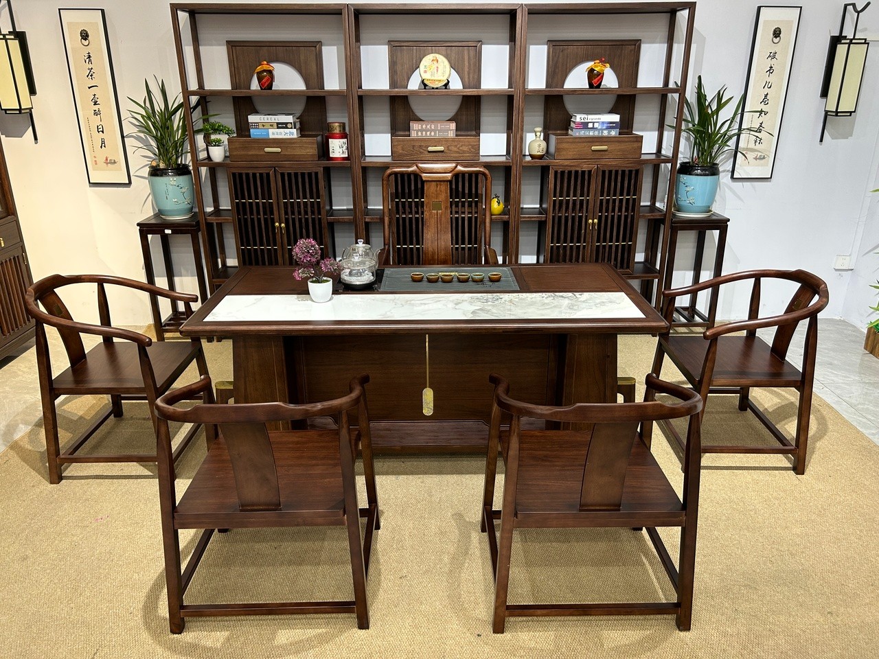 奢石茶台 材质:橡木胡桃木工艺 颜色:黑胡桃色