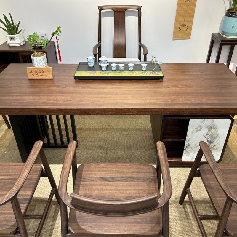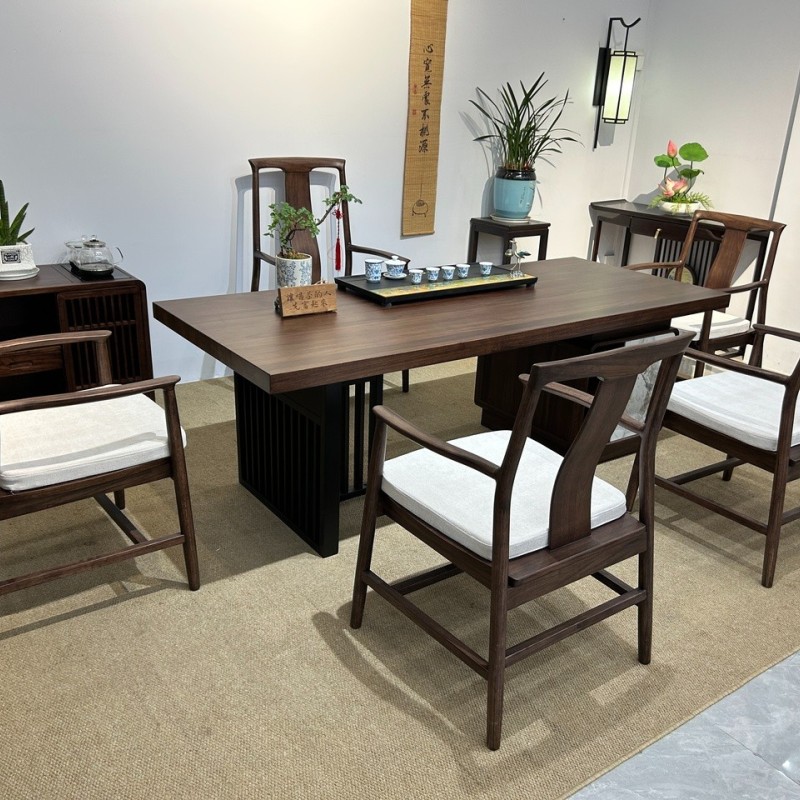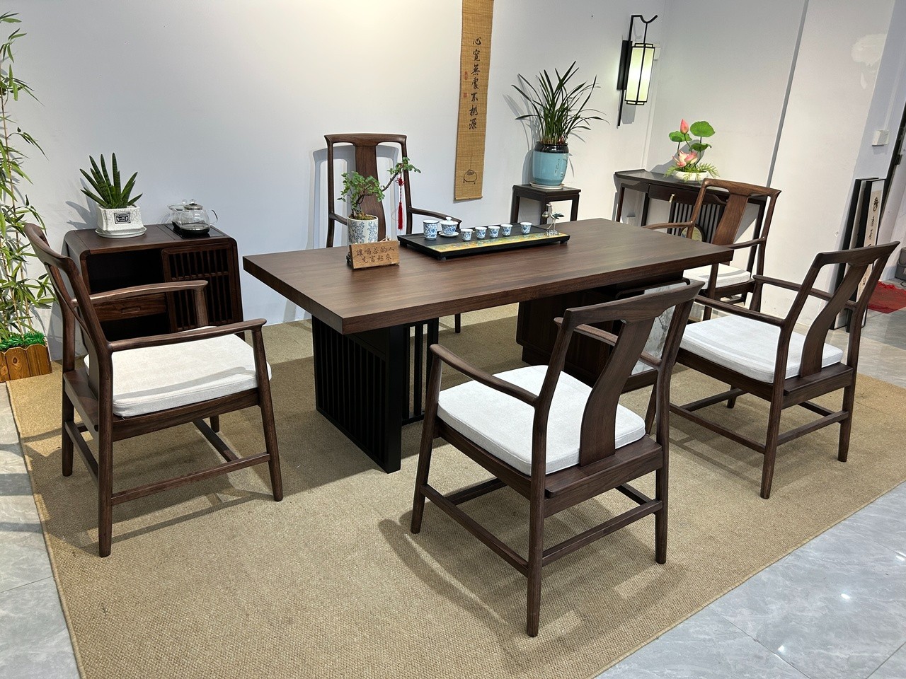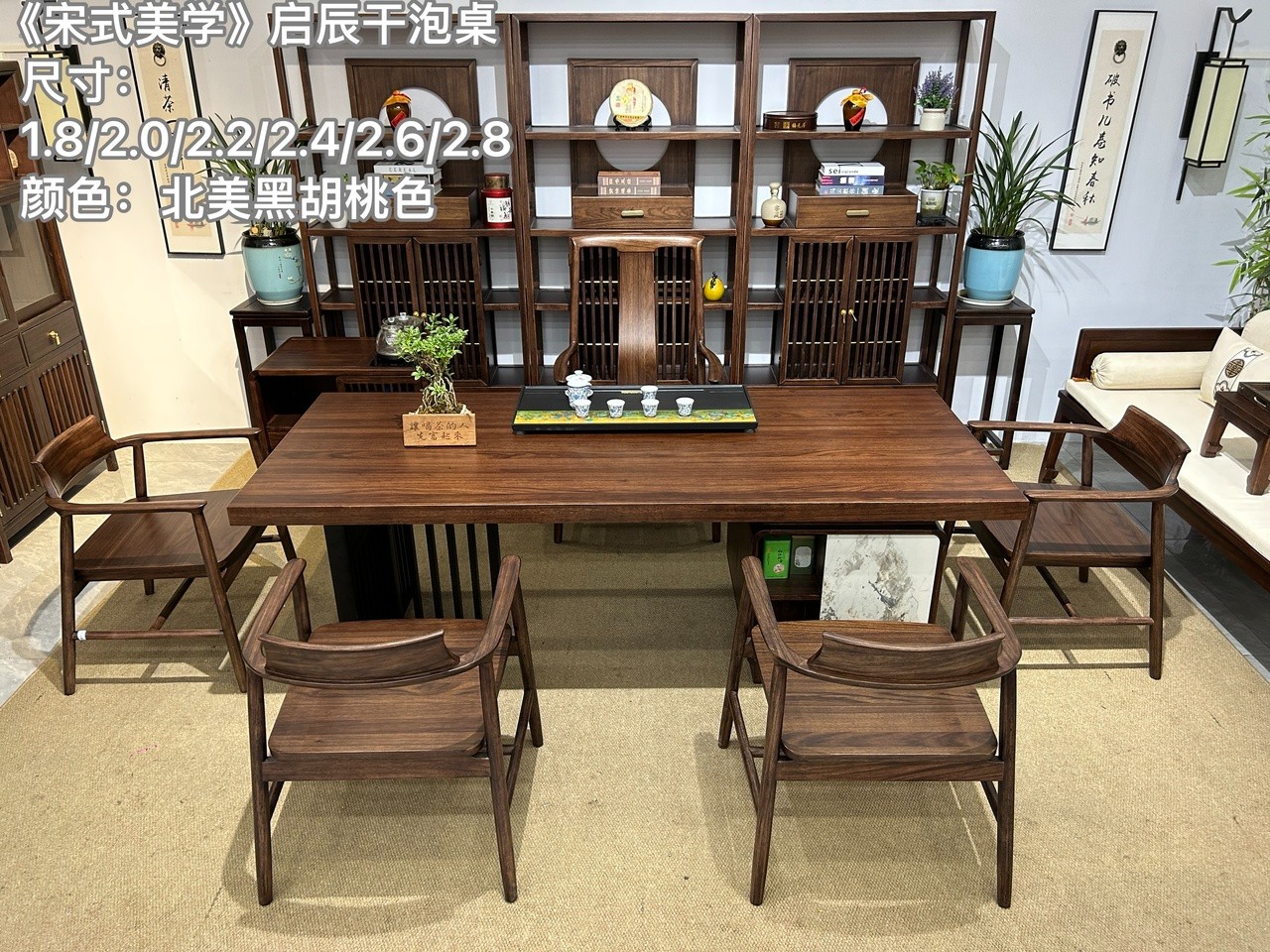 宋式美学《启辰干泡桌》 材质:乌金木 颜色:北美黑胡桃色 尺寸:1.8/2/2.2/2.4/2.6/2.8米,宽88/高75/厚5.5cm