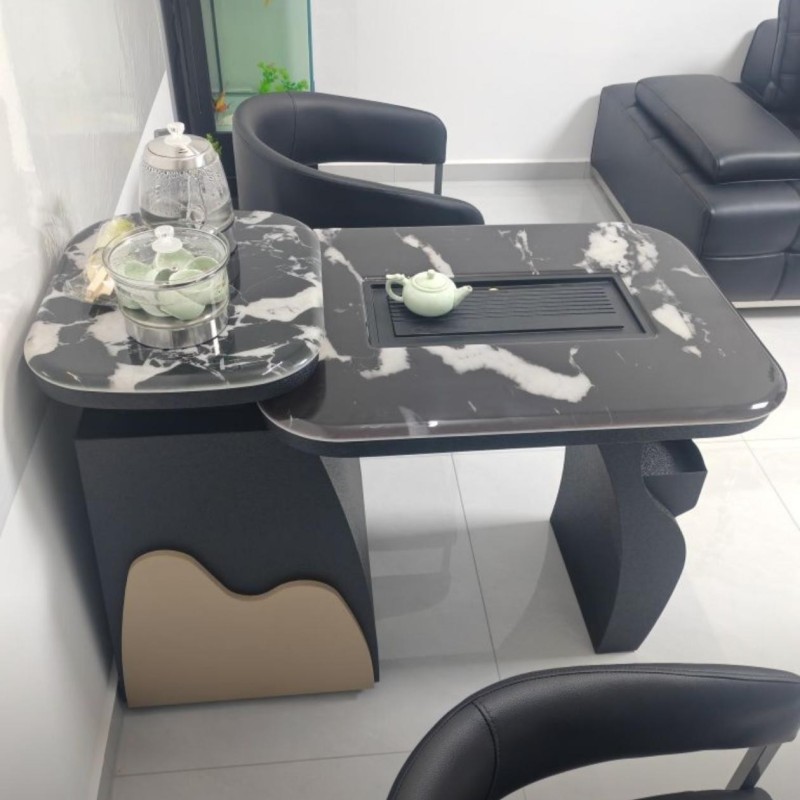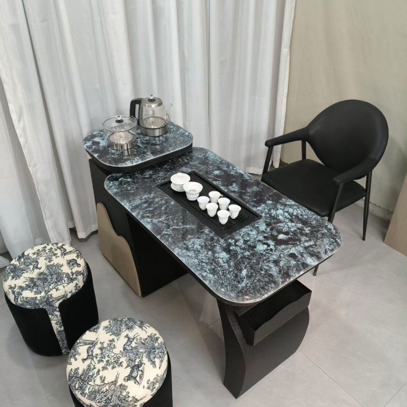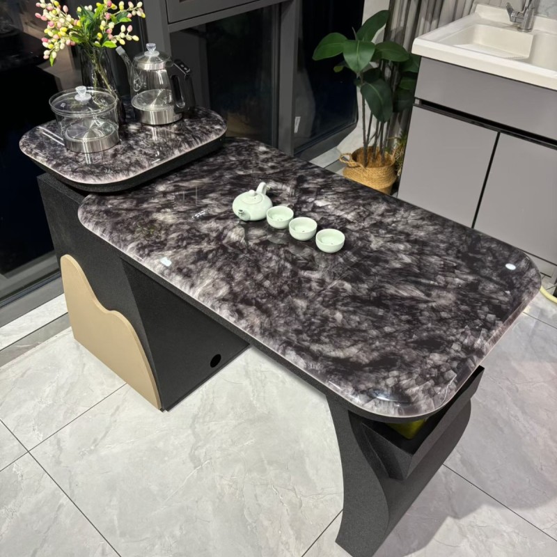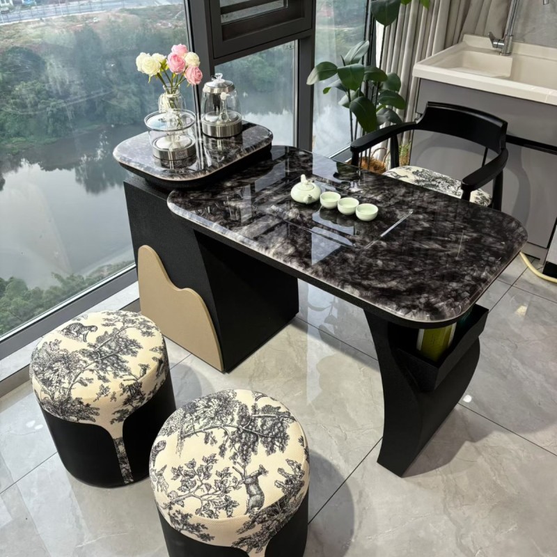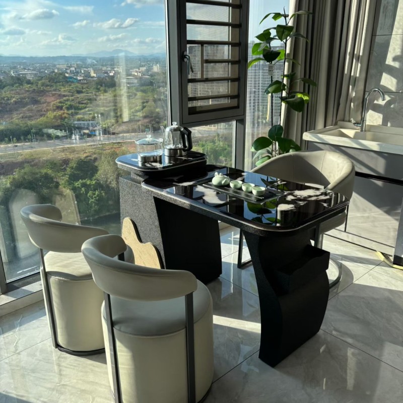 【阳台小茶台】碳素钢 超晶石 颜色:黑色 尺寸:1.1/1.3/1.5/1.7米 备注:单桌配双孔炉 超晶石