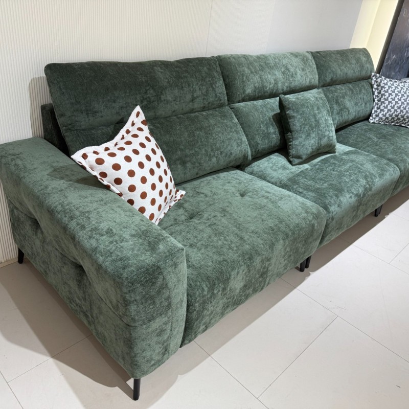 型号:k60#雪尼尔绒布 尺寸:3.3米直排 颜色:深绿色 材质:加厚雪尼尔绒布、高回弹高密度海绵,底架拉簧、坐感舒适、12公分高飞机脚。