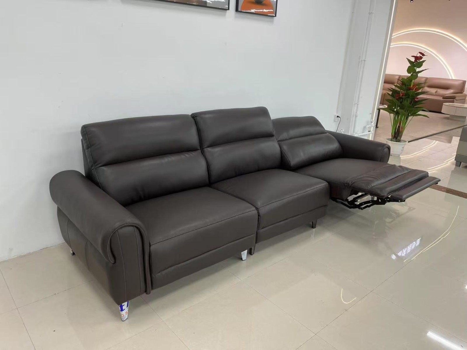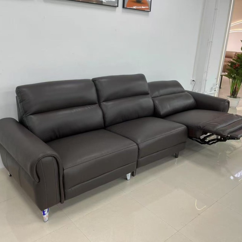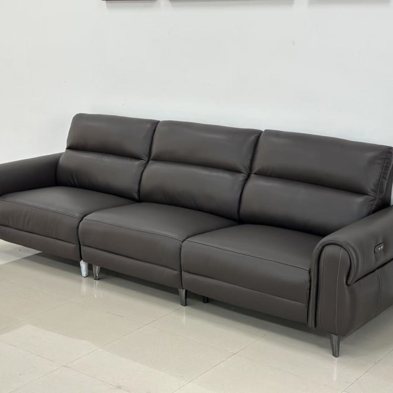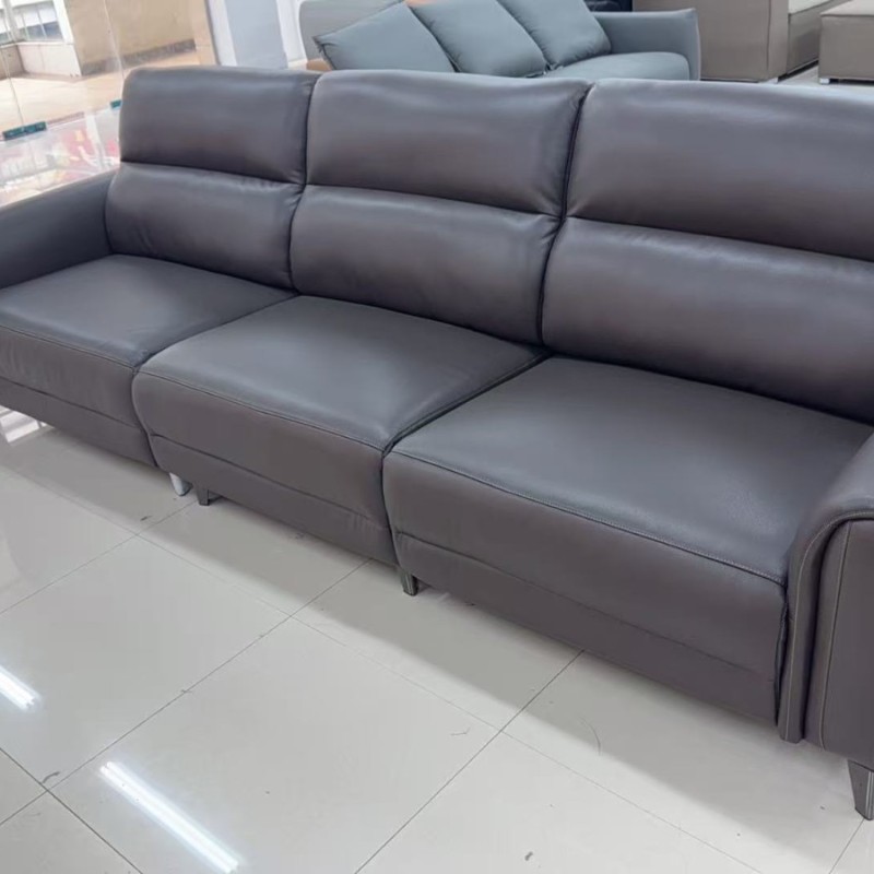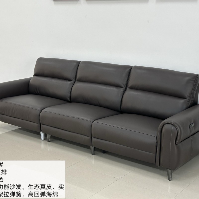直排沙发,皮沙发,软体沙发,型号:8906# 尺寸:3米直排 颜色:深粽色 材质:电动功能沙发,加厚生态真皮,实木框架,底架拉功能簧,高回弹海绵,加厚加粗碳素钢脚。