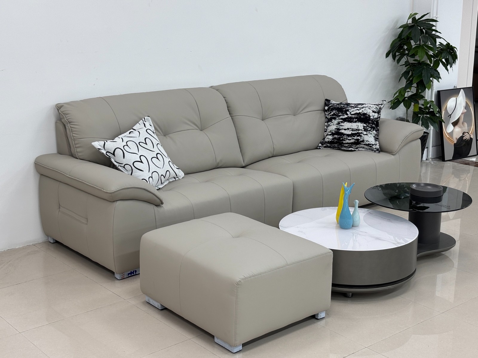 首页 > 产品中心 > 直排沙发,皮沙发,型号:8630#最新爆款 尺寸:2.9米加脚踏80 x70 c m 颜色:浅杏色 材质:加厚生态真皮、靠包填充羽绒、坐包拉功能弹簧、2.5 x14 c m形象方底架。坐感Q弹。