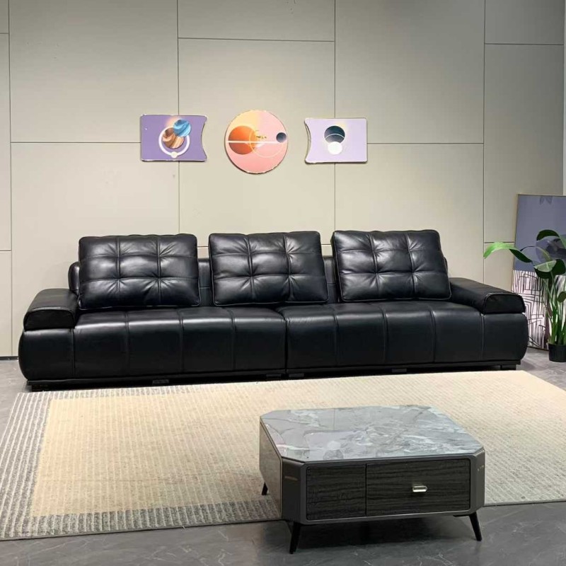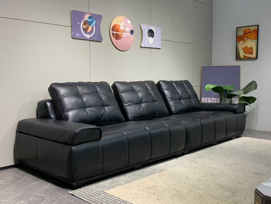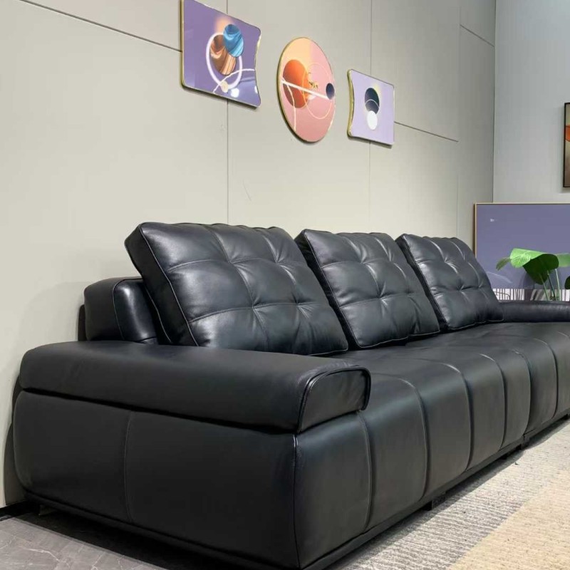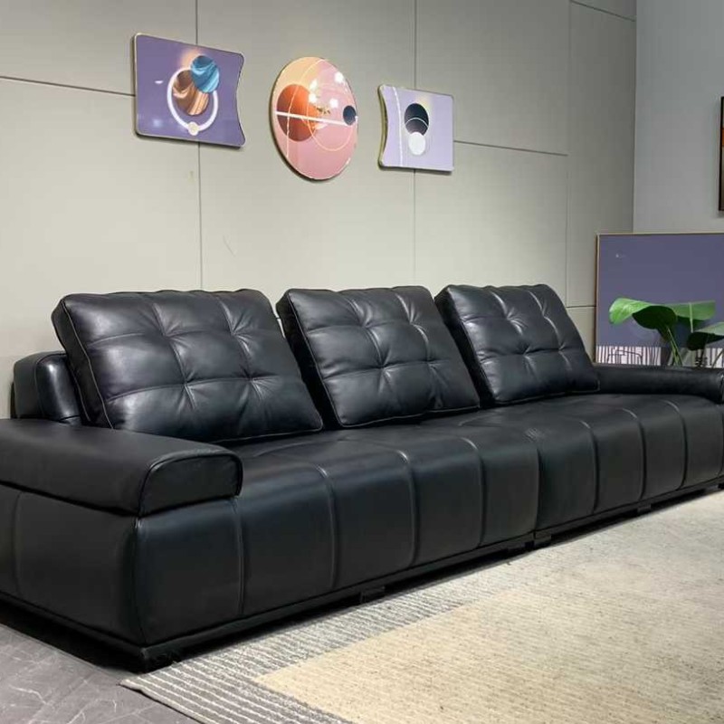 型号:B003# 进口头层牛皮沙发 尺寸:345*107*90 材质:进口落叶松木加宽加厚框架(3*10)升级功能蛇形弹簧绷带底架 高回弹海绵填充