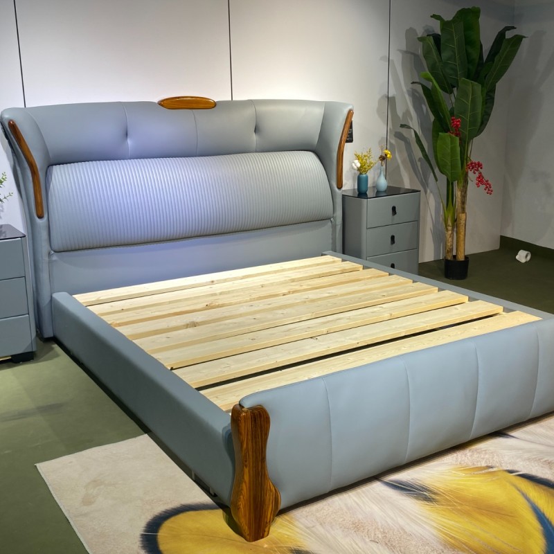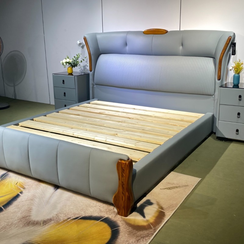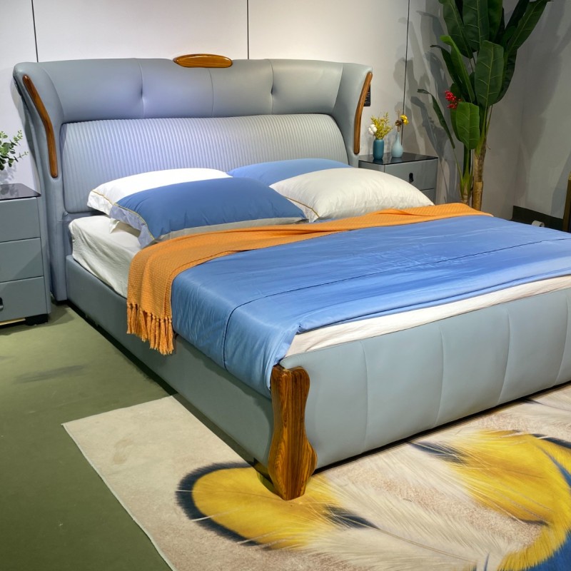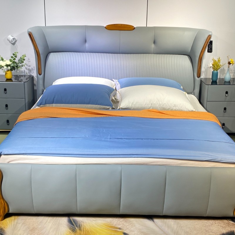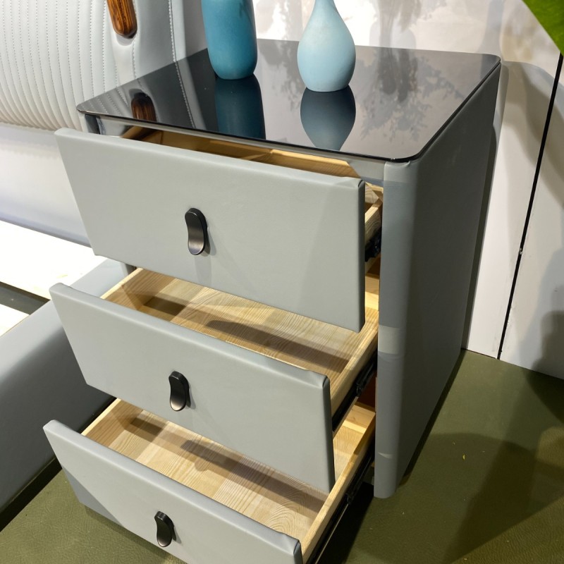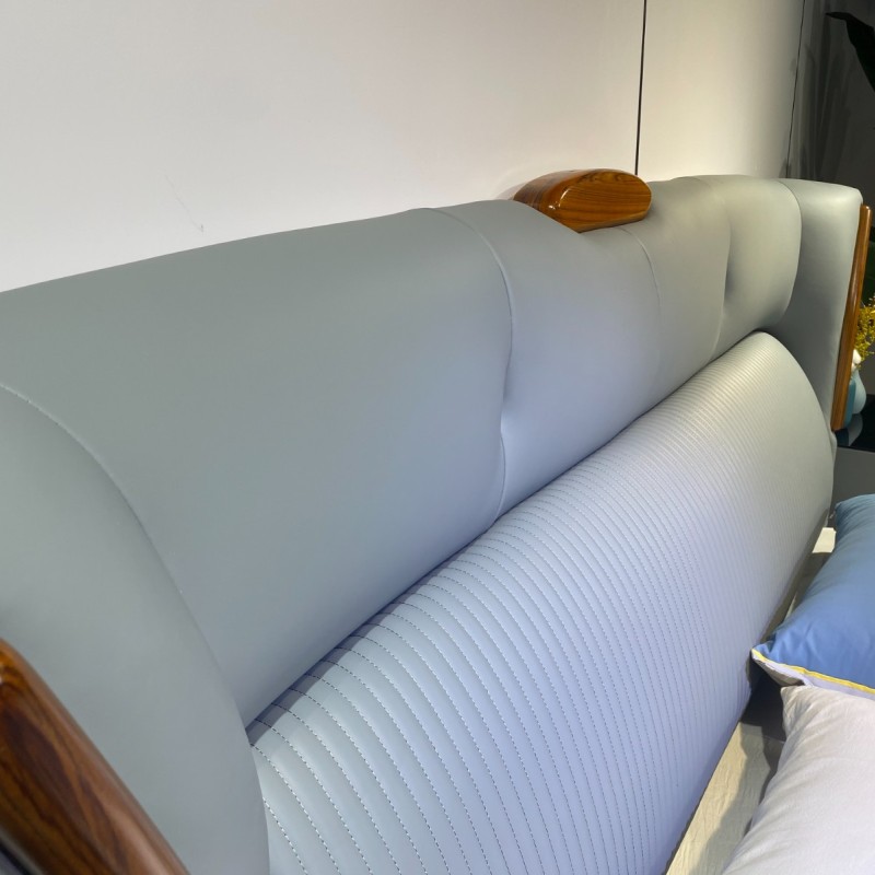 详细信息IP属地 江西赣州 8805新品上市(专利产品) 【颜色】灰色,可定制各种颜色 【面料】正版生态真皮 【配置】松木床板3x15超静音 床边加宽加固耐用 【外框】130*215*235 【特点】床头床尾两侧带乌金木、海棉靠包秒回弹永不变形,床头加厚舒适又柔软,床头柜升级黑金钛化玻璃三个抽屉,非常显高端大气、整体效果非常上档次,也是市场差异化设计,经典百搭款,值得上样! |