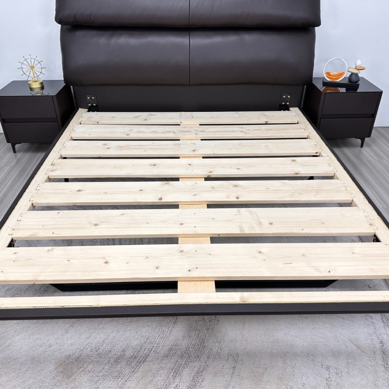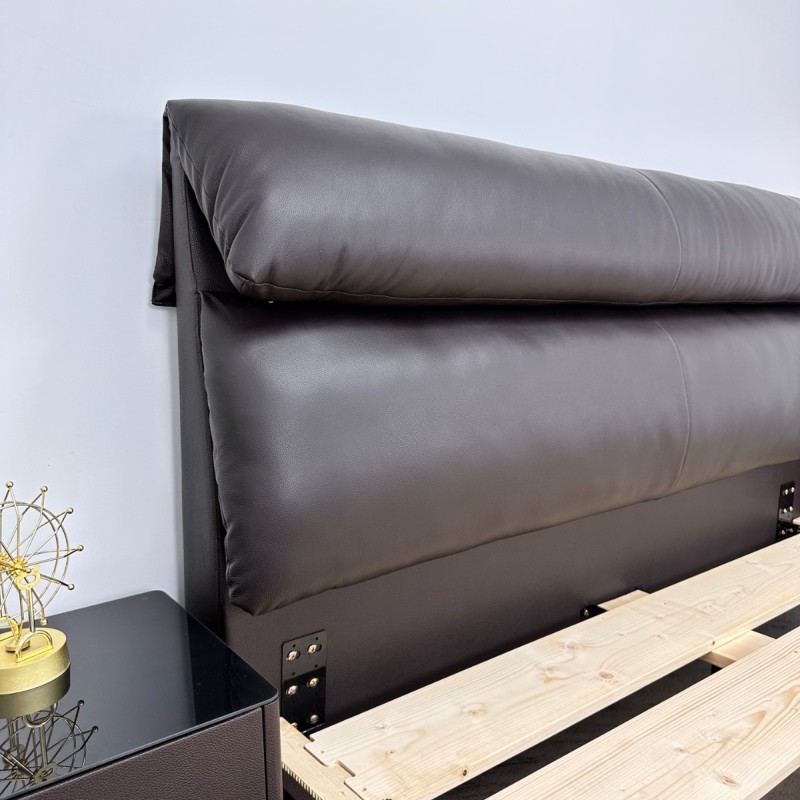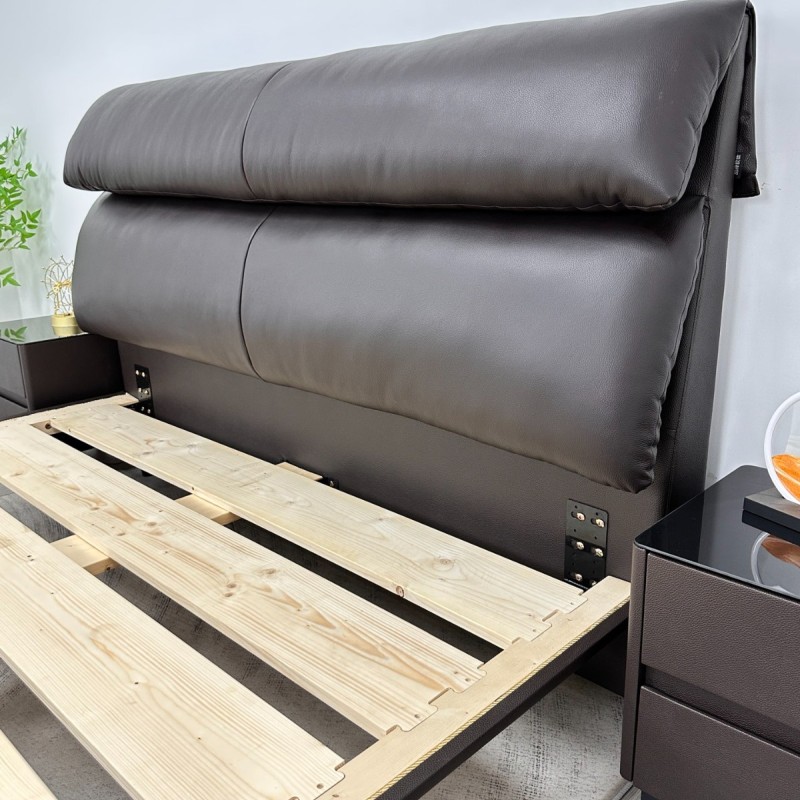 意式简约实木悬浮系列 【型号】NP07# 【颜色】摩卡棕 【面料】半青皮 【配置】悬浮全实木内架 【外框】215x180x116 ✅ 真·悬浮设计:意式简约风,视觉超轻盈 ✅ 半青牛皮床头:亲肤质感,靠感舒适满分 ✅ 全实木内架:坚固静音,承托力MAX ✅ 同系列玻璃柜:通透收纳,颜值不乱 最绝的是架子超稳,怎么折腾都纹丝不动!新家的宁静与高级感,是它给的!