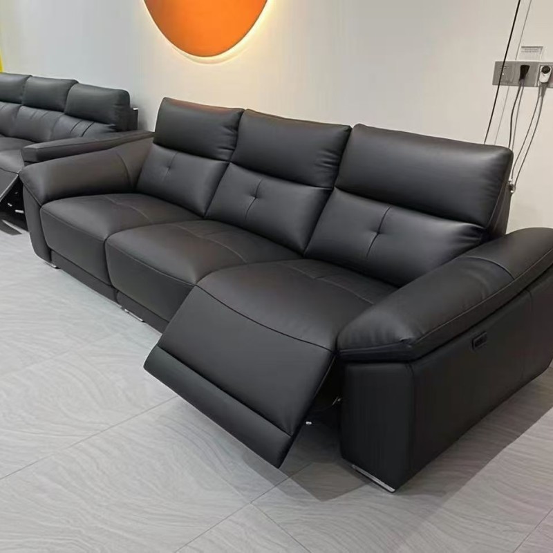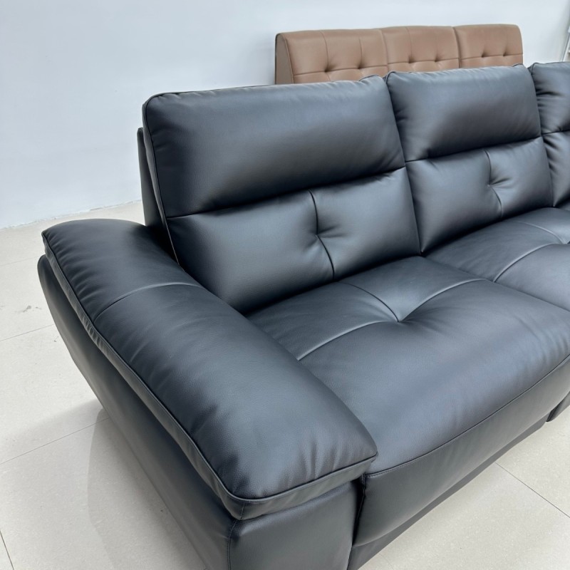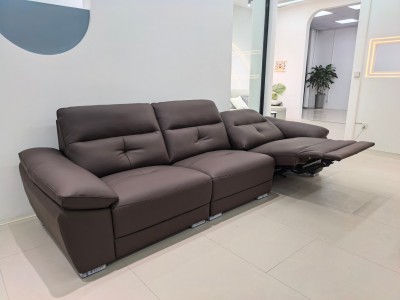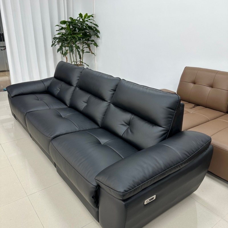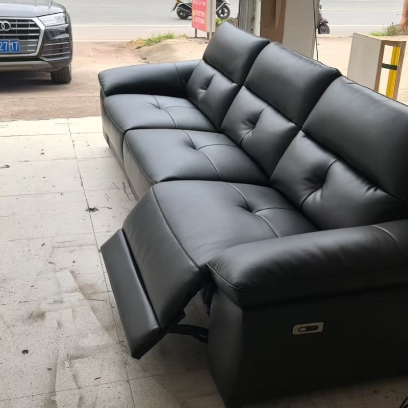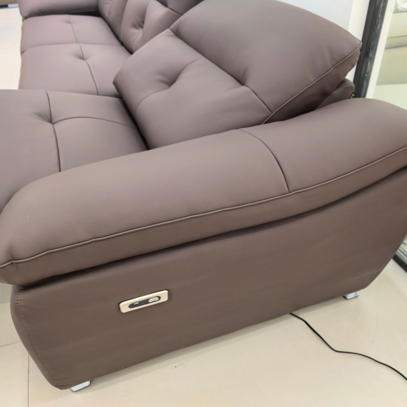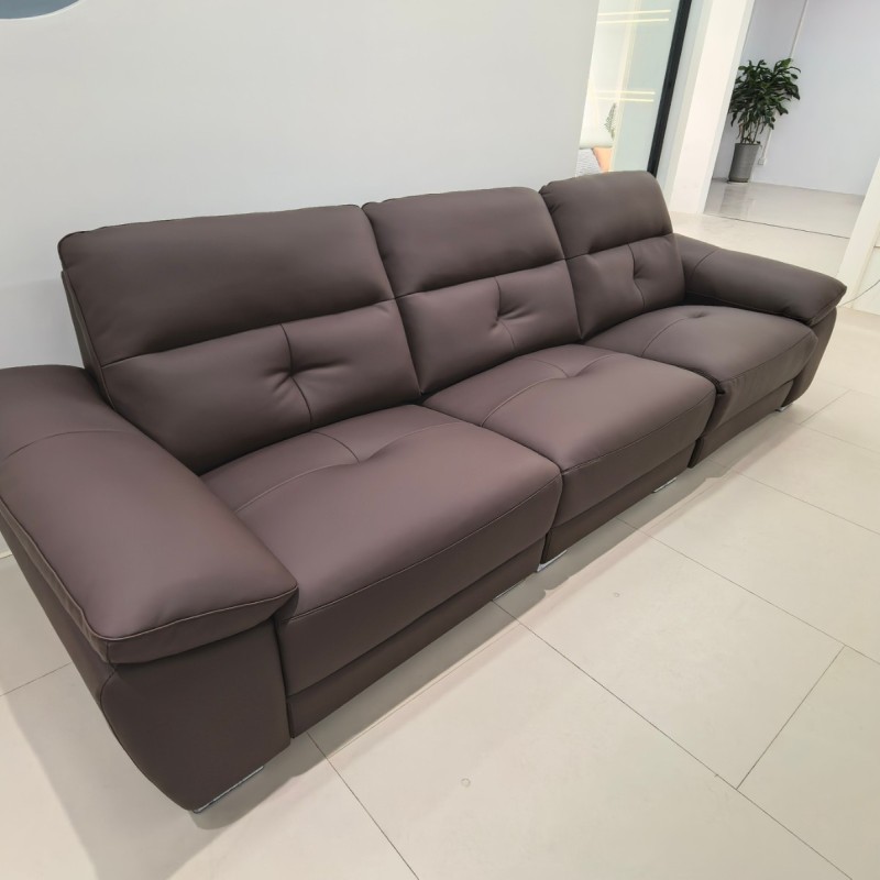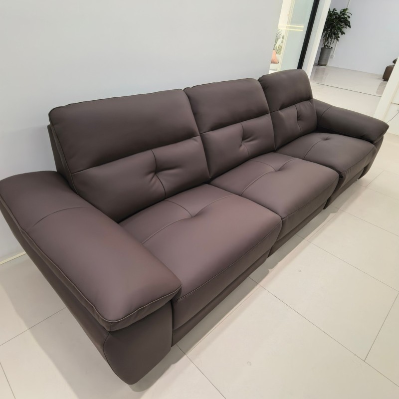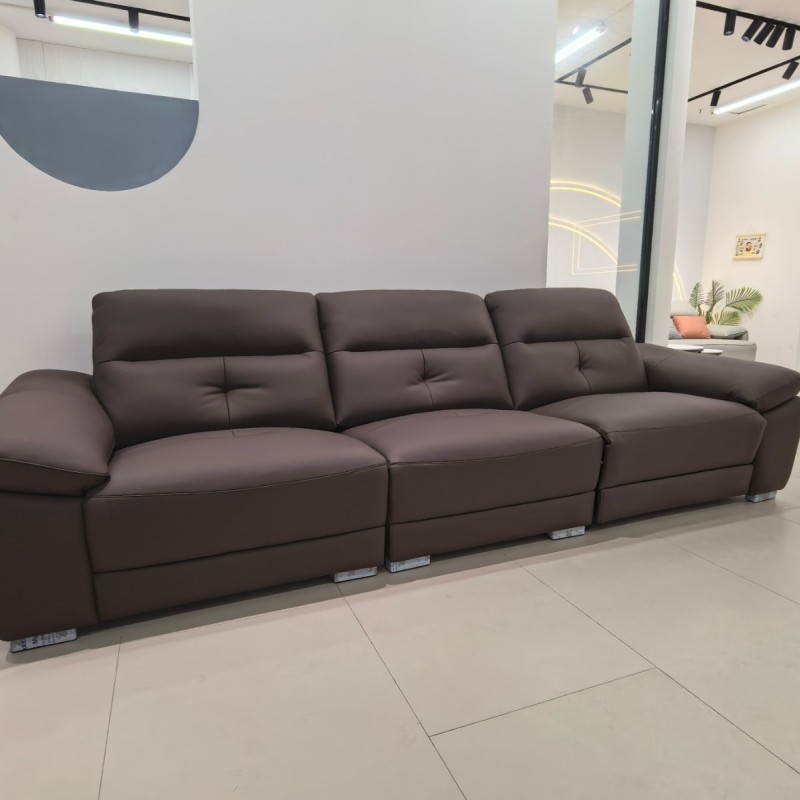 8909#电动功能款 颜色:棕色 尺寸:3米直排 材质:生态真皮面料。实木弹簧底架+电动功能铁架 坐垫高密度海绵+功能弹簧,落叶松框架