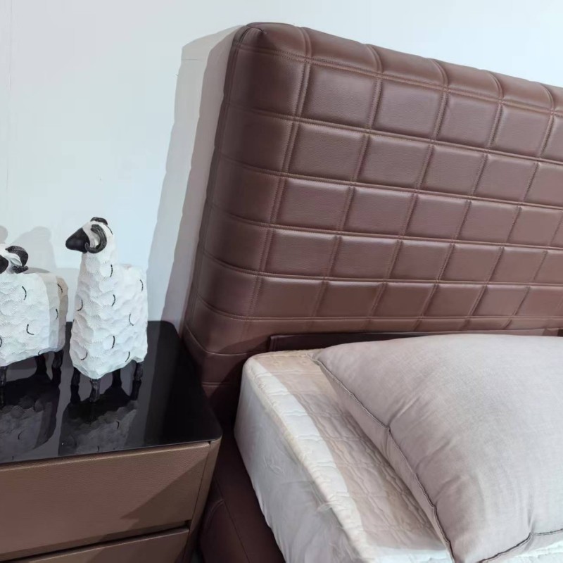 豆腐块主卧大床 颜色棕黑色 面料生态真皮,耐磨耐用,防水防污,
