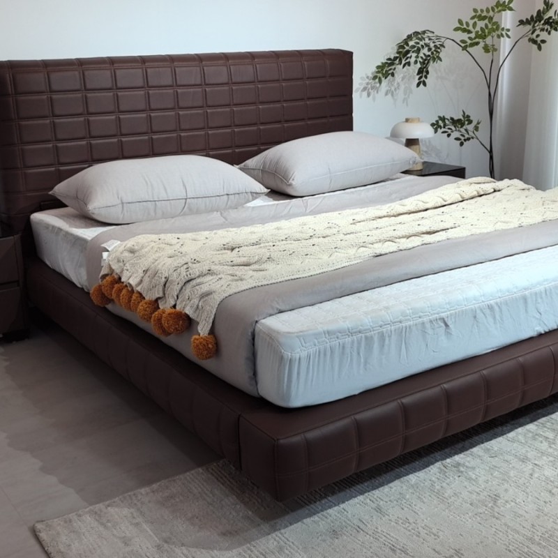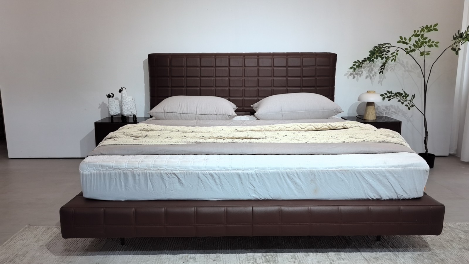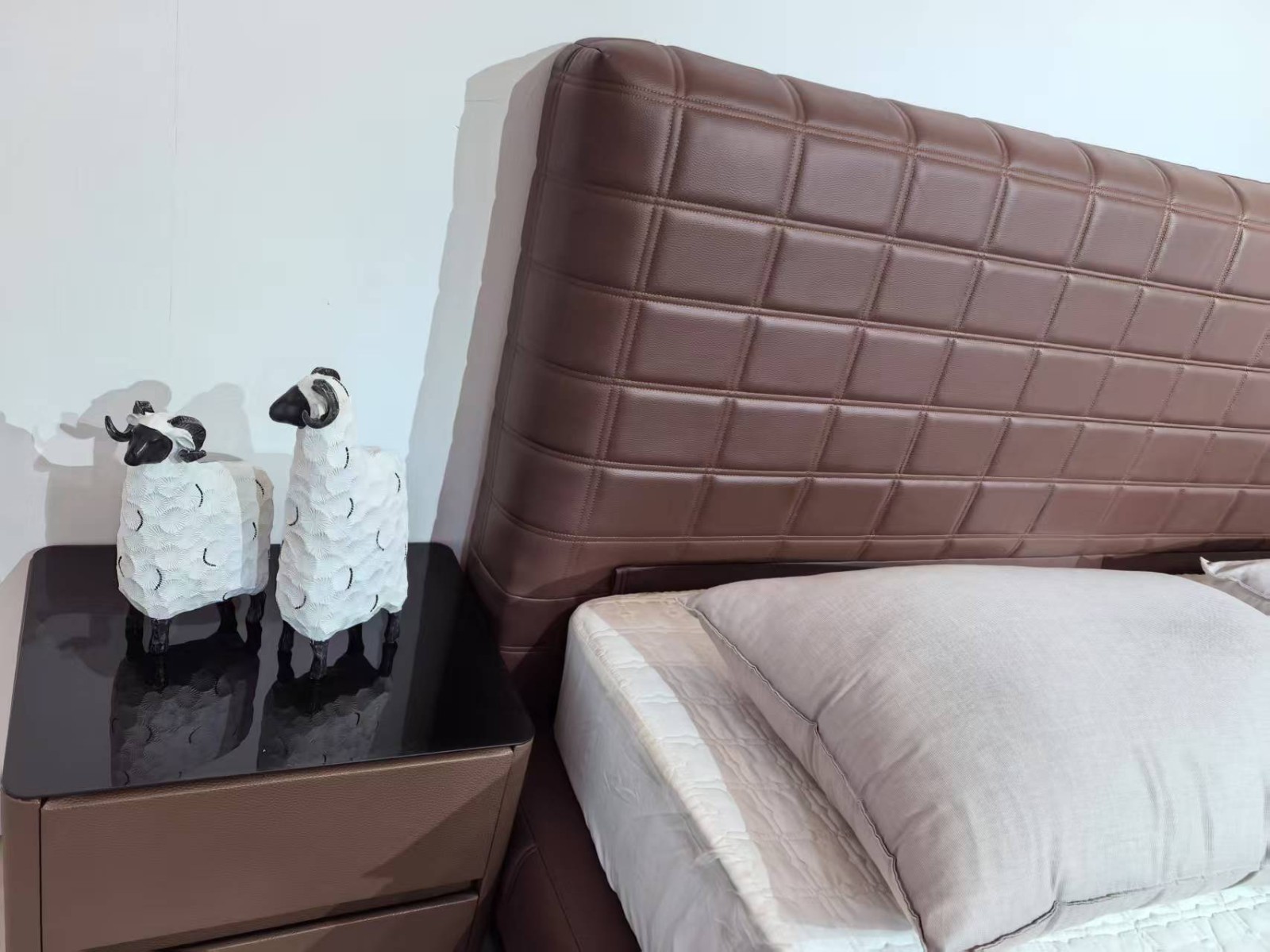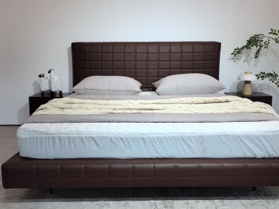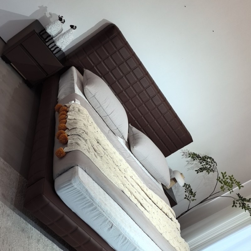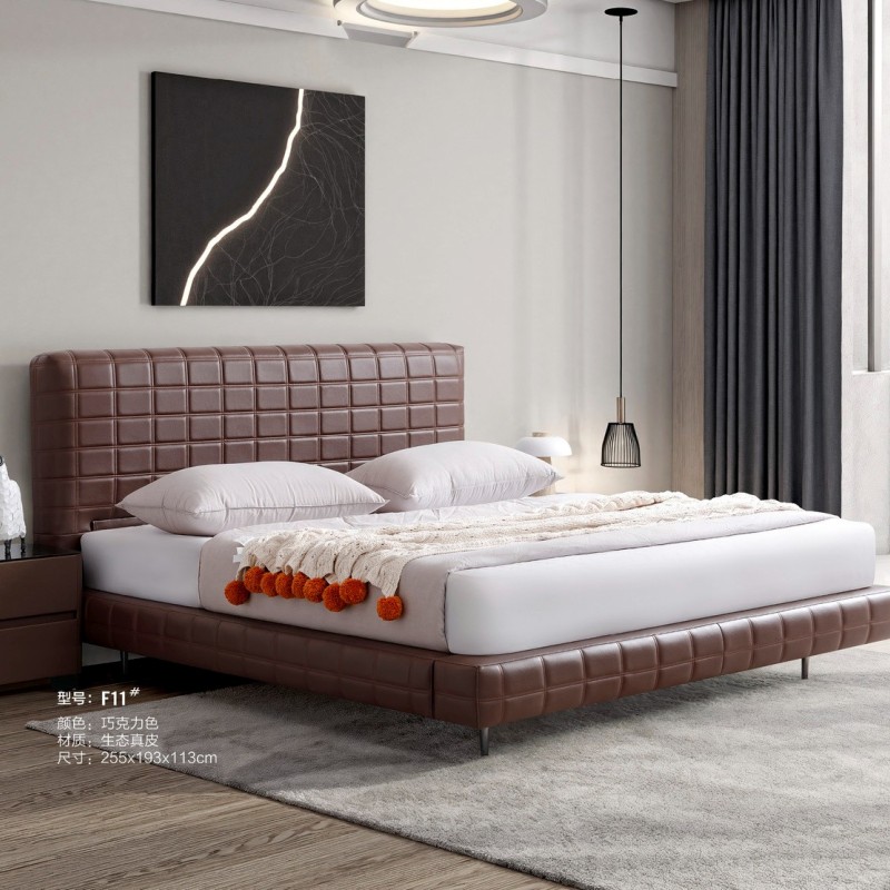 豆腐块主卧大床 颜色棕黑色 面料生态真皮,耐磨耐用,防水防污,靠包高密度回弹海棉 配新款大岩板柜,配置拉满!