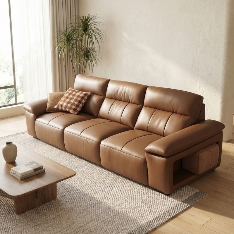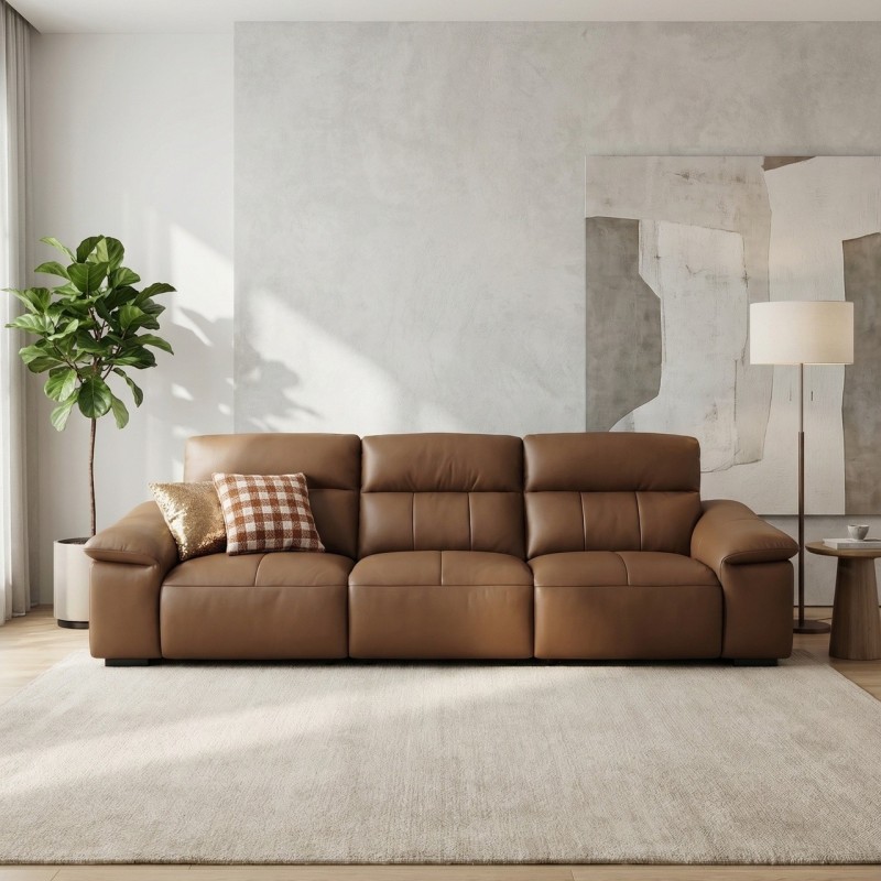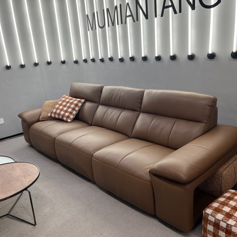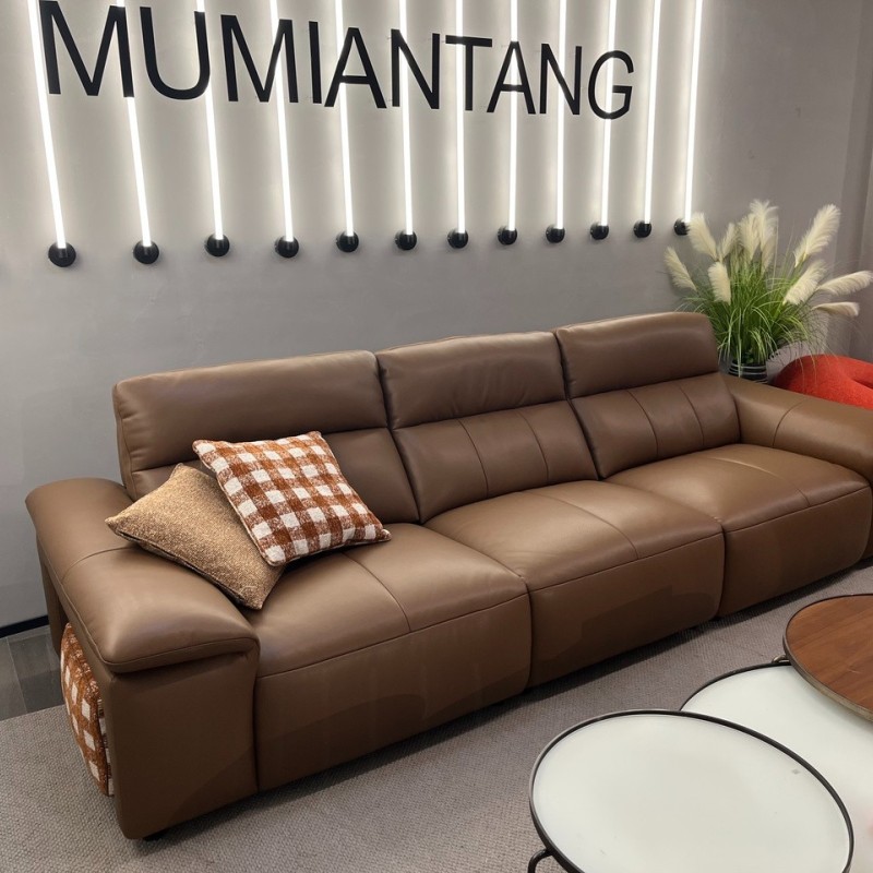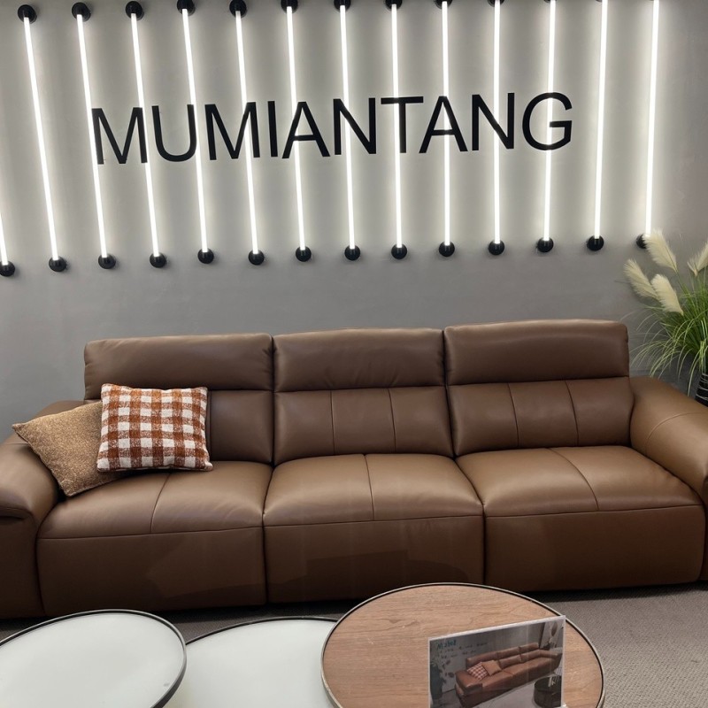【型号】326# 凳子款 【面料】生态真皮 【尺寸】直排总长3米 【框架】加宽加厚落叶松框架 【海绵】高密度高回弹海绵座感 【特点】羽丝棉填充靠包舒适度极高,扶手配4个凳子。