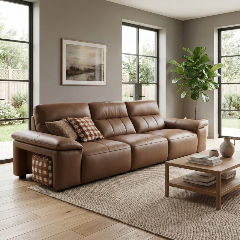 【特点】羽丝棉填充靠包舒适度极高,扶手配4个凳子。