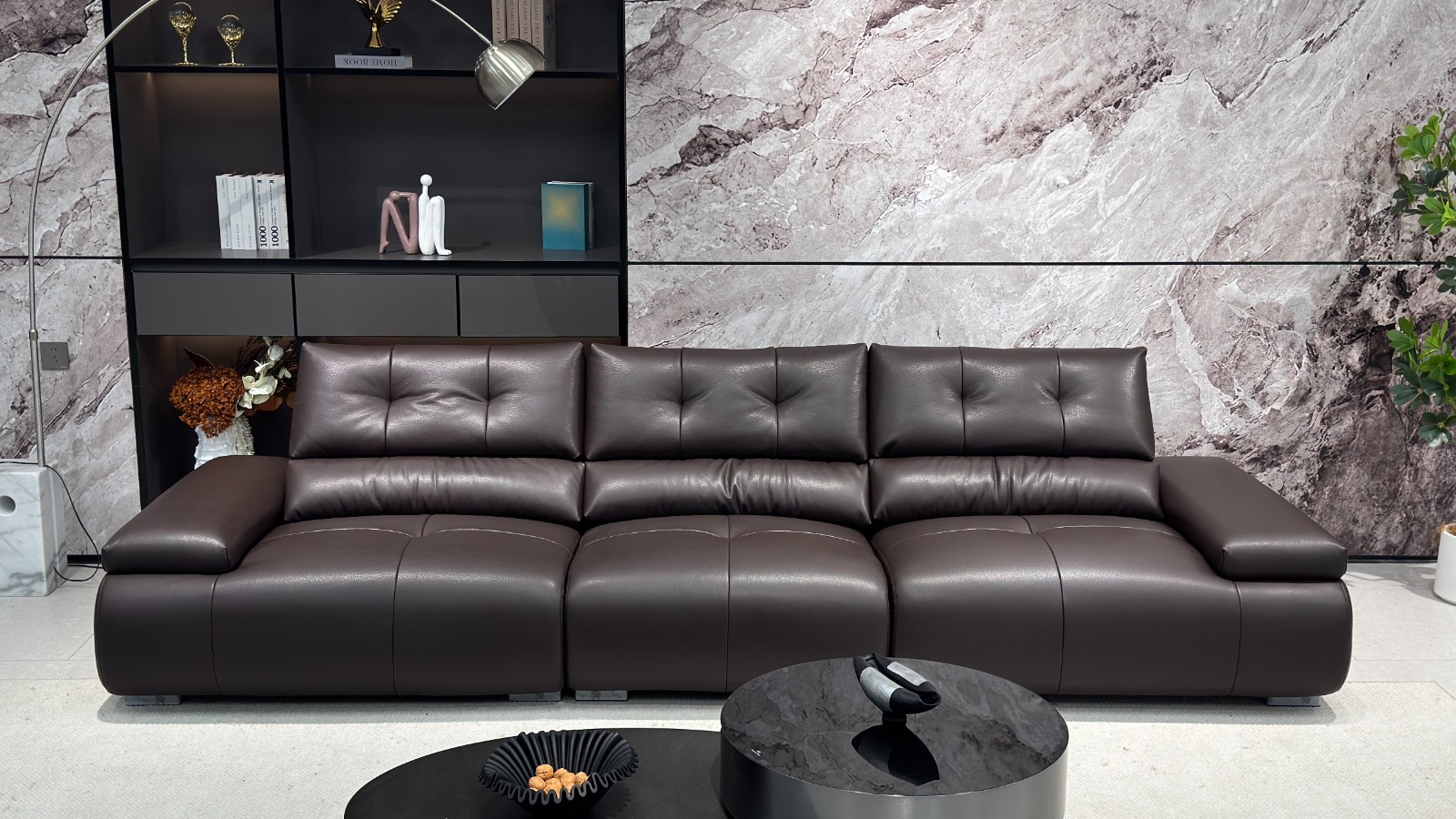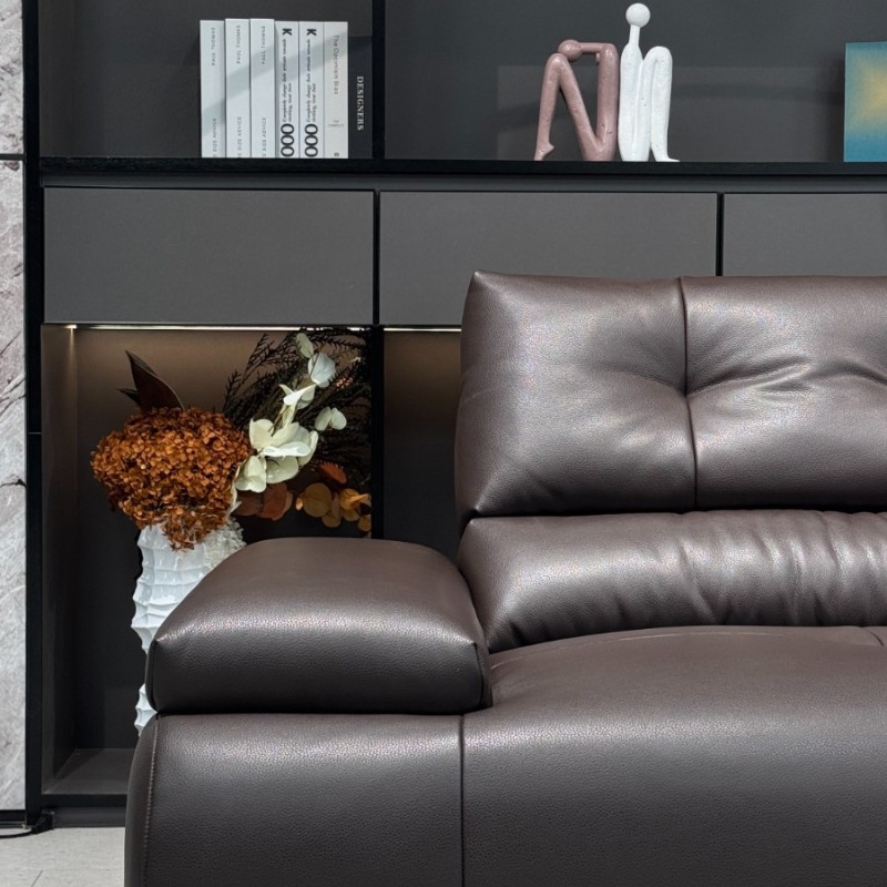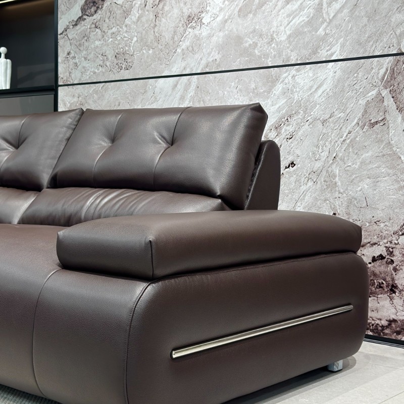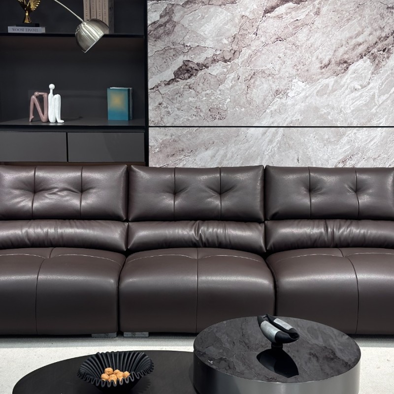 型号:Y9982# 深褐色 尺寸:直排3.25米 特点:生态皮面料,实木宽板框架,海绵坐包,弹簧底架,高密度海绵,坐感舒适!扶手带精美五金装饰,更时尚大气