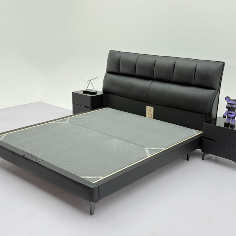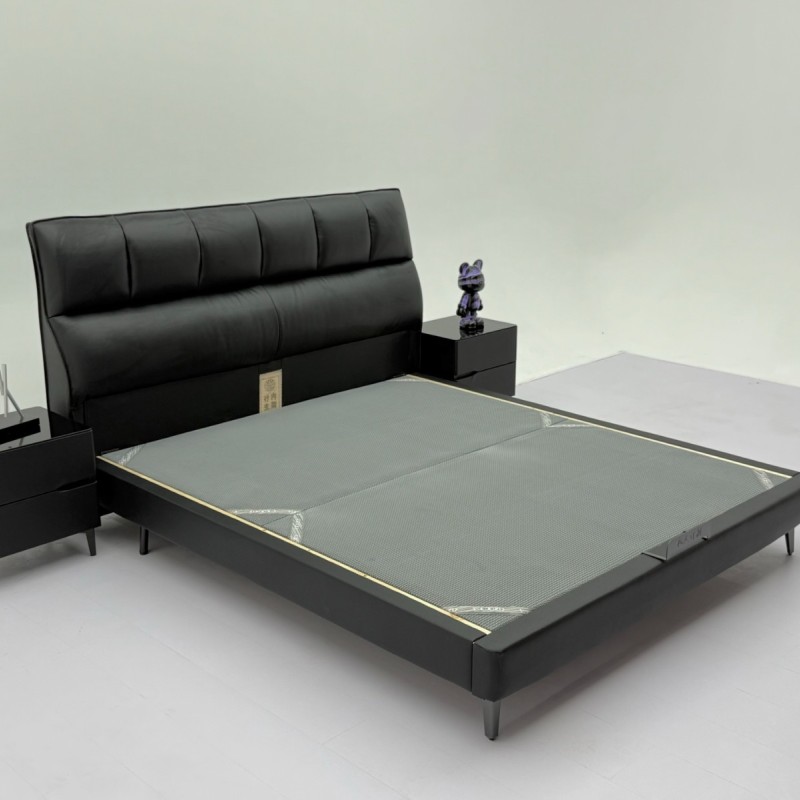 详细信息IP属地 江西赣州 新款606#【进口头层牛皮】 【型号】606# (新款) 【颜色】魅影黑 【面料】进口头层牛皮 【尺寸】2200*1900*1130 【配置】8公分SF级松木床边(软质护边工艺) 3×15 SF级松木大龙骨 【床板配置1】:2.5x15x9块松木床板 【床板配置2】: 9D松木满铺床板