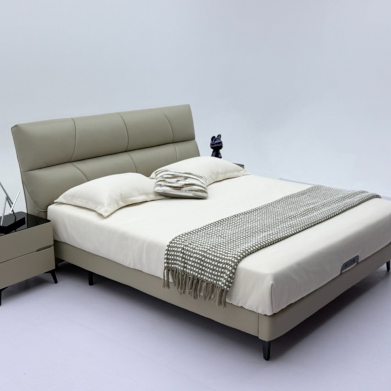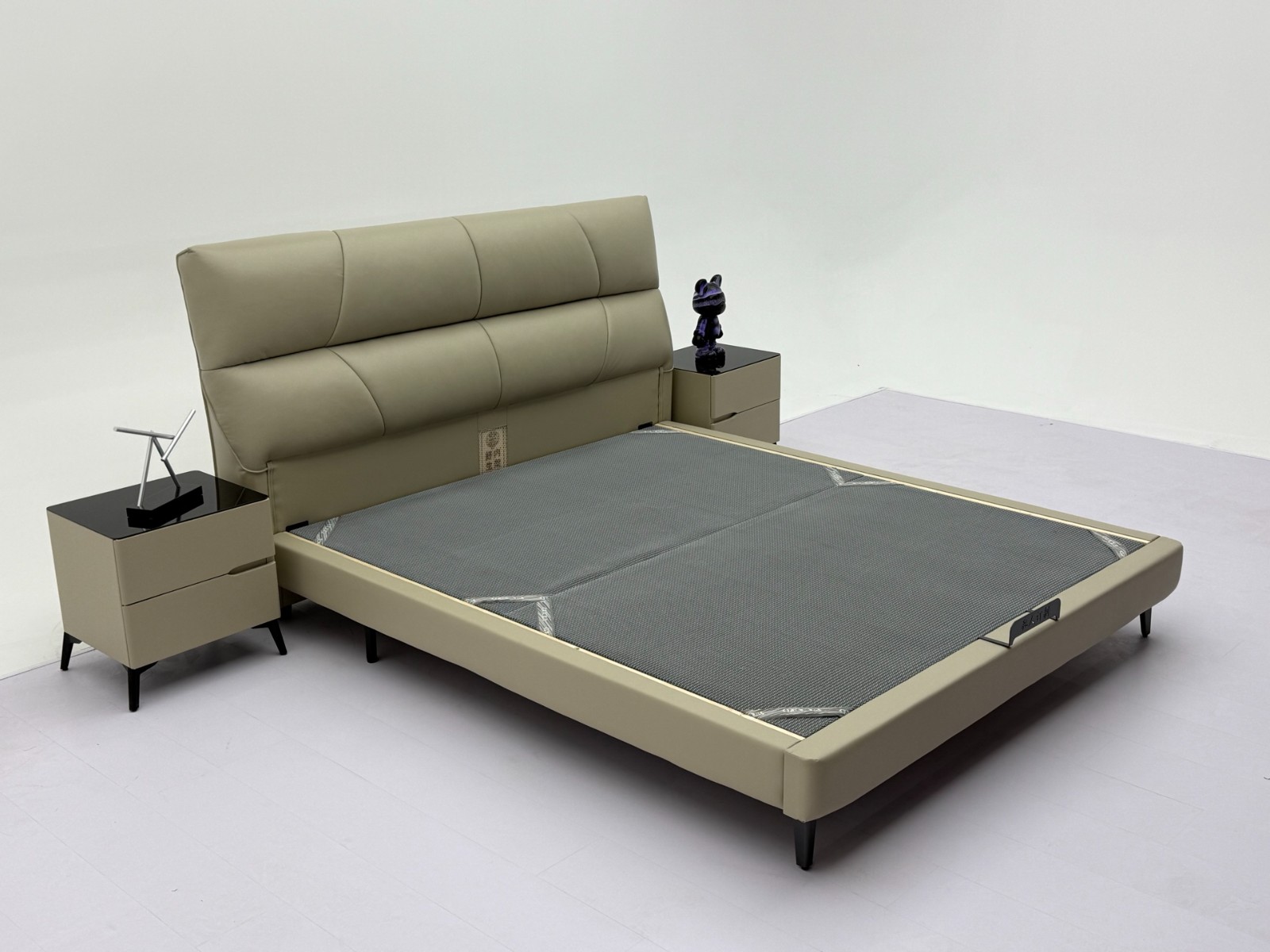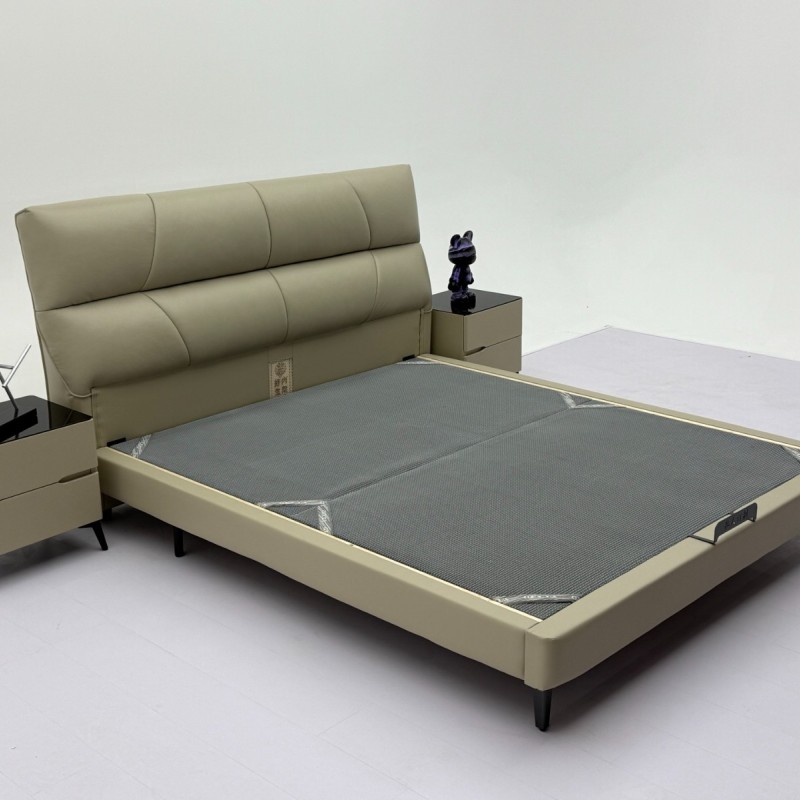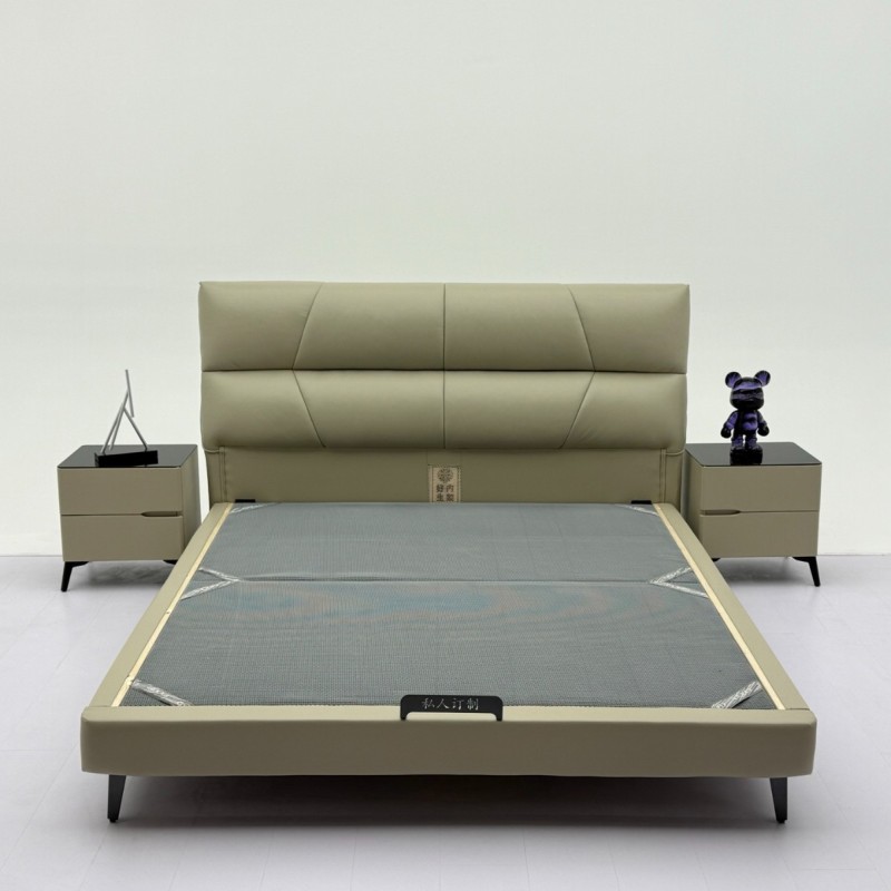 详细信息IP属地 江西赣州 新款605#【进口头层牛皮】 【型号】605# (新款) 【颜色】豆青色 【面料】进口头层牛皮 【尺寸】2200*1900*1130 【配置】8公分SF级松木床边(软质护边工艺) 3×15 SF级松木大龙骨 【床板配置1】:2.5x15x9块松木床板 【床板配置2】: 9D松木满铺床板