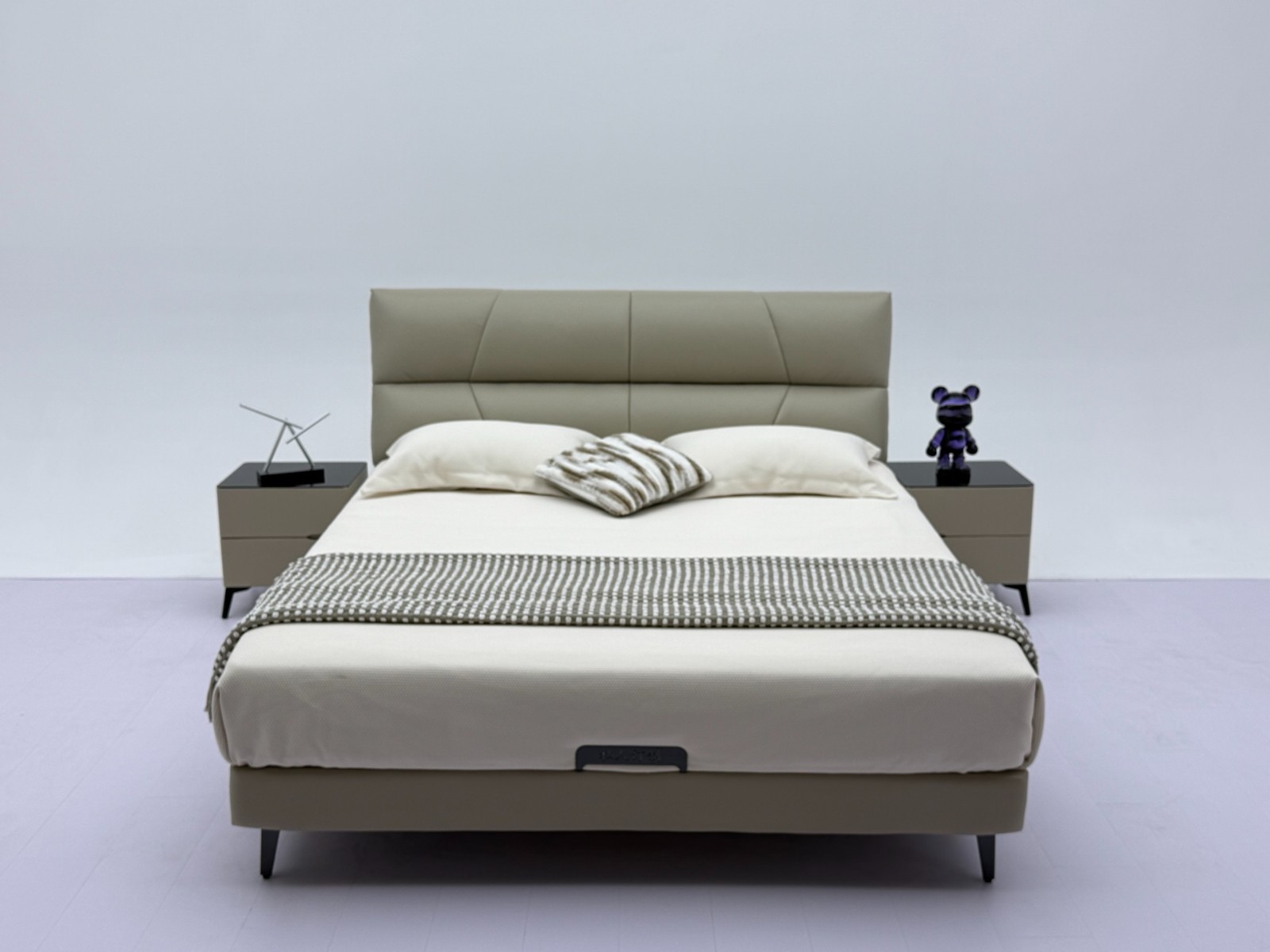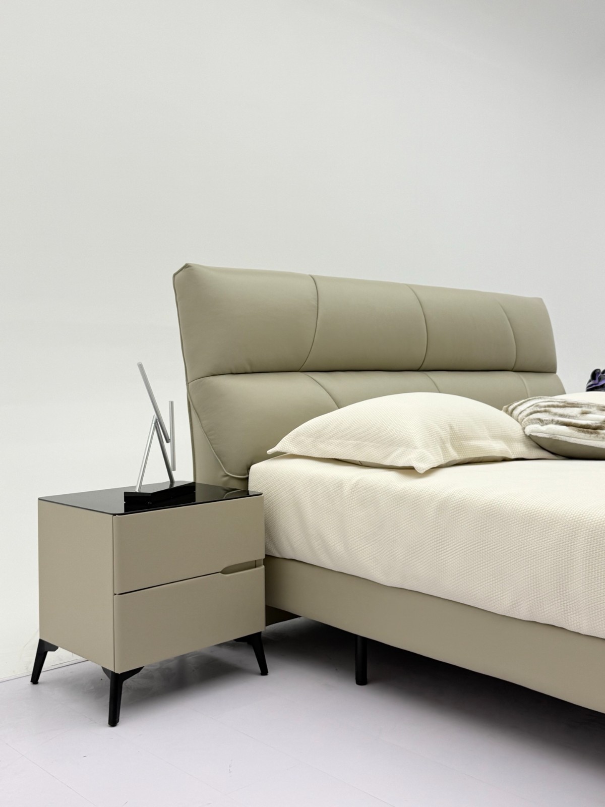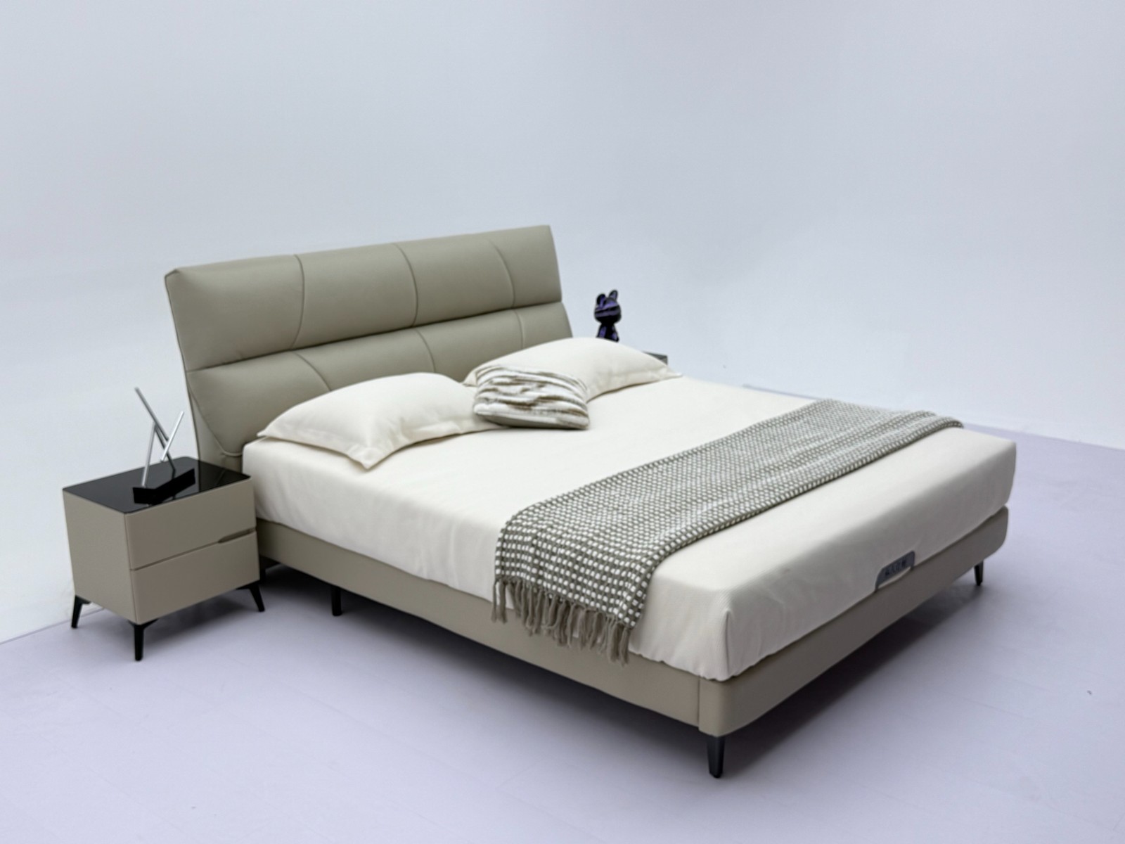 首页 > 产品中心 > 新款605#【进口头层牛皮】 【型号】605# (新款) 【颜色】豆青色 【面料】进口头层牛皮 【尺寸】2200*1900*1130 【配置】8公分SF级松木床边(软质护边工艺)