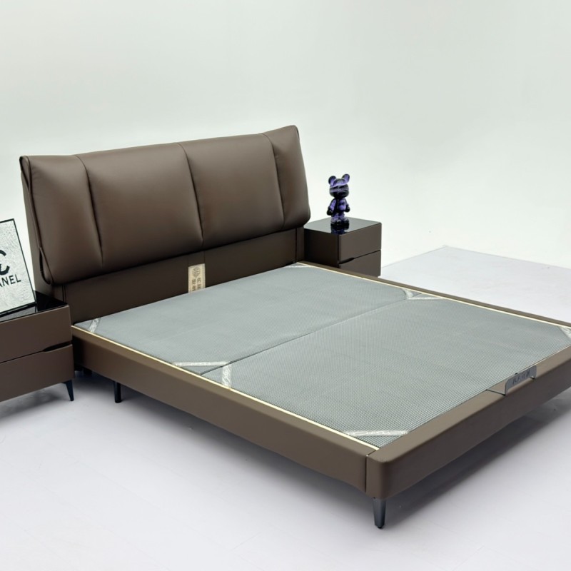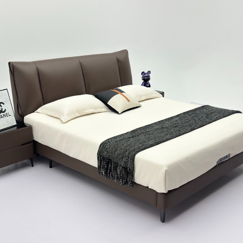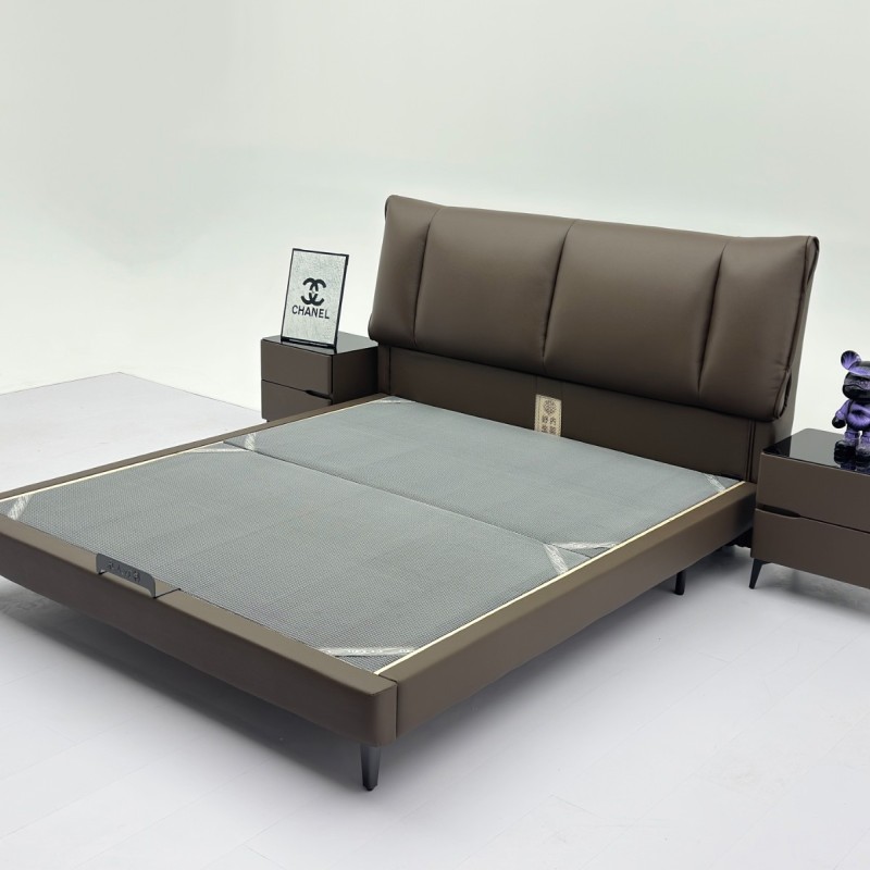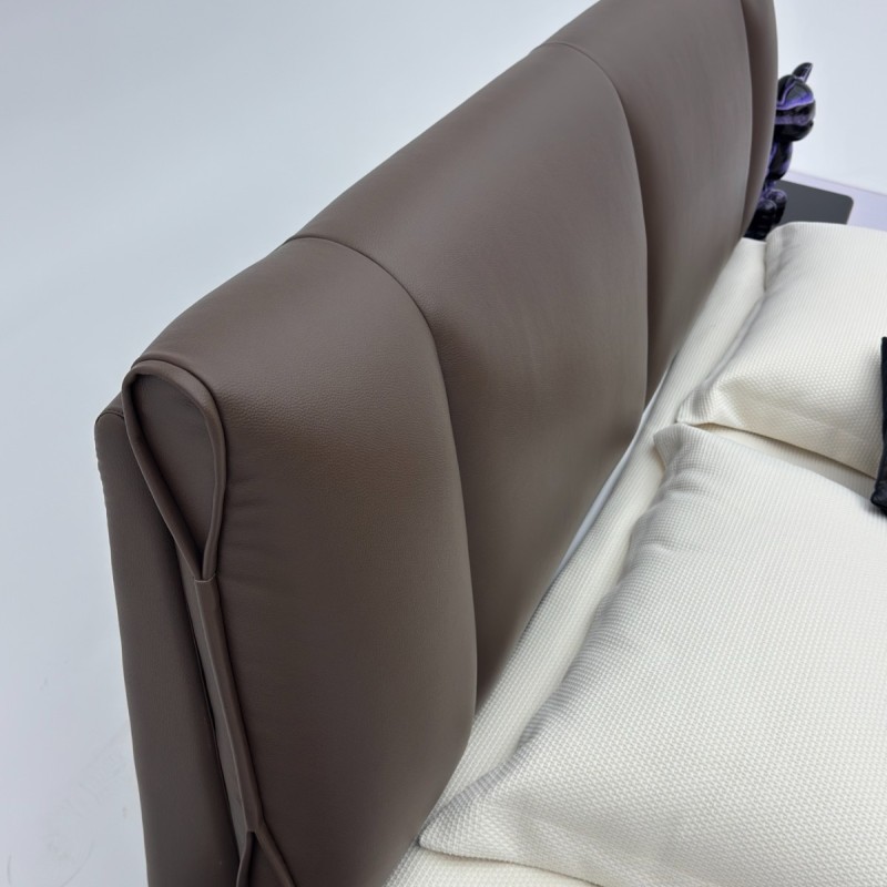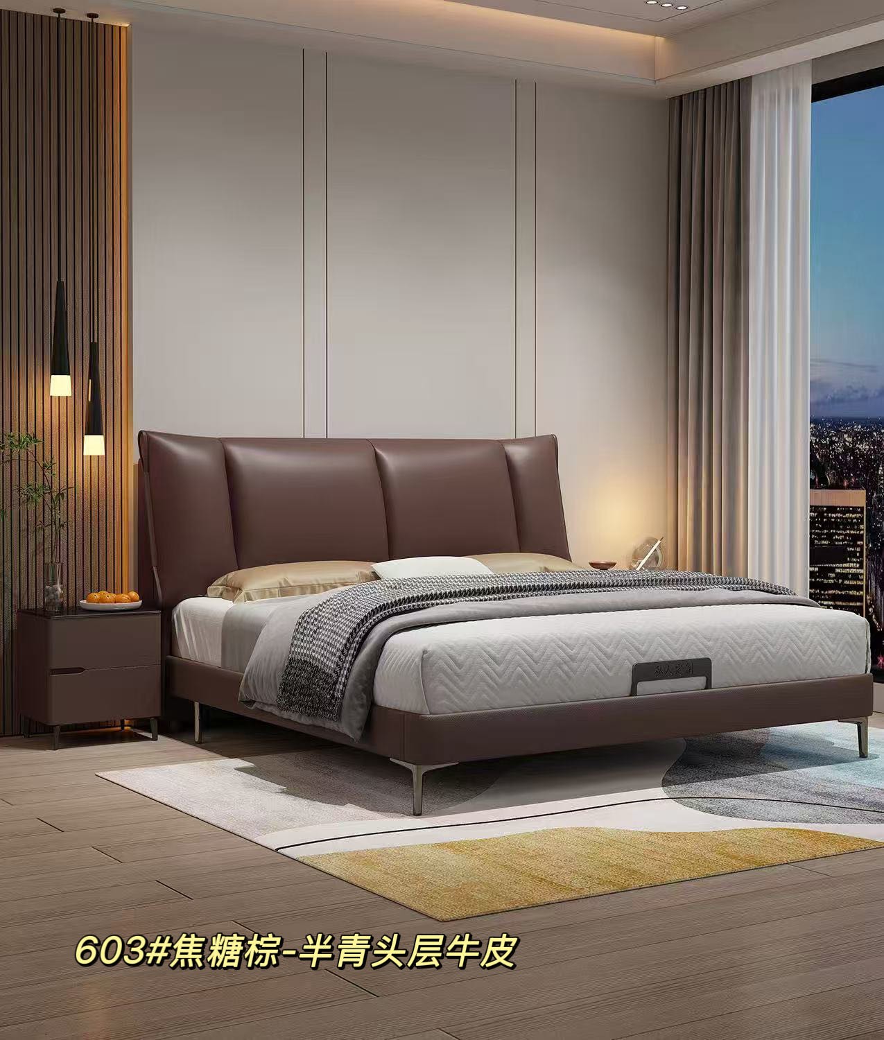 详细信息IP属地 江西赣州 新款603#【进口头层牛皮】 【型号】603# (新款) 【颜色】可可棕 【面料】进口头层牛皮 【尺寸】2200*1950*1140 【配置】8公分SF级松木床边 (软质护边工艺) 3公分9D松木满铺床板 2.5×15×9块SF级松木床板 (床板两配任选) 3×15 SF级松木大龙骨 【特点】甄选进口头层牛皮,深咖哑光质感,纹理细腻,耐脏易清洁,经久耐用 分段设计,高回弹海绵填充,贴合人体曲线,倚靠舒适,造型利落大气