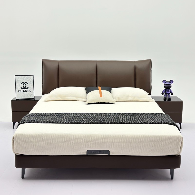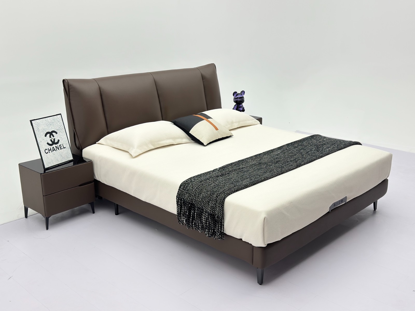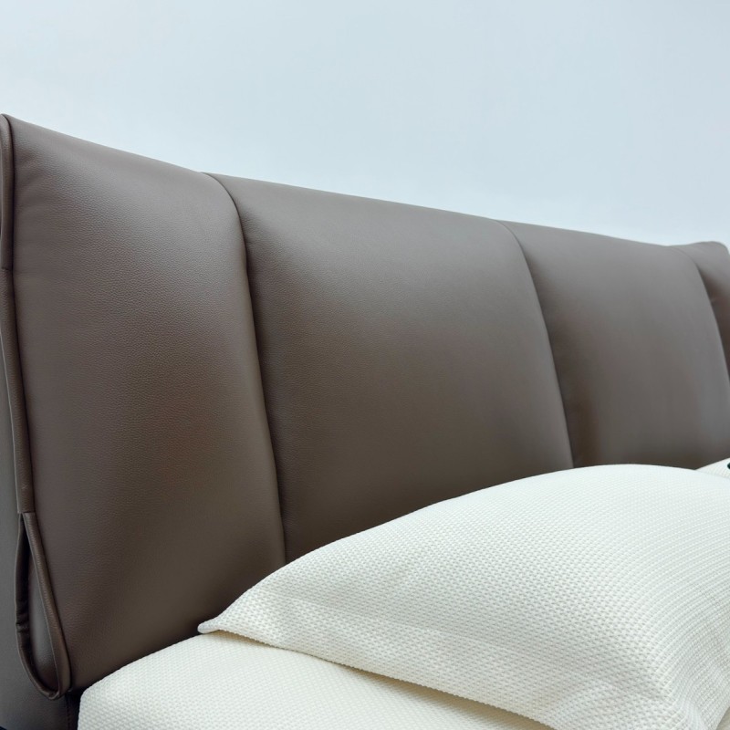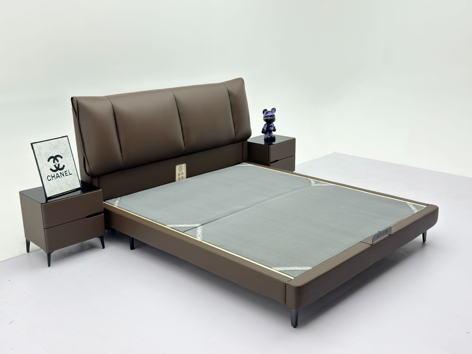 详细信息IP属地 江西赣州 新款603#【进口头层牛皮】 【型号】603# (新款) 【颜色】可可棕 【面料】进口头层牛皮 【尺寸】2200*1950*1140 【配置】8公分SF级松木床边 (软质护边工艺) 3公分9D松木满铺床板 2.5×15×9块SF级松木床板 (床板两配任选) 3×15 SF级松木大龙骨 【特点】甄选进口头层牛皮,深咖哑光质感,纹理细腻,耐脏易清洁,经久耐用 分段设计,高回弹海绵填充,贴合人体曲线,倚靠舒适,造型利落大气